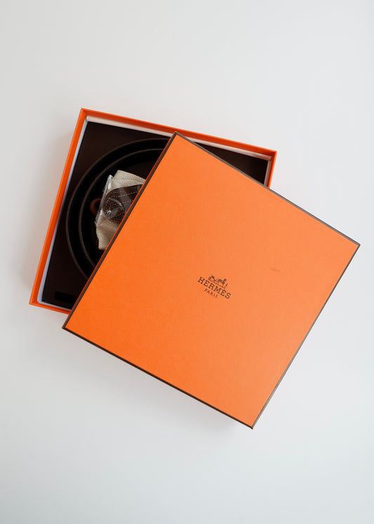 Authentic Preowned Hermes Black/ Orange Leather Martelee H Belt - 85