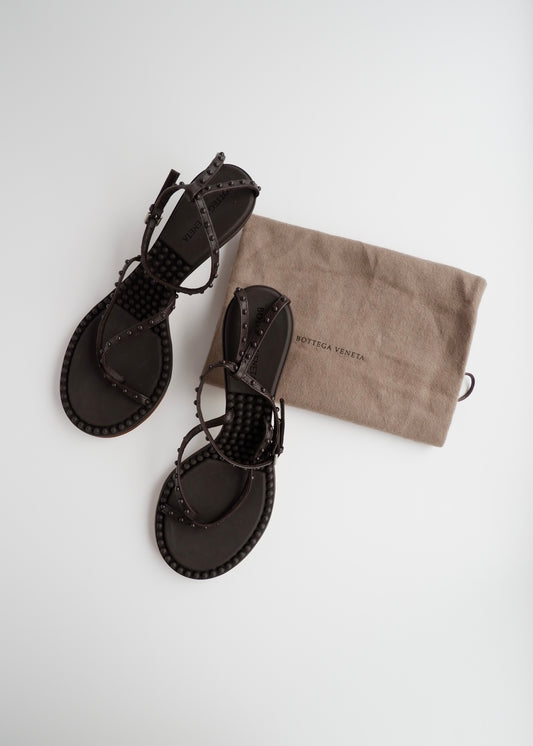 Authentic Preowend Bottega Veneta Brown Leather Strappy Heeled Sandals - 38
