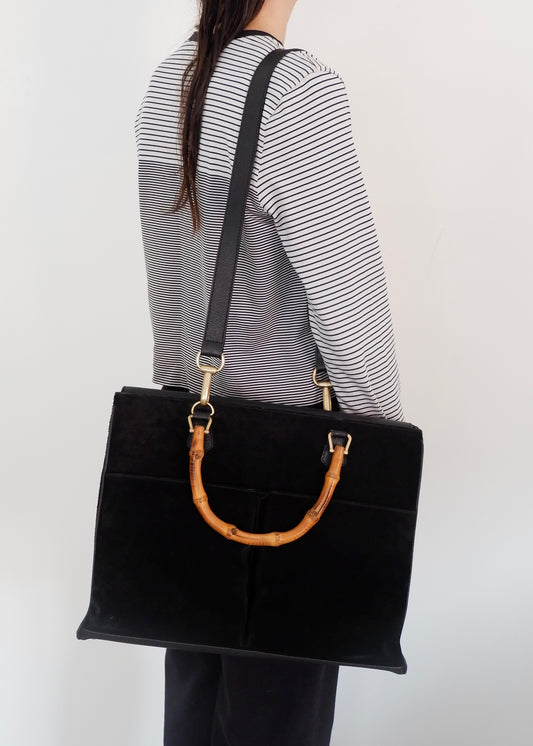 Authentic Preowned Vintage Gucci Black Suede/Leather Bamboo Two Way Tote