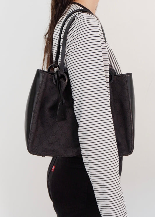 Authentic Preowned Gucci Black Denim/ Leather GG Canvas Shoulder Bag