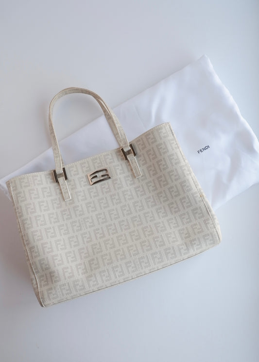 Authentic Preowned Fendi White Zucchino Handbag