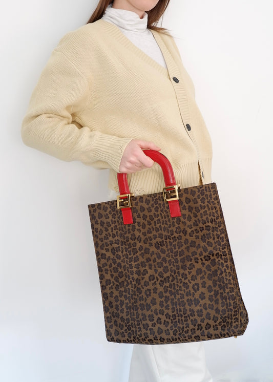 Authentic Preowned Vintage Fendi Animal Print Canvas/Leather Top Handle Tote