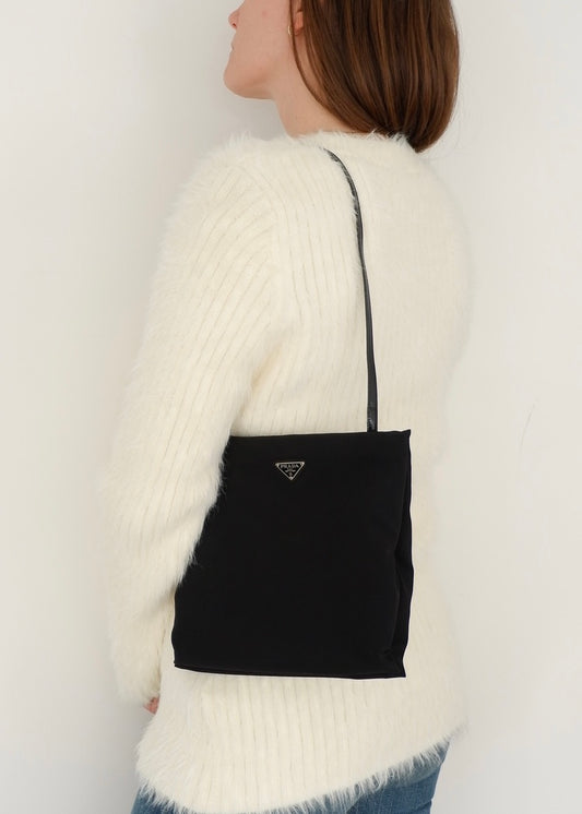 Authentic Preowned Prada Black Fabric Long Strap Kisslock Shoulder Bag