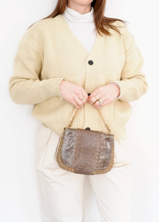 Authentic Preowned Bottega Veneta Brown/ Beige Embossed Leather Handbag