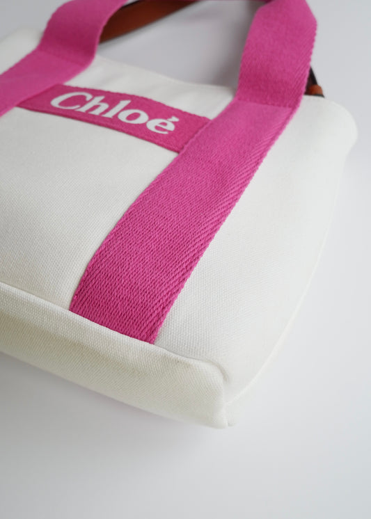 Authentic Preowned Chloe White/Pink Canvas Two Way Bag