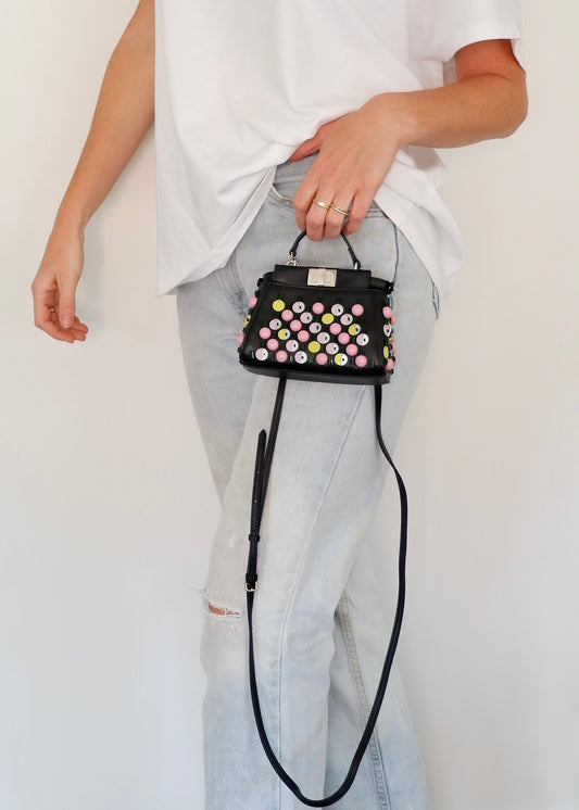 Authentic Preowned Fendi Black Multi Color Beaded Micro Peekaboo handbag