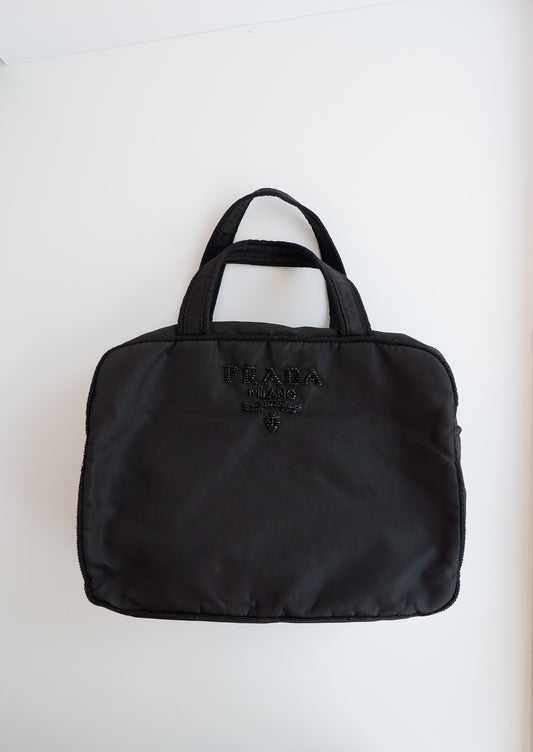 Authentic Preowned Prada Black Nylon Beaded Logo Handbag