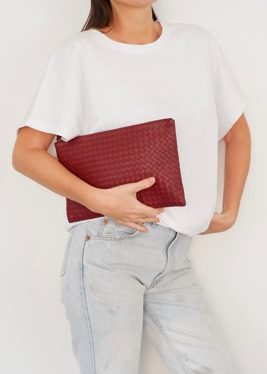 Authentic Prowned Bottega Veneta Burgundy Leather Woven Pouch