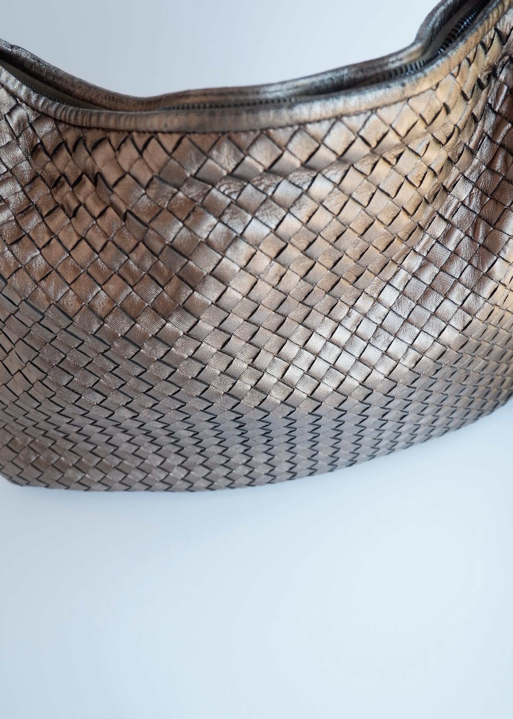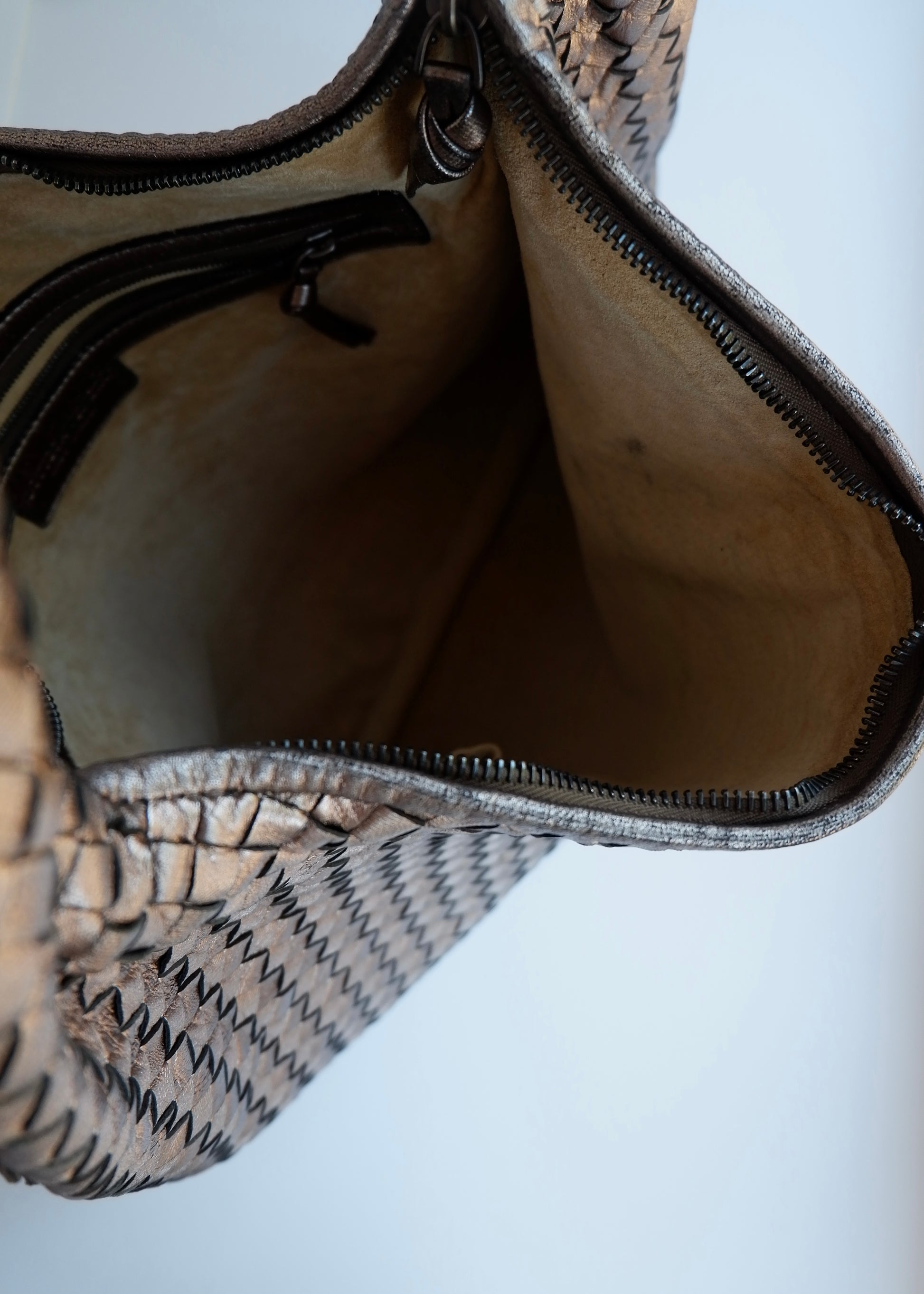 Authentic Preowned Bottega Veneta Metallic Bronze Leather Intrecciato Hobo Shoulder bag