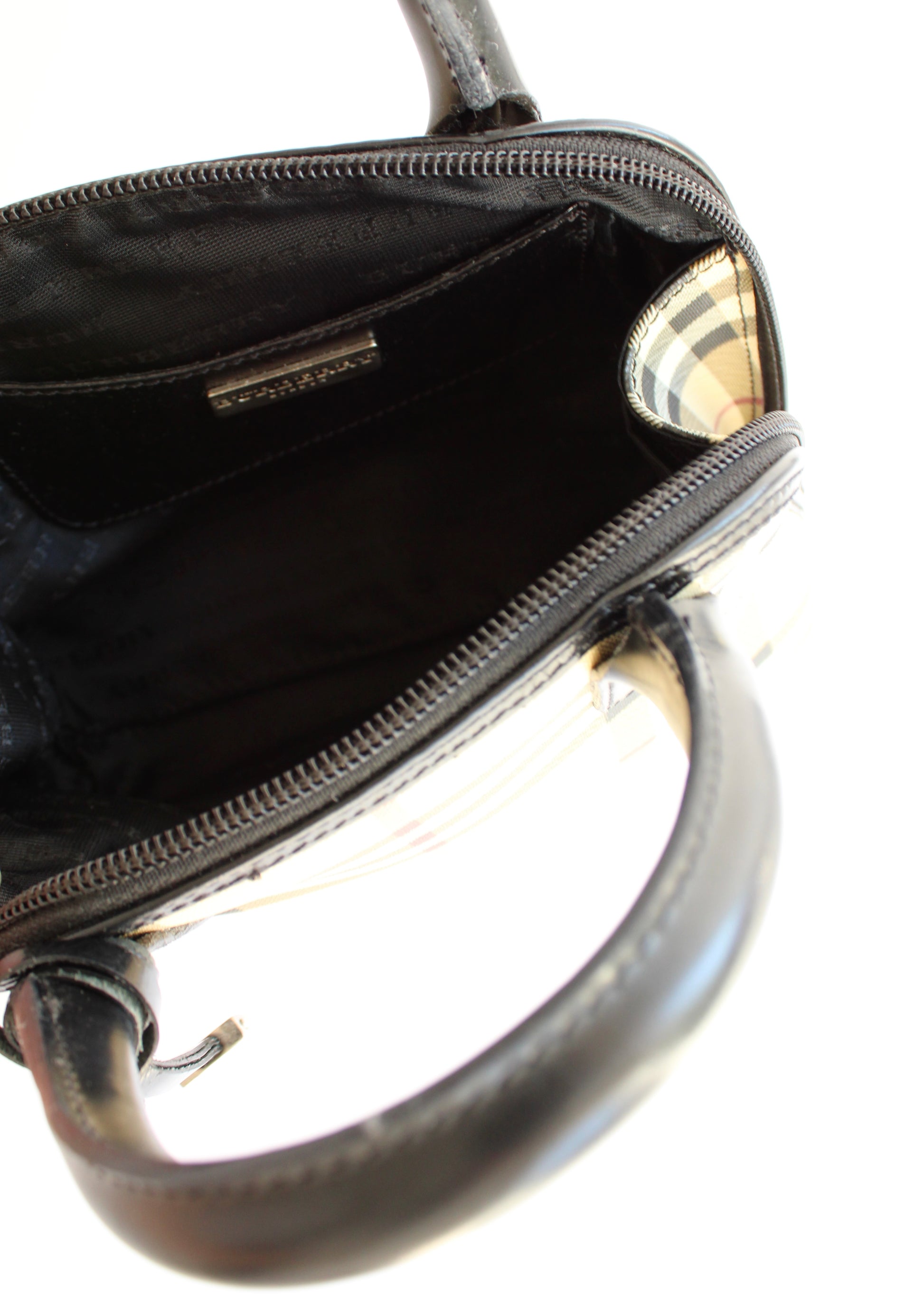 Condition: 8/10 Good Condition - General signs of wear throughout the bag. Very faint black marks on exterior coated canvas. The leather strap of the Burberry metal logo is pealing. Clean interior.