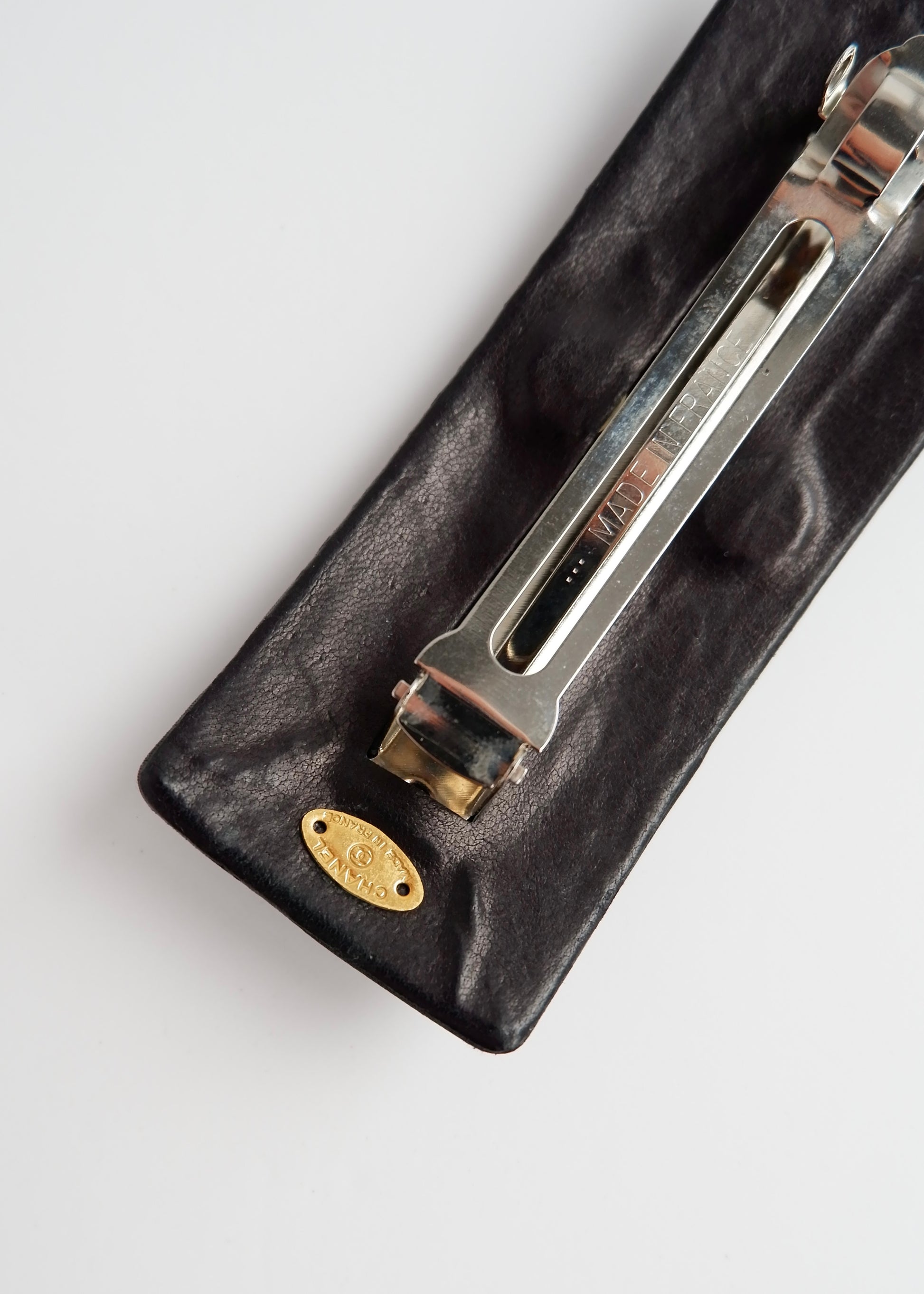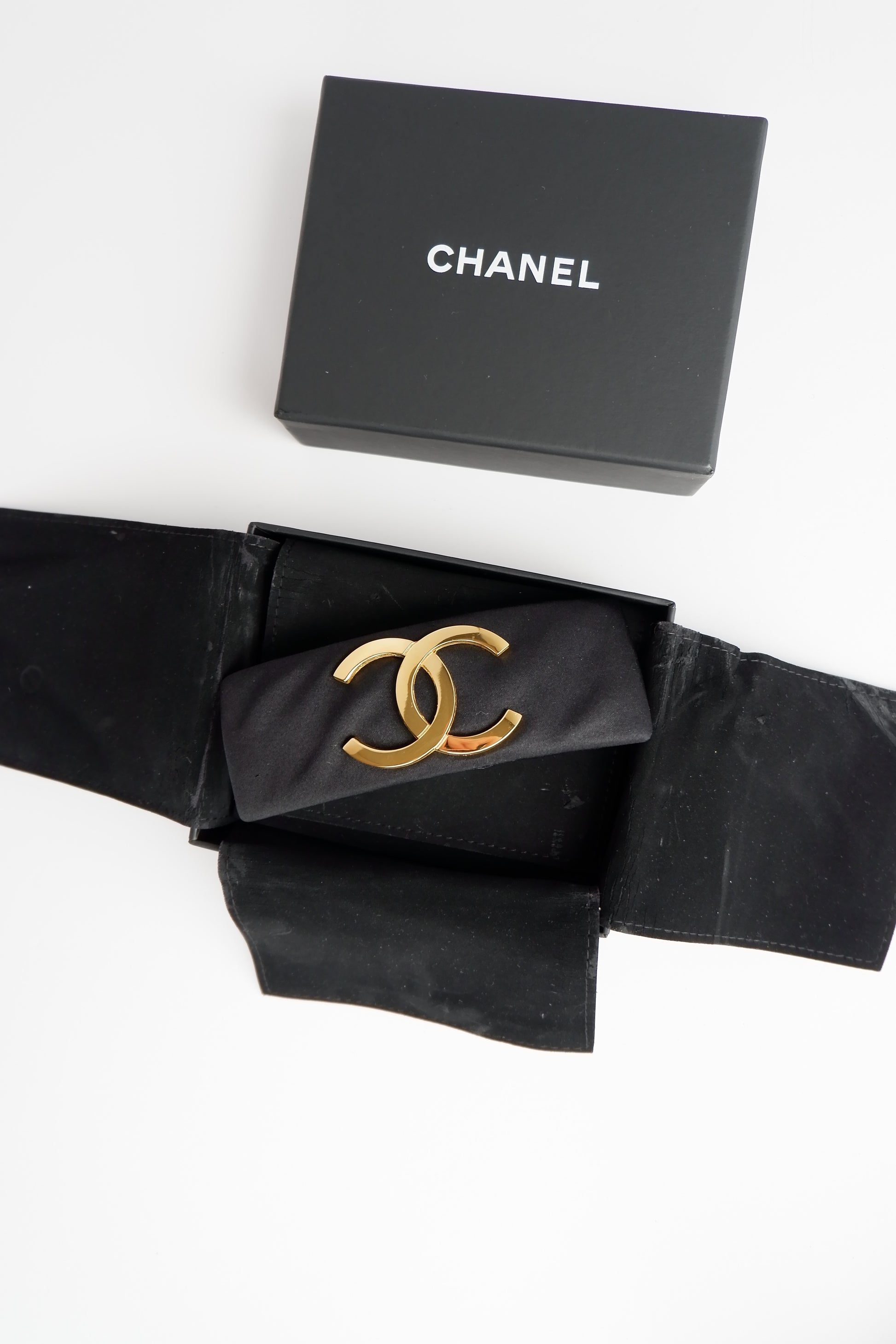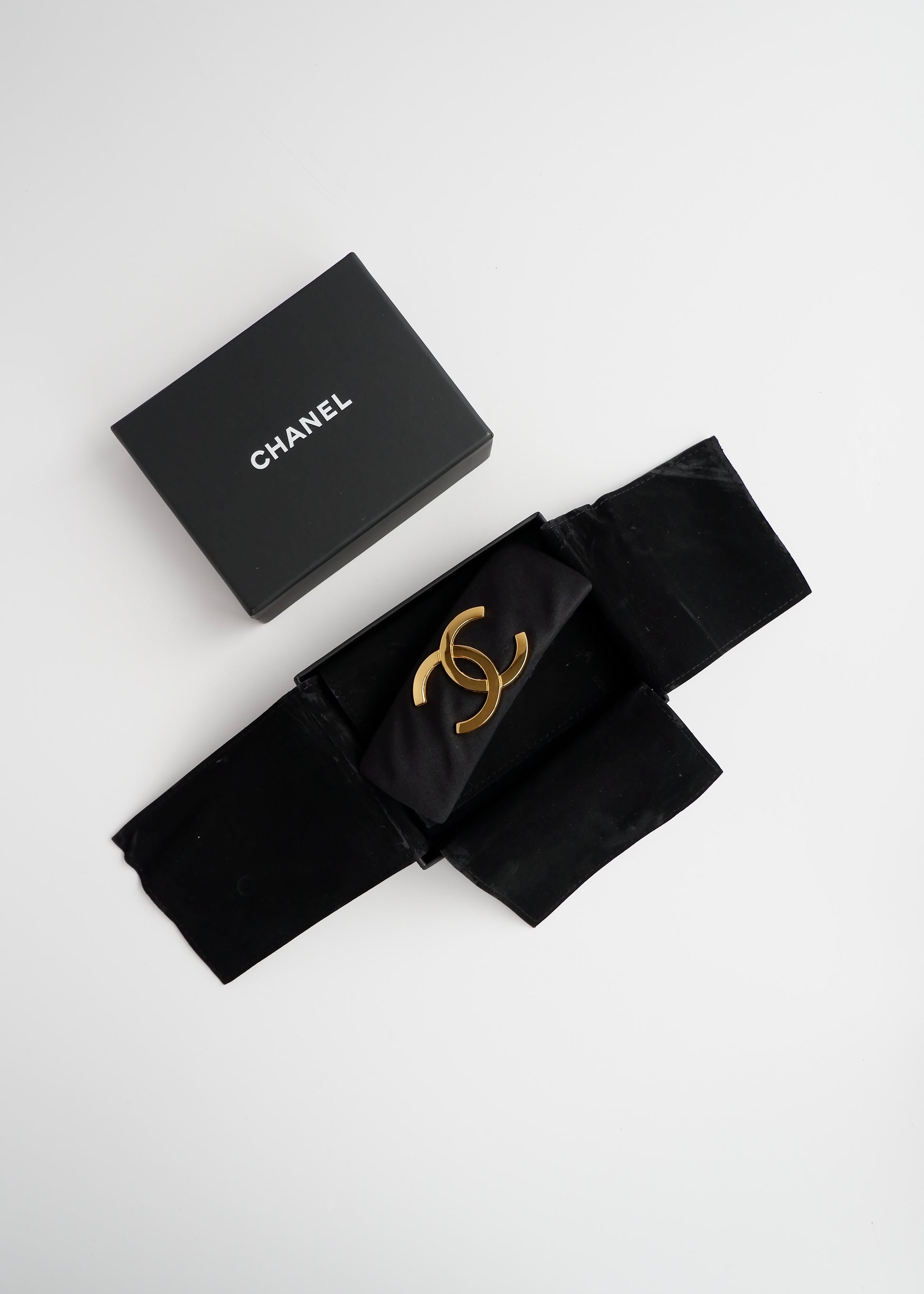 Authentic Preowned Chanel Black Satin Gold CC Logo Hair Beret