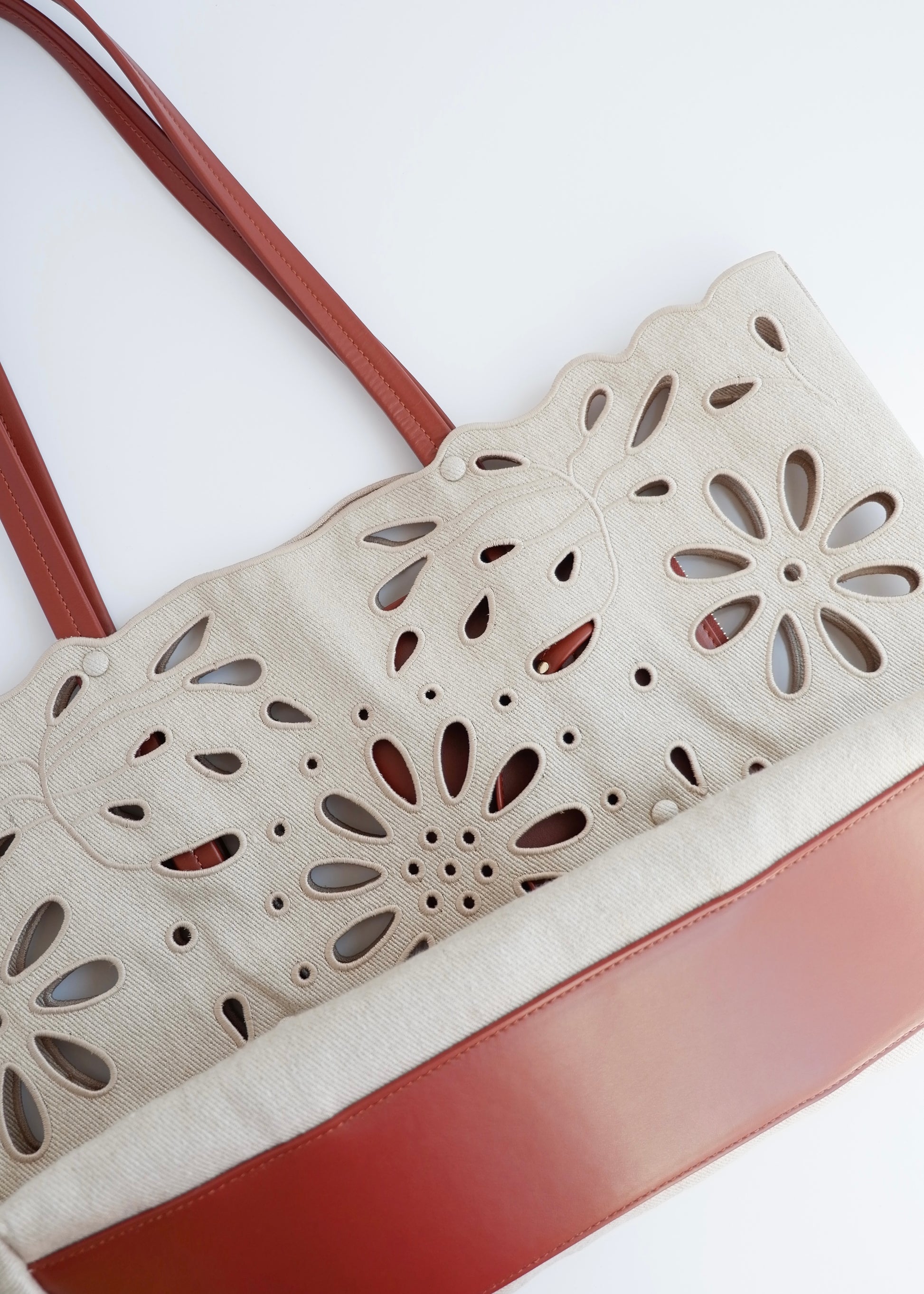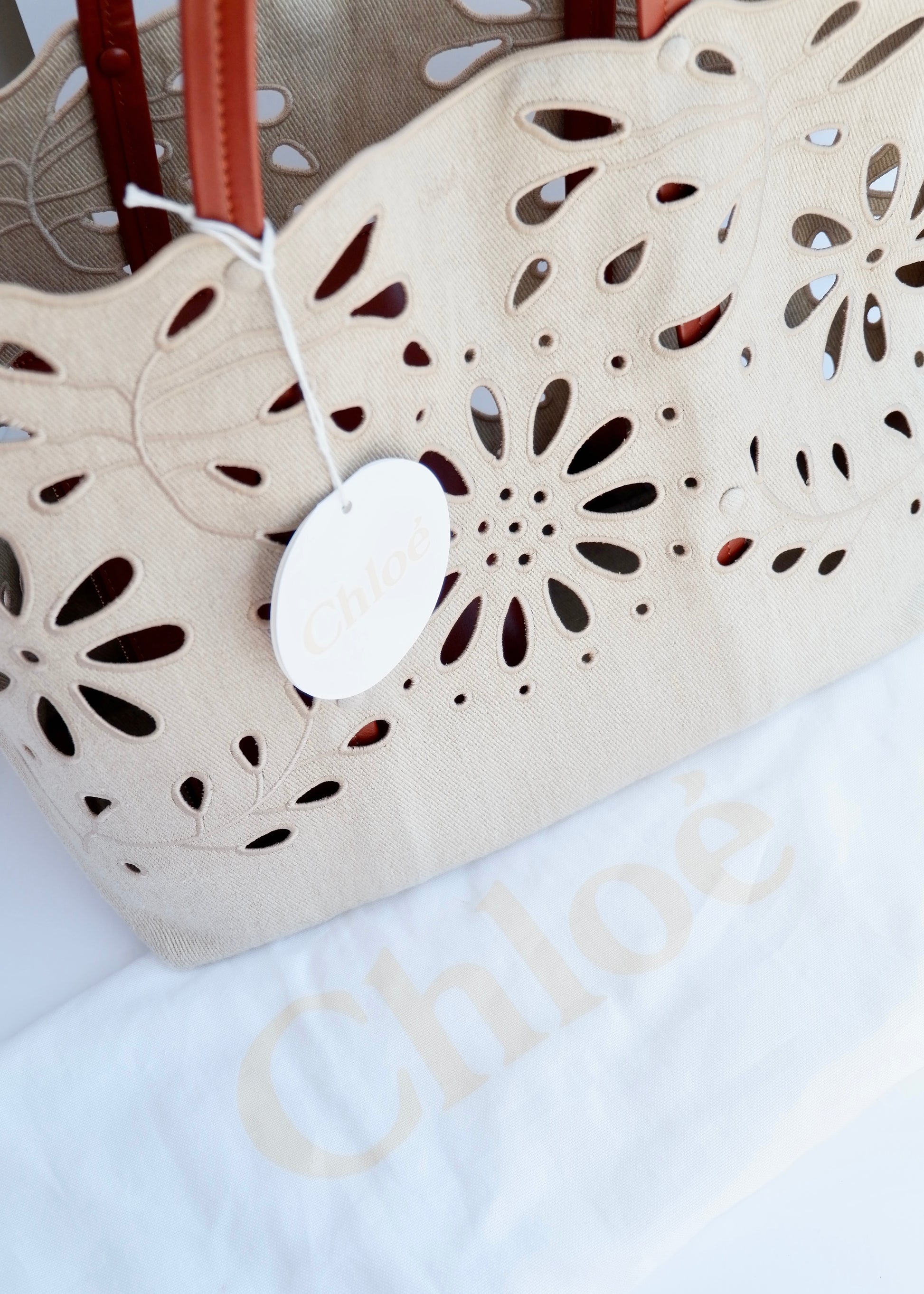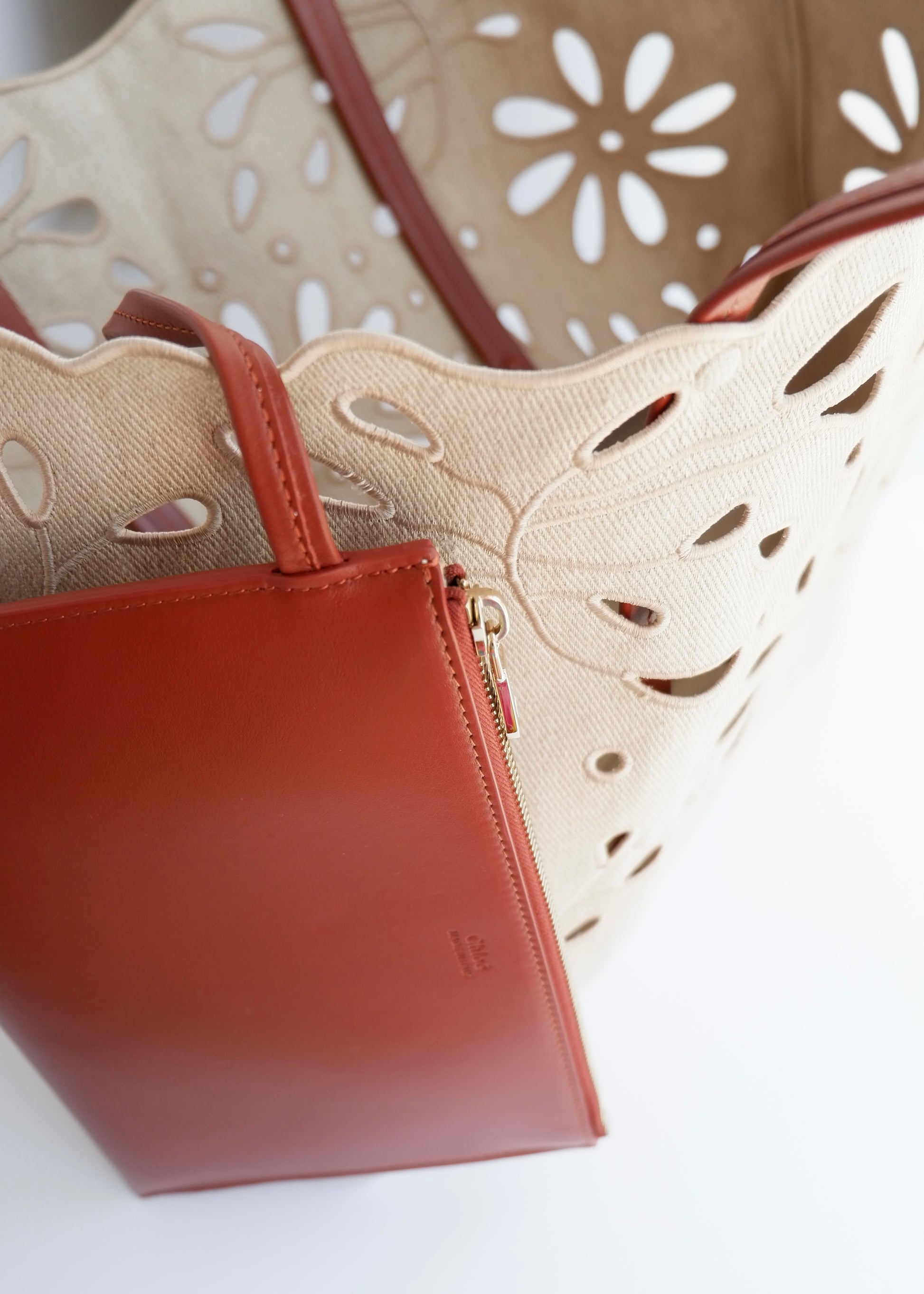 Authentic Preowned Chloe Beige Linen Calfskin Large Kamilla North-South Tote