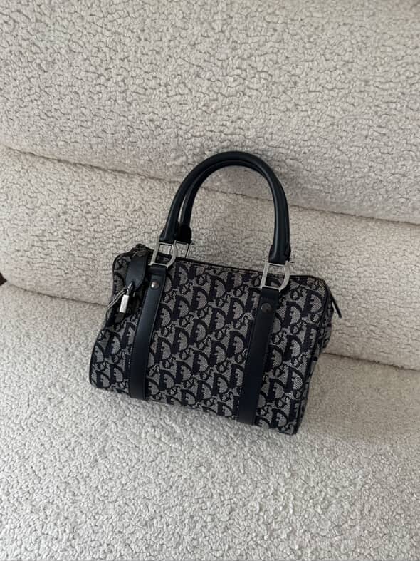 Authentic Preowned Christian Dior Dark Navy Trotter Small Boston Bag