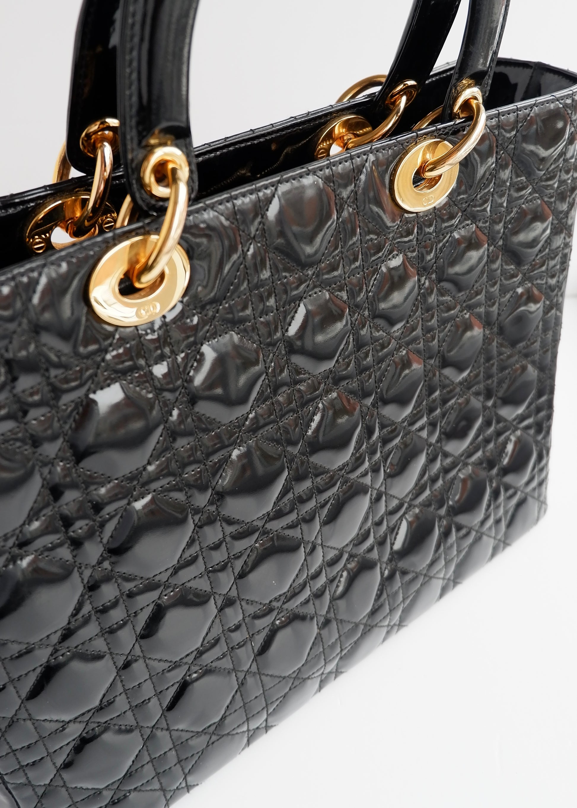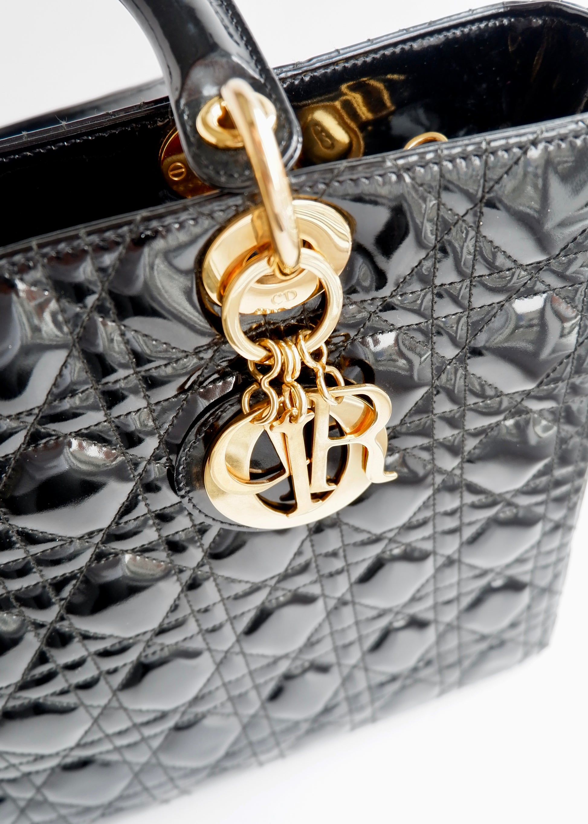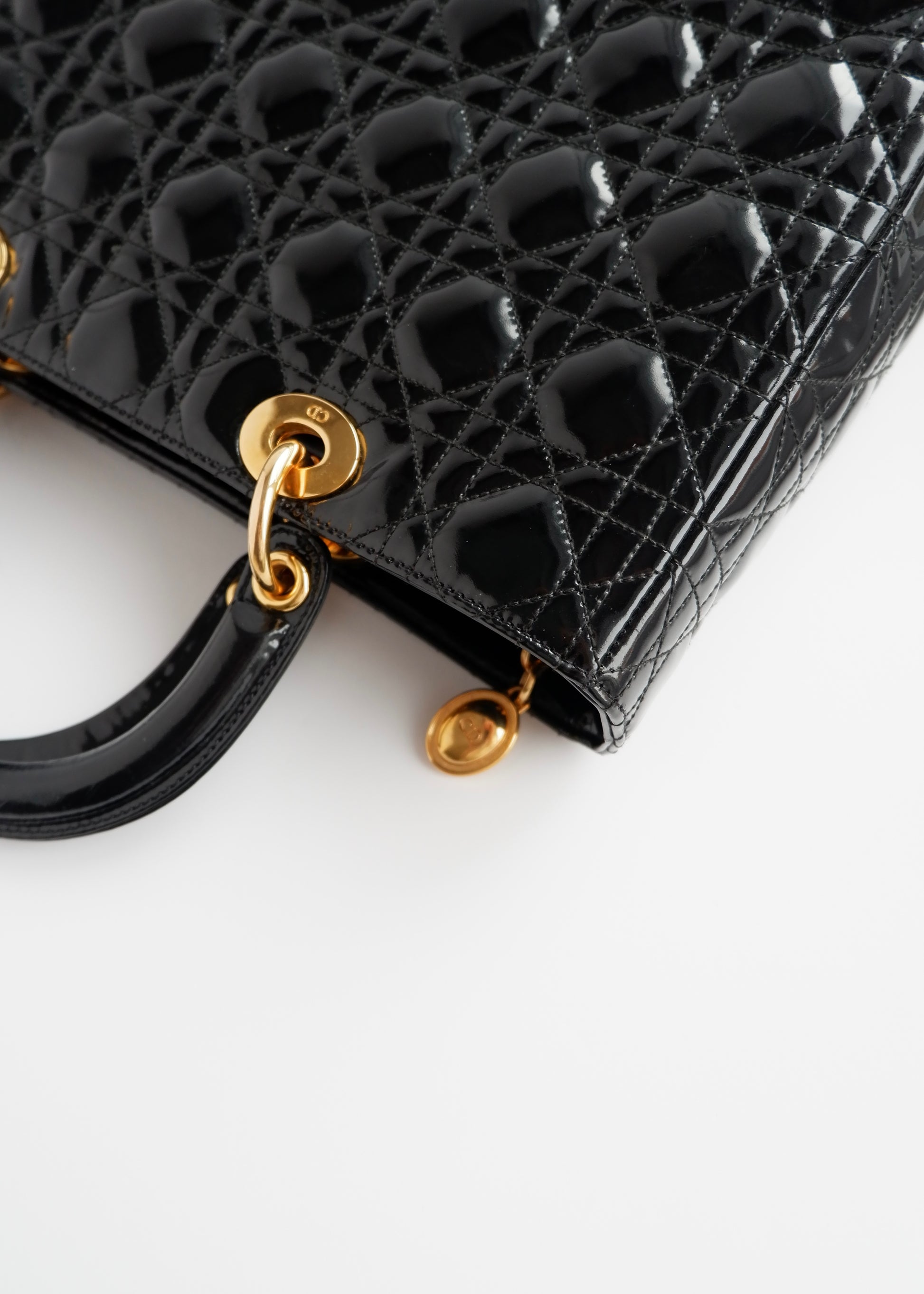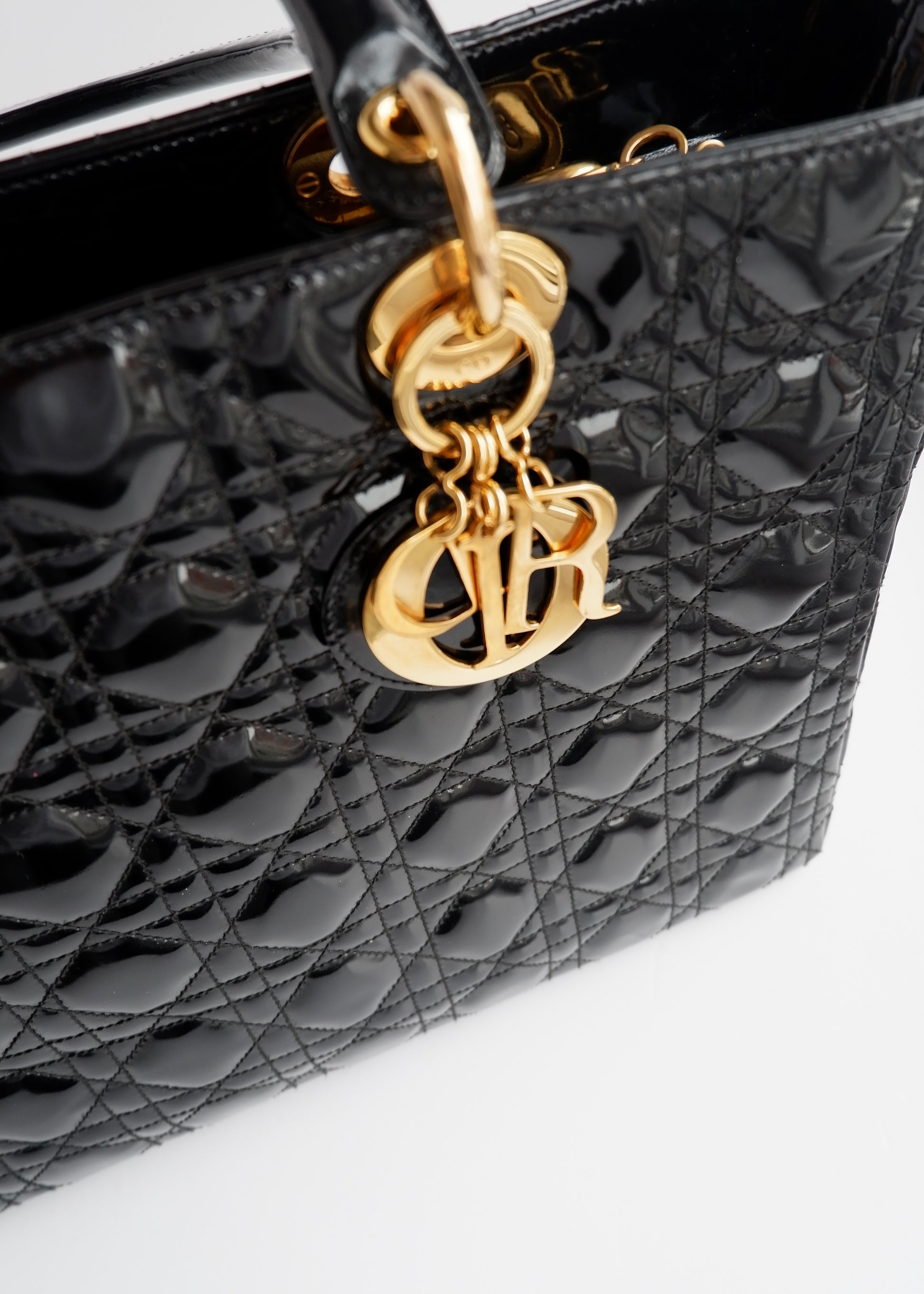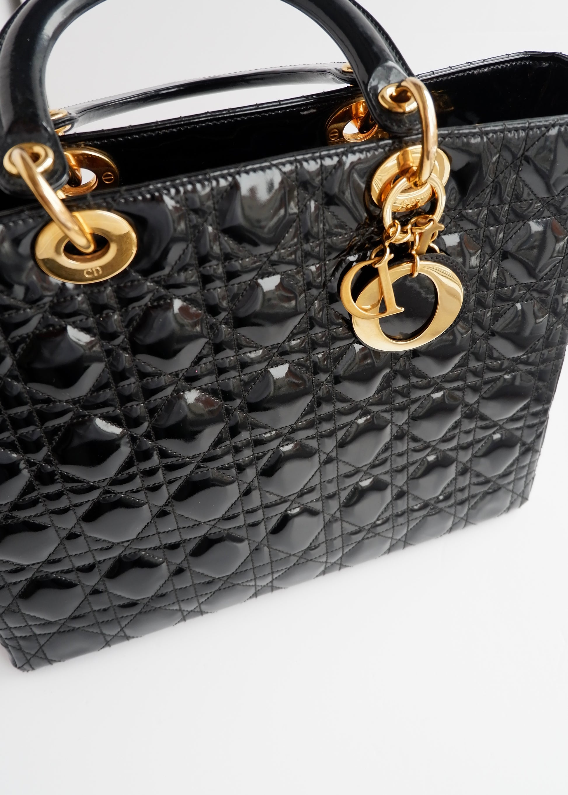 Authentic Preowned Dior Black Patent Leather Lady Dior Bag