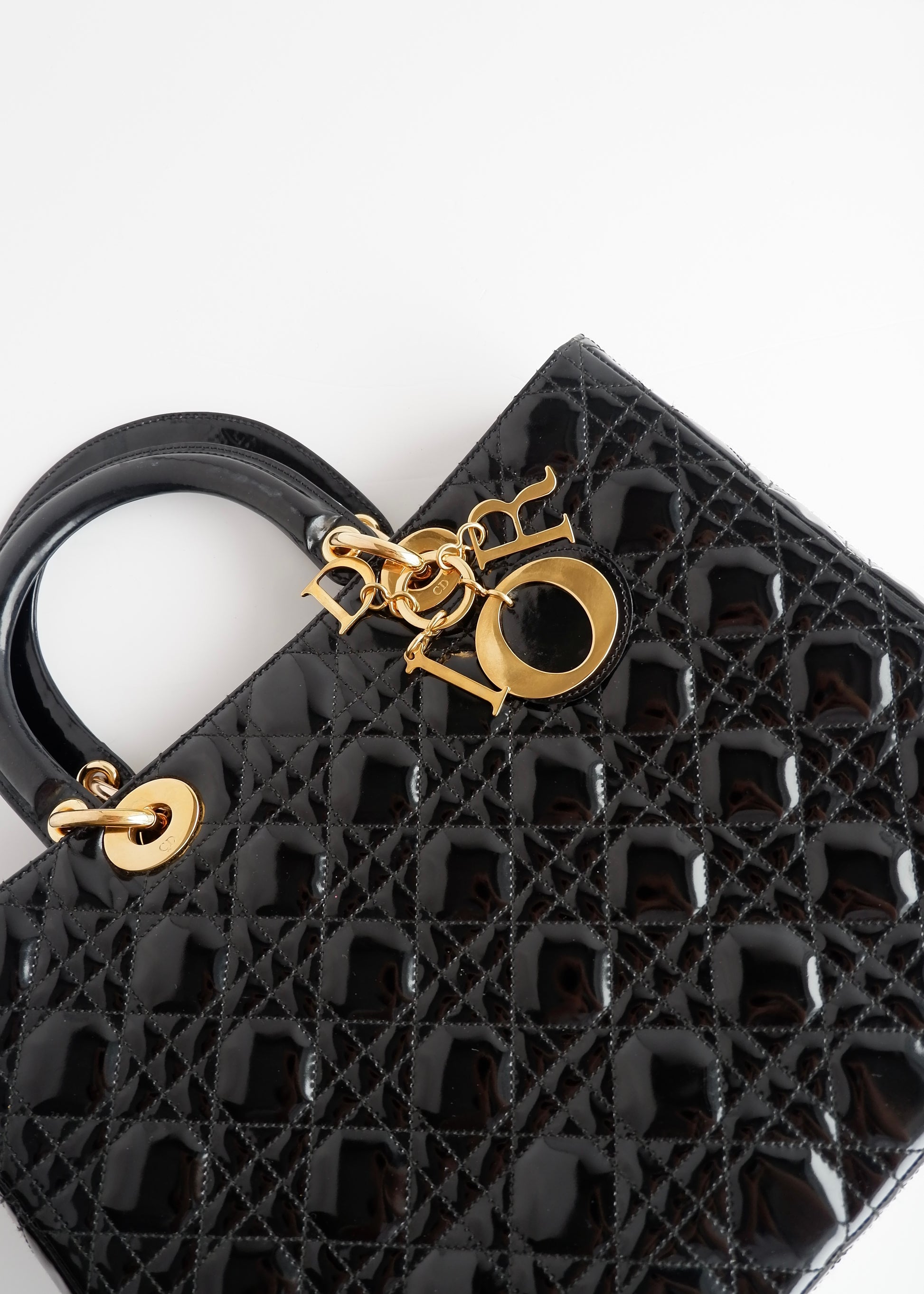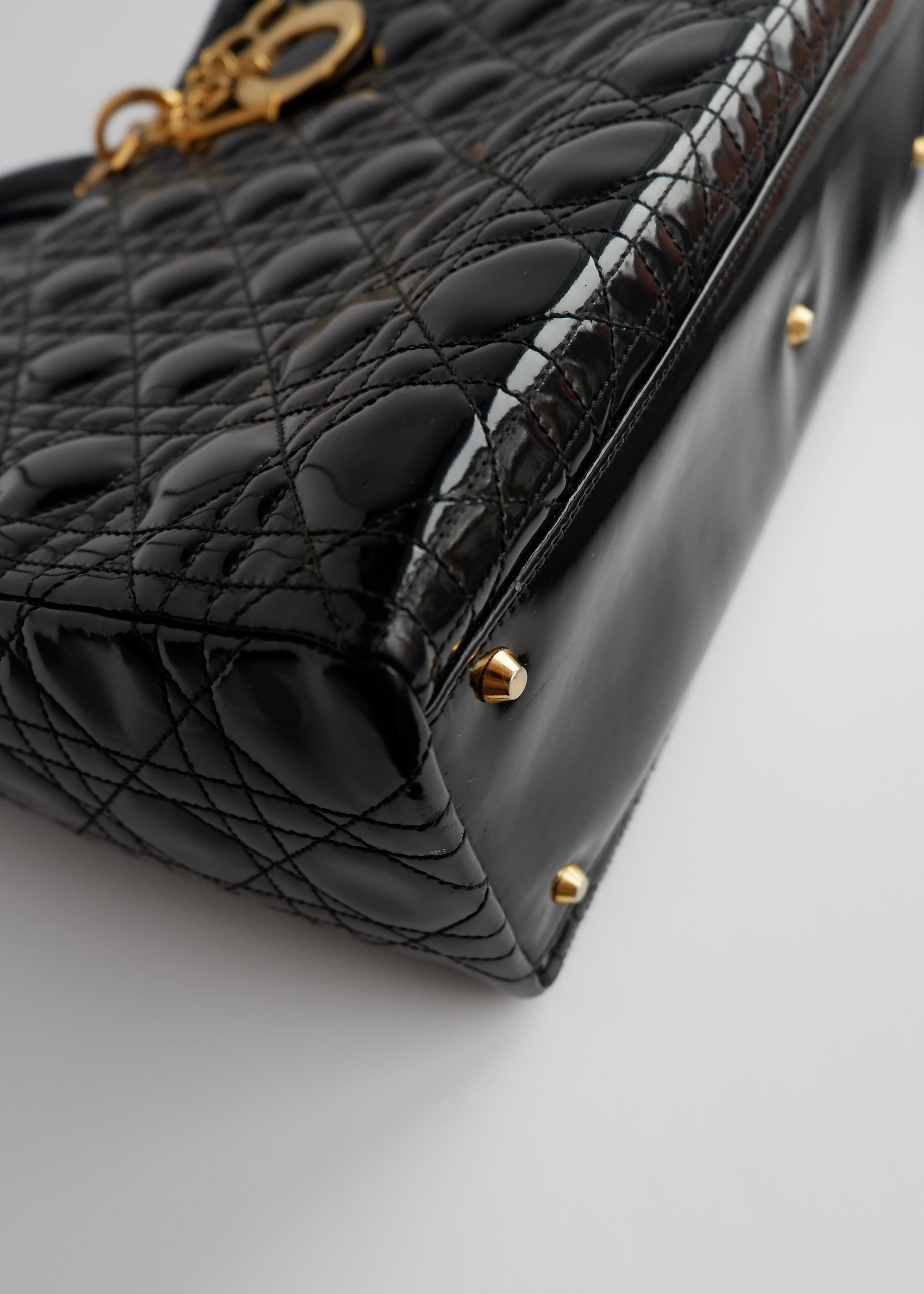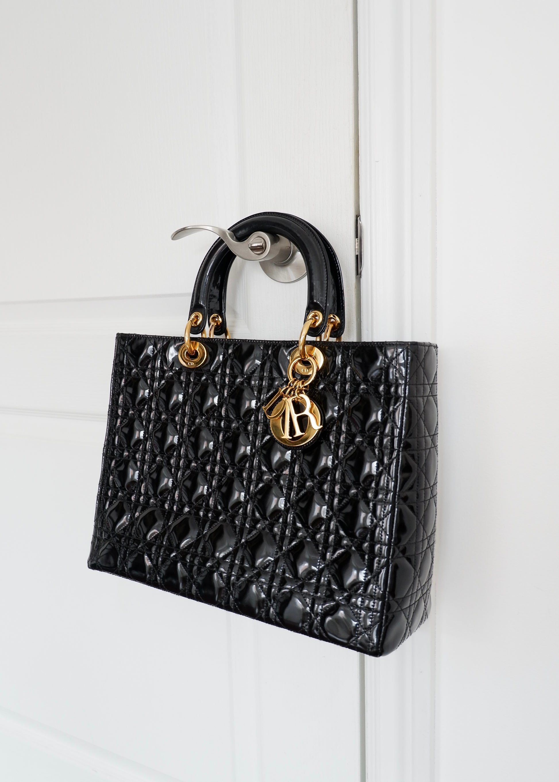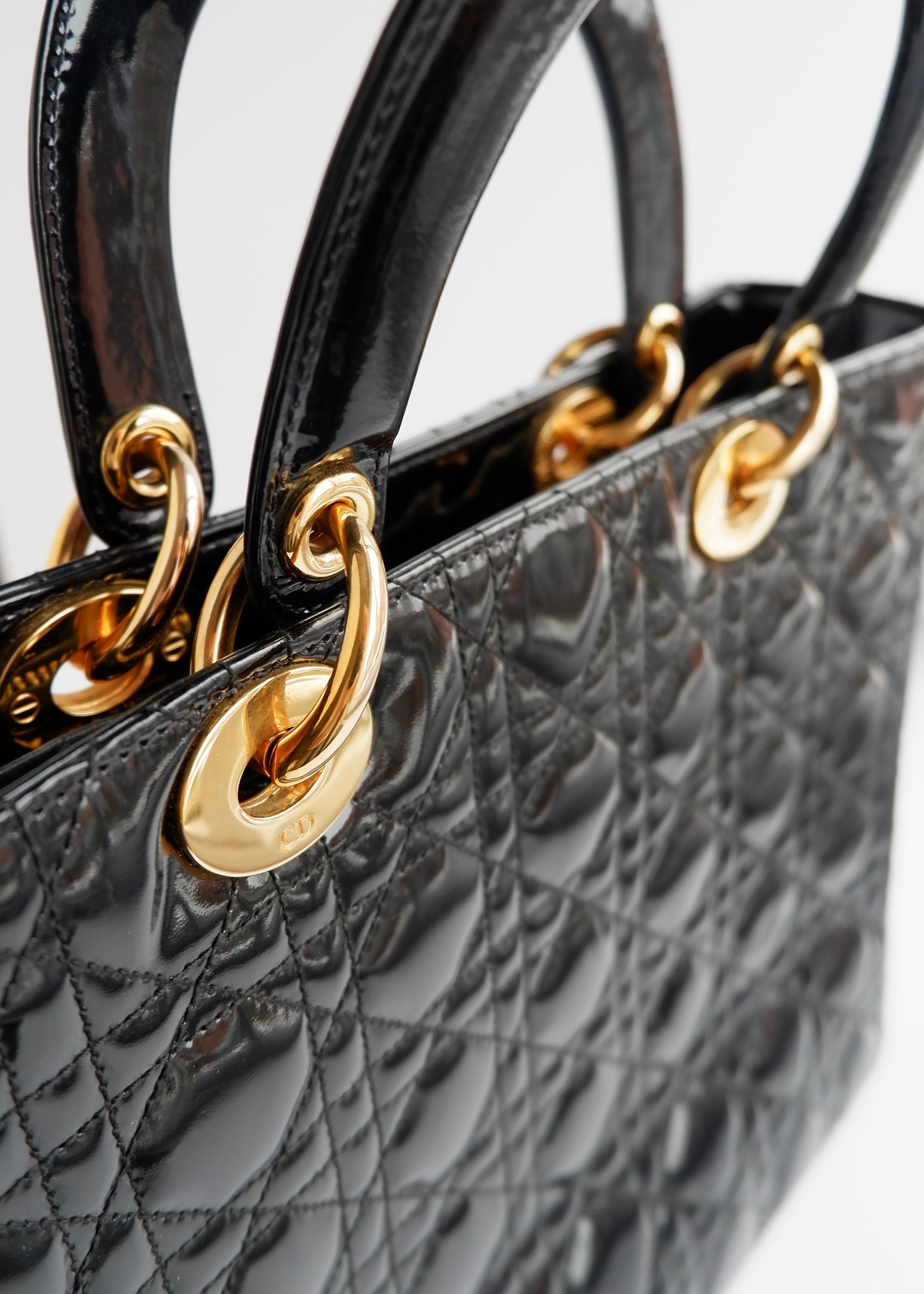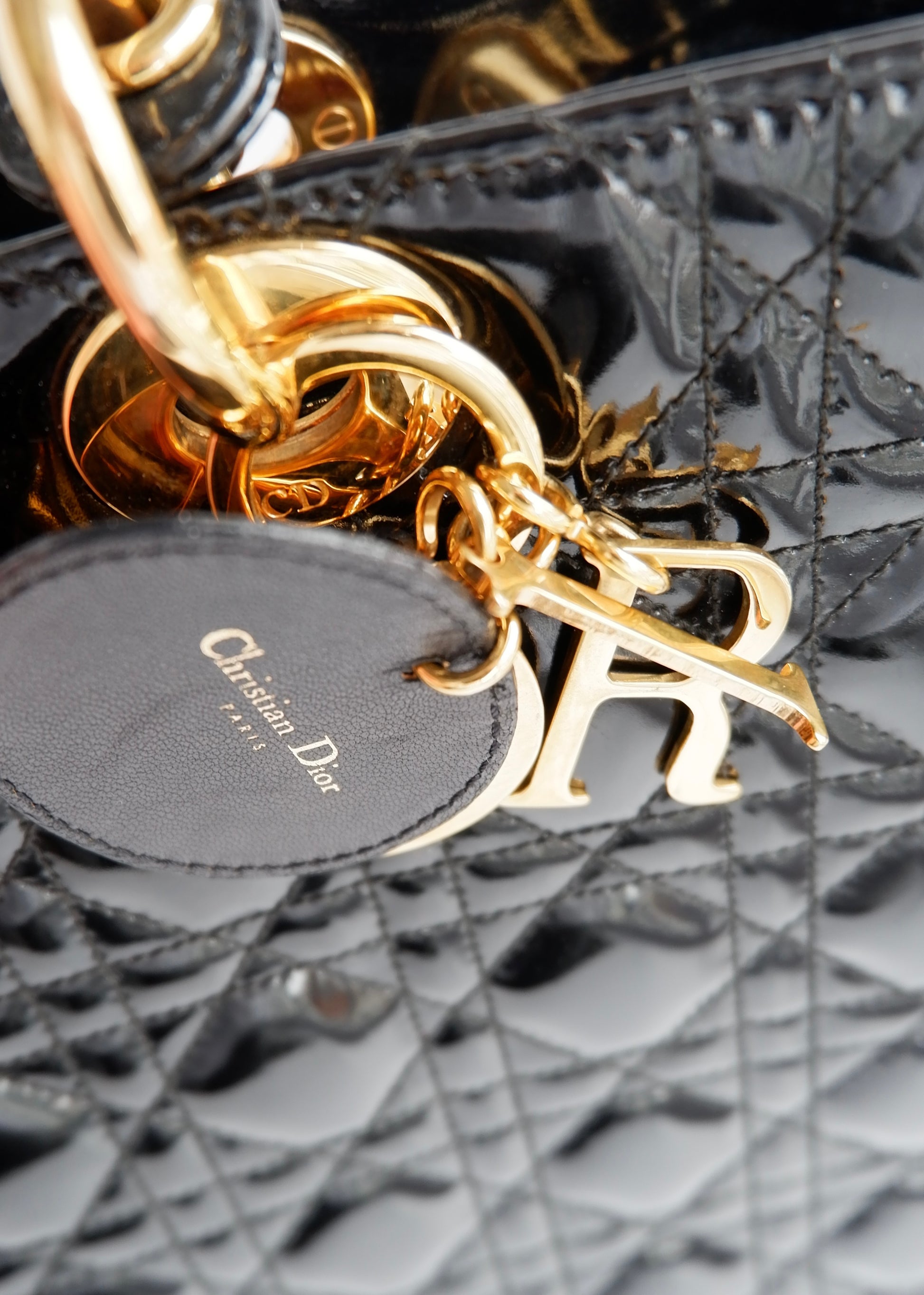 Authentic Preowned Dior Black Patent Leather Lady Dior Bag