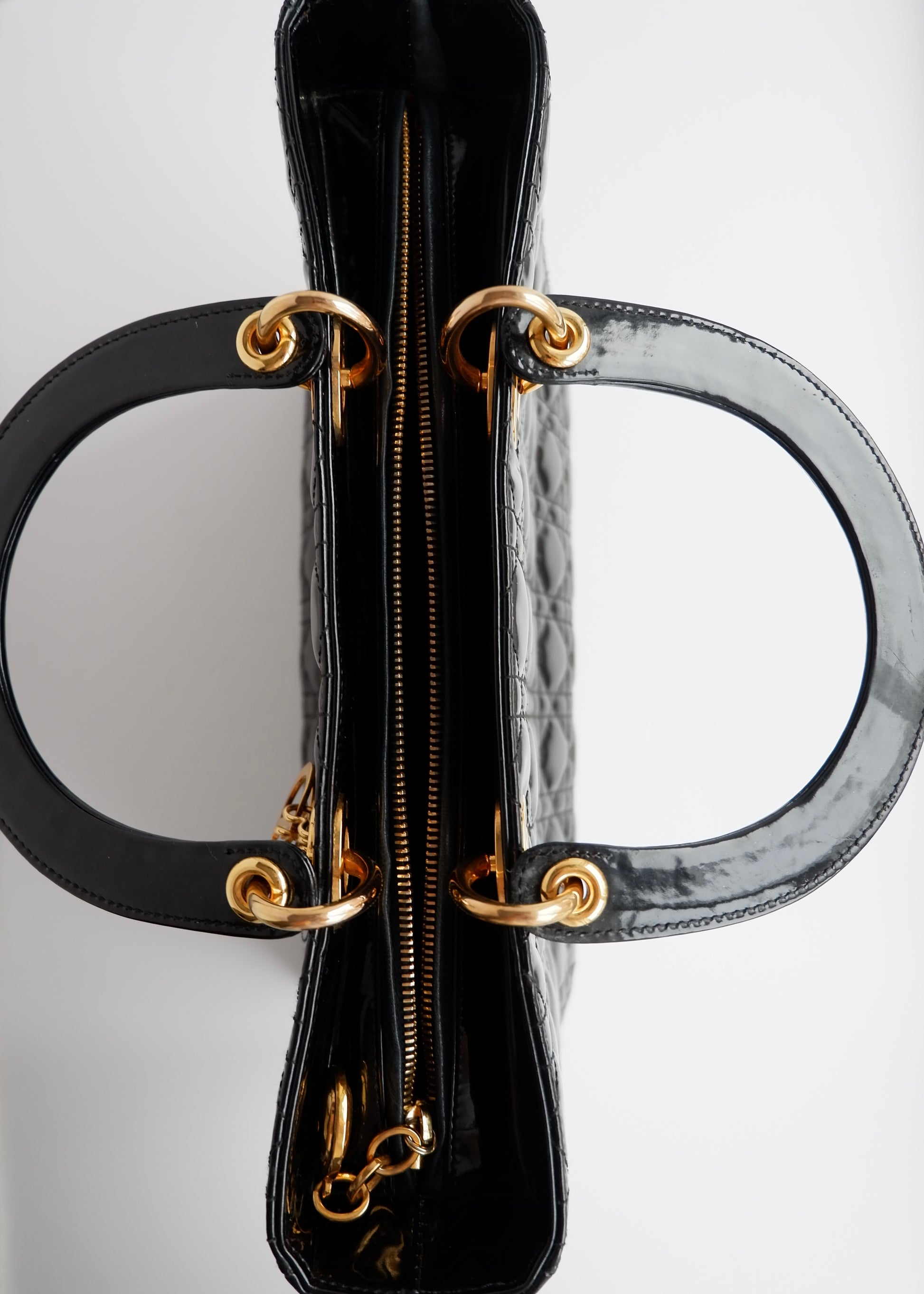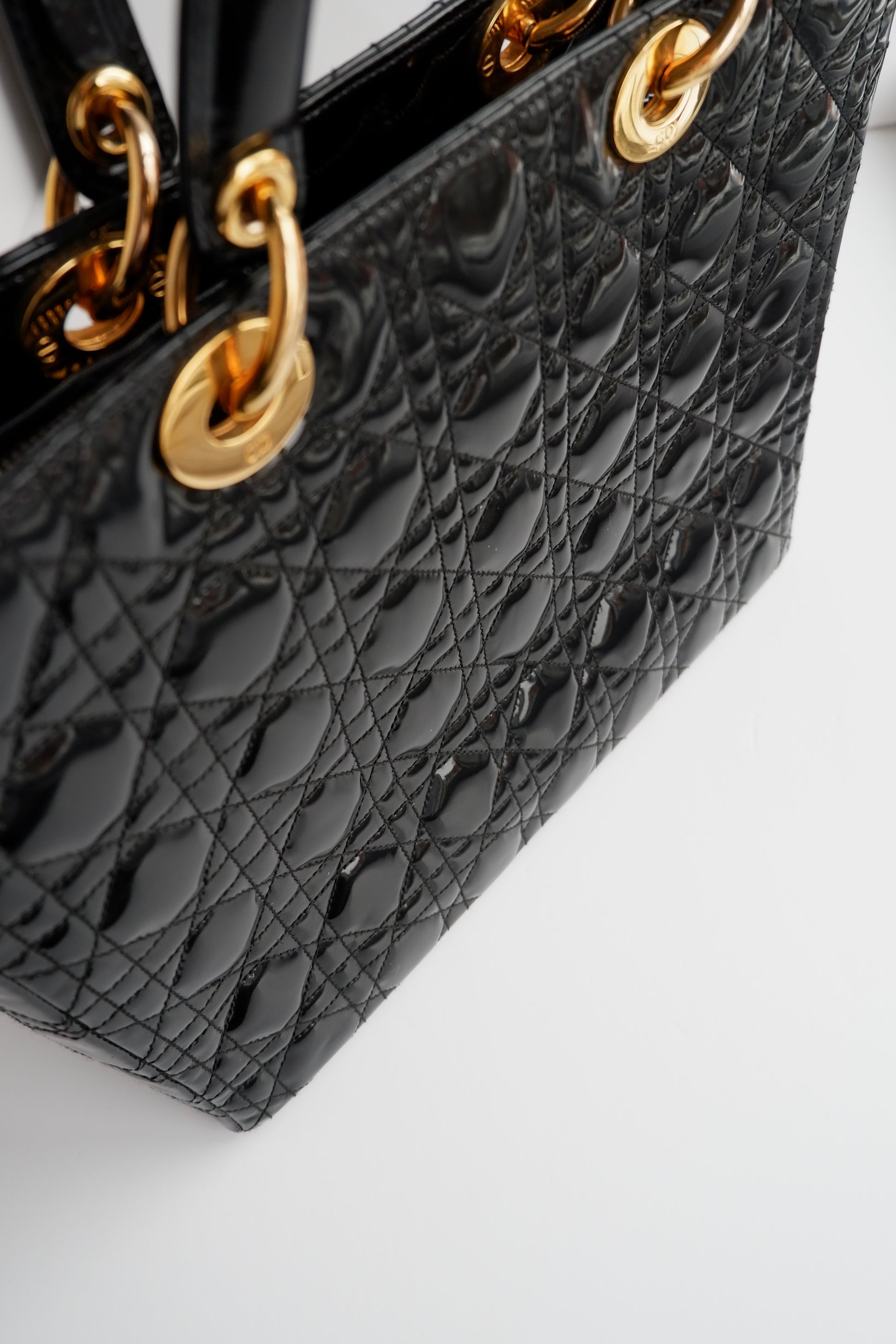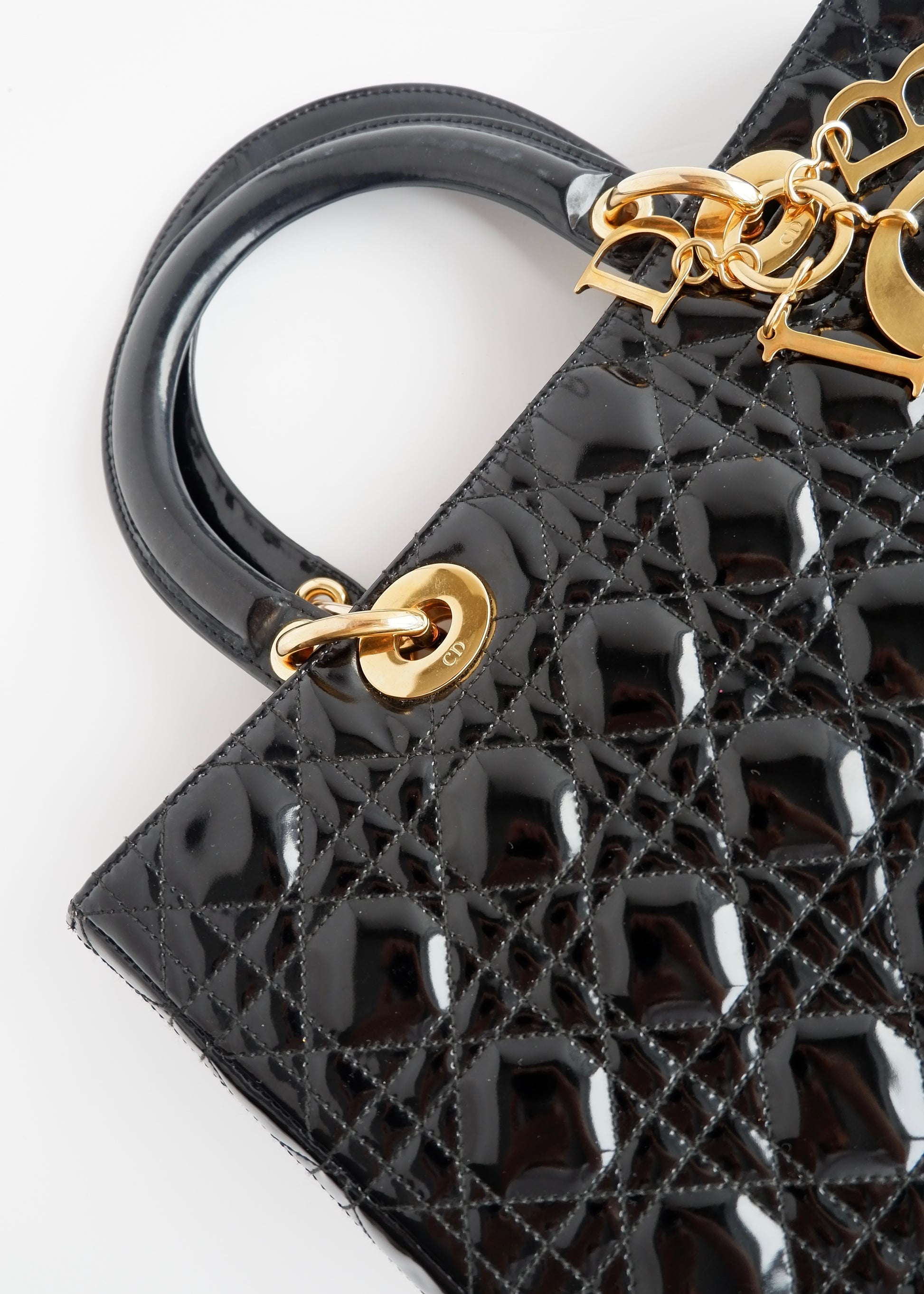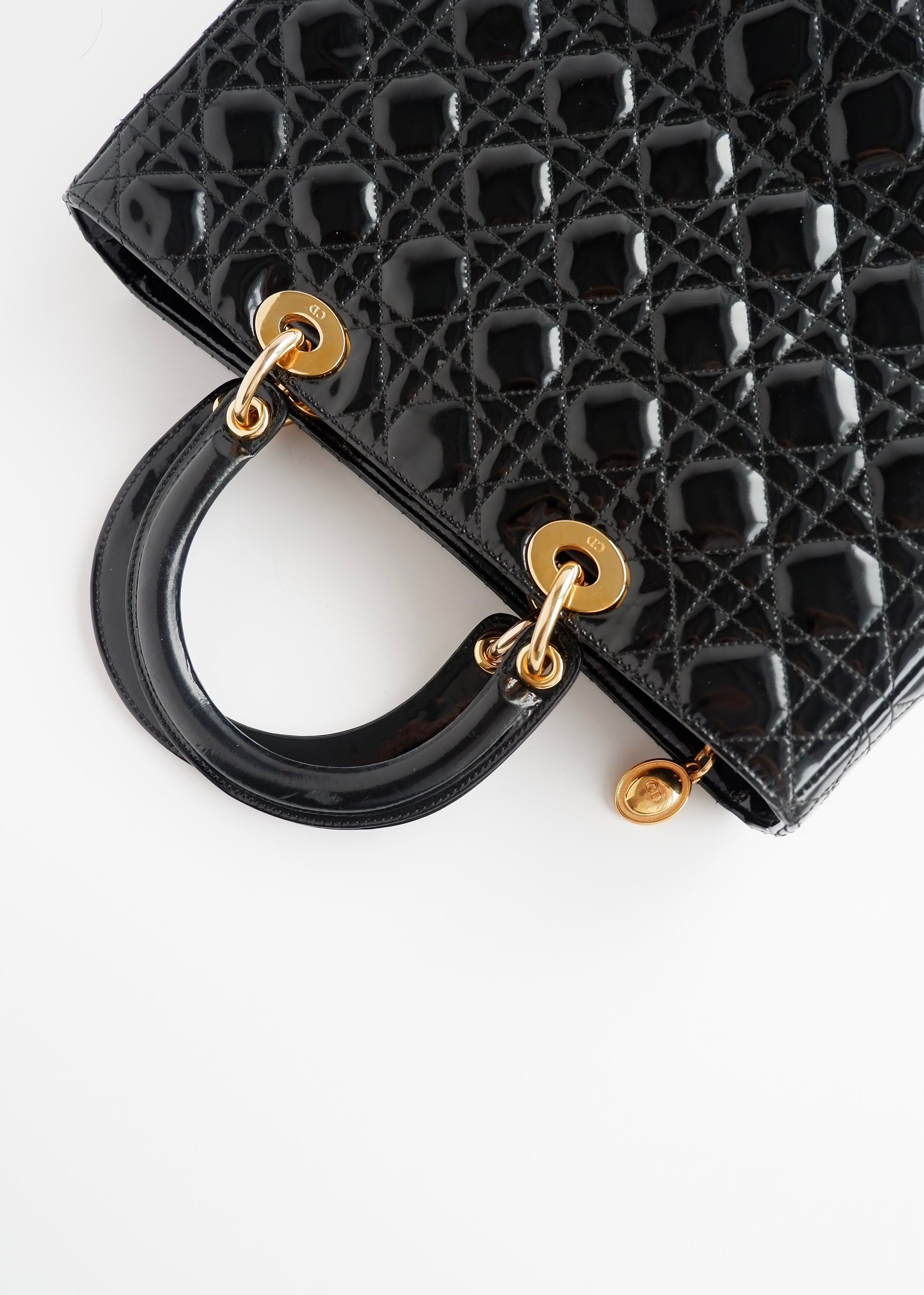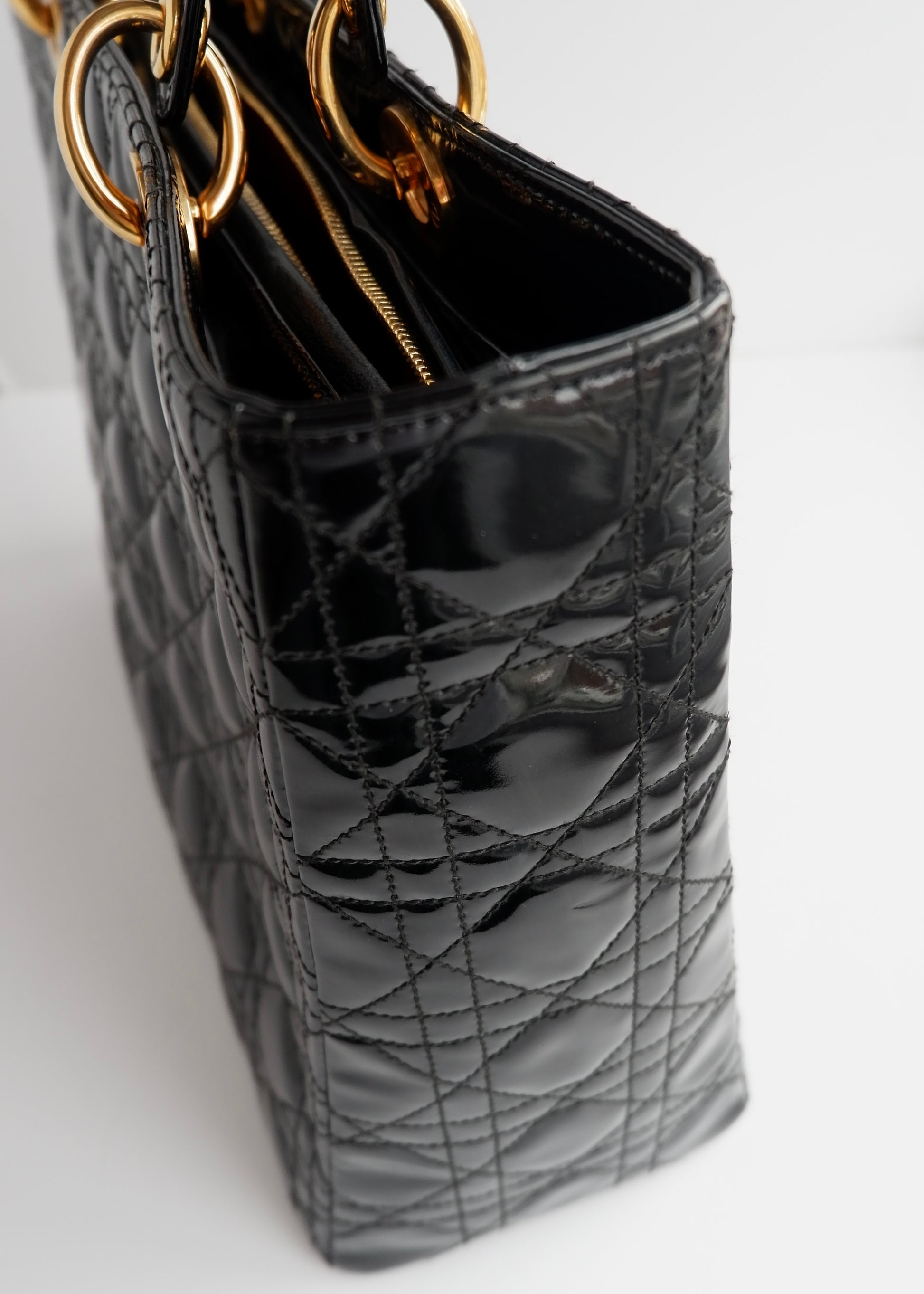 Authentic Preowned Dior Black Patent Leather Lady Dior Bag