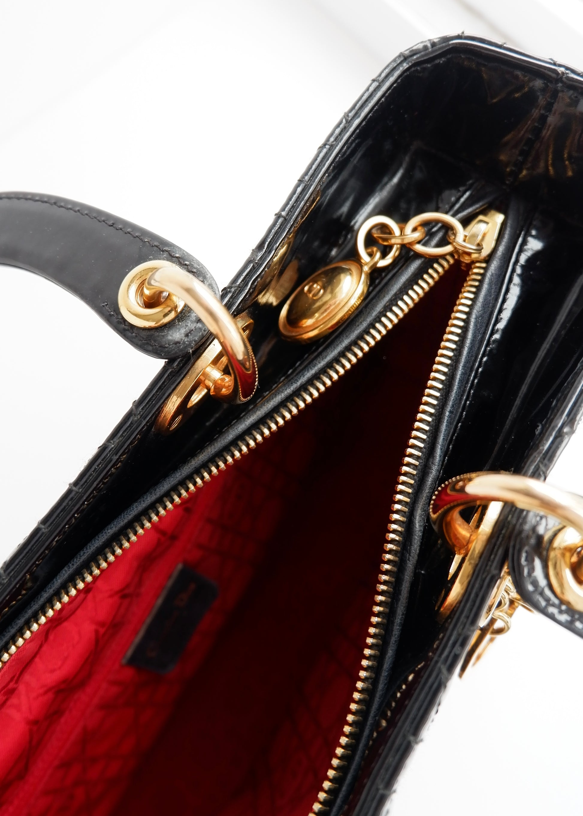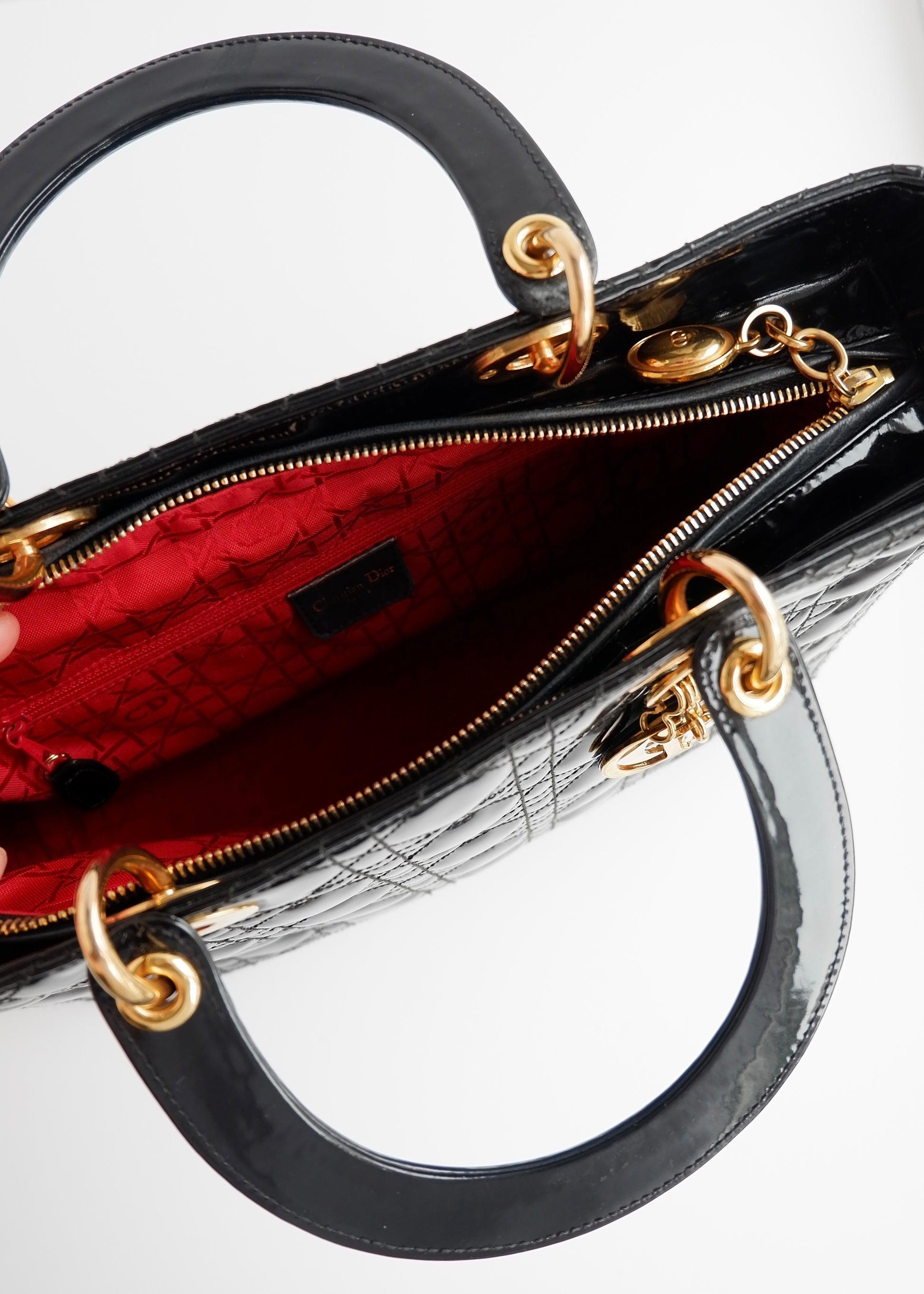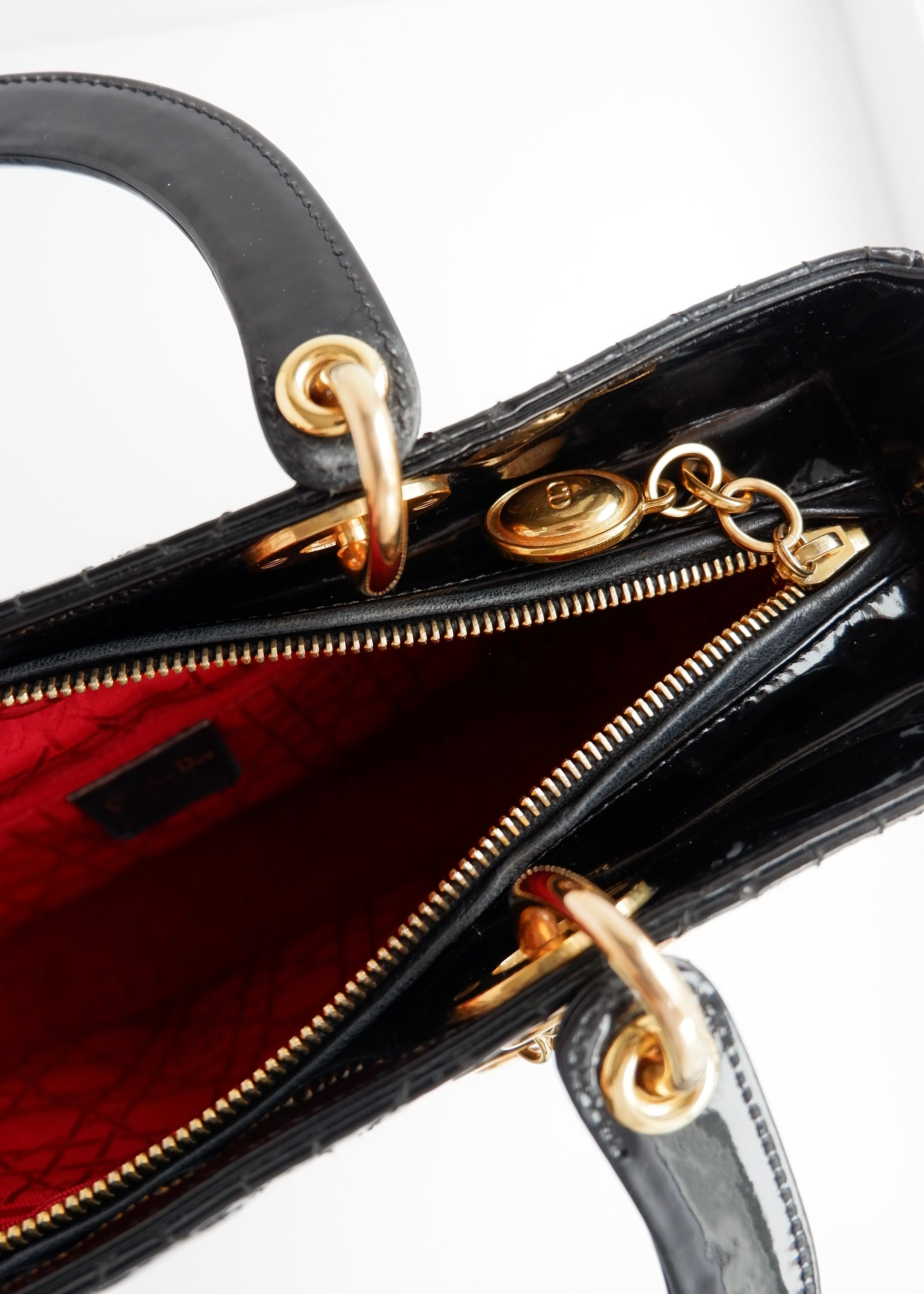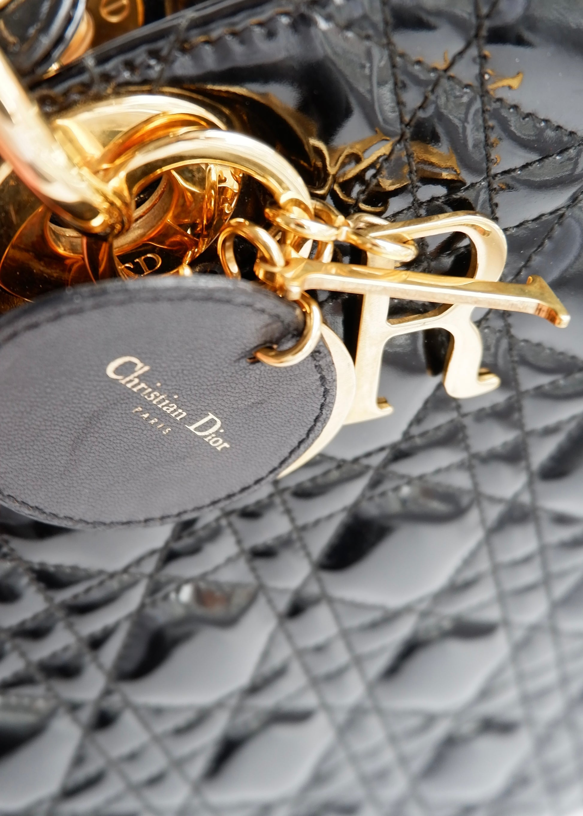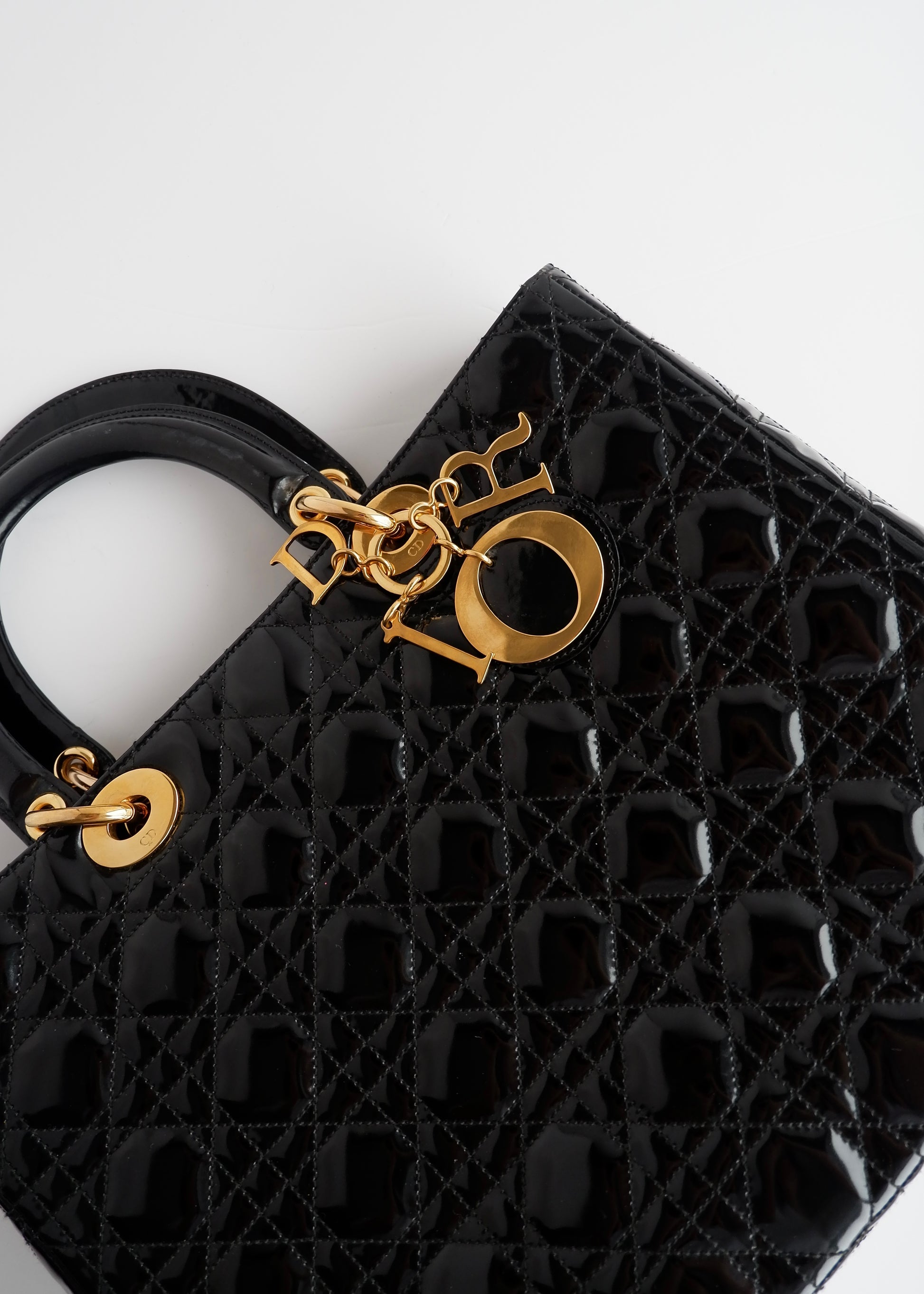 Authentic Preowned Dior Black Patent Leather Lady Dior Bag