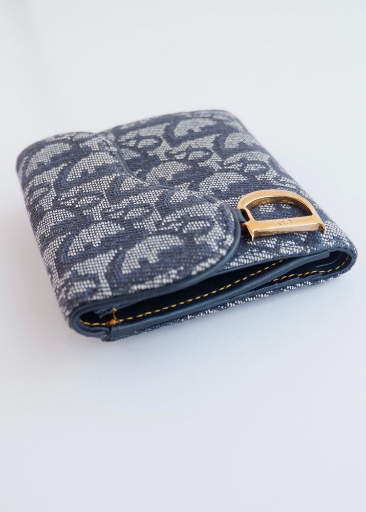 Authentic Preowned Dior Navy Oblique Bi-Fold D Charm Wallet