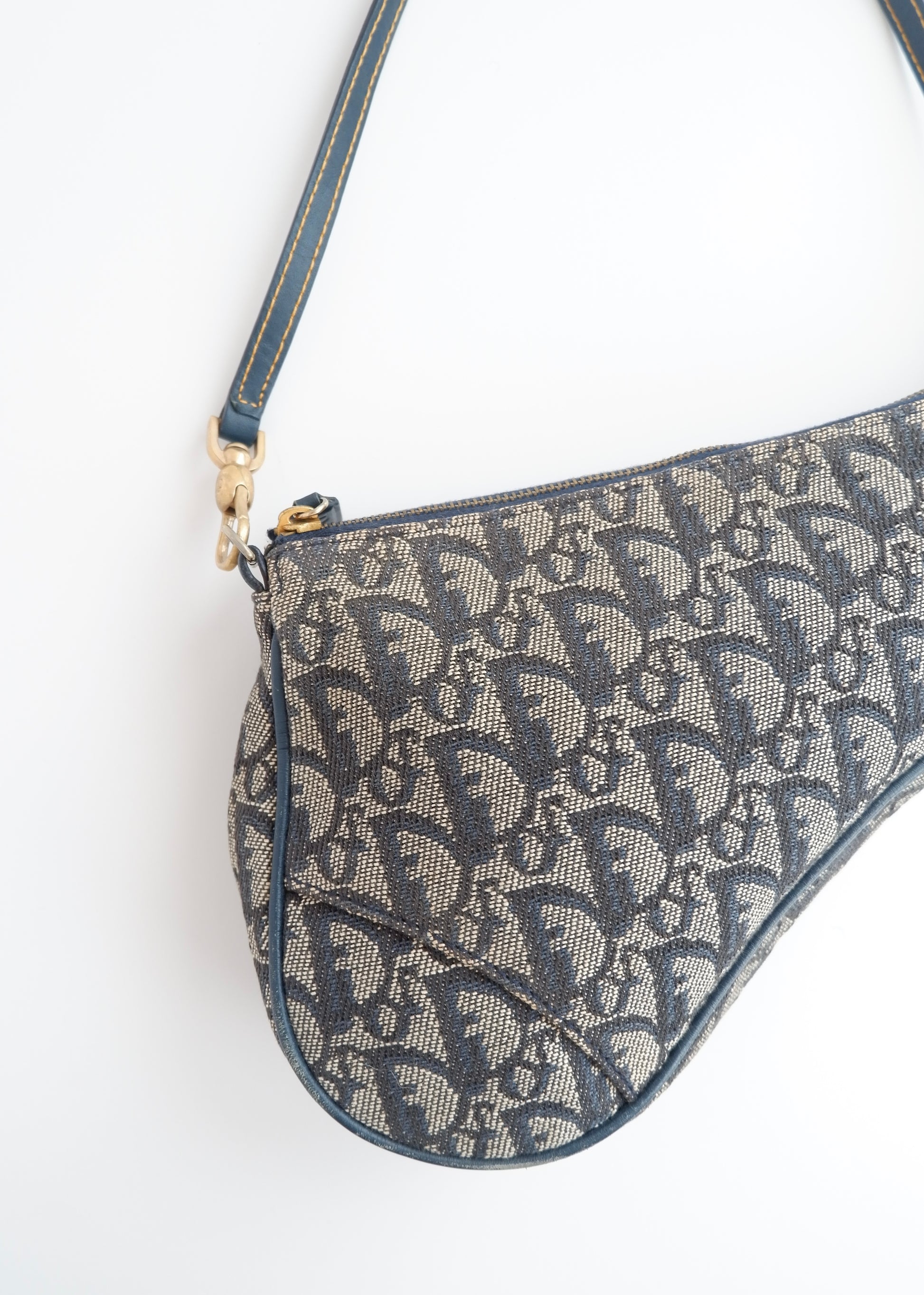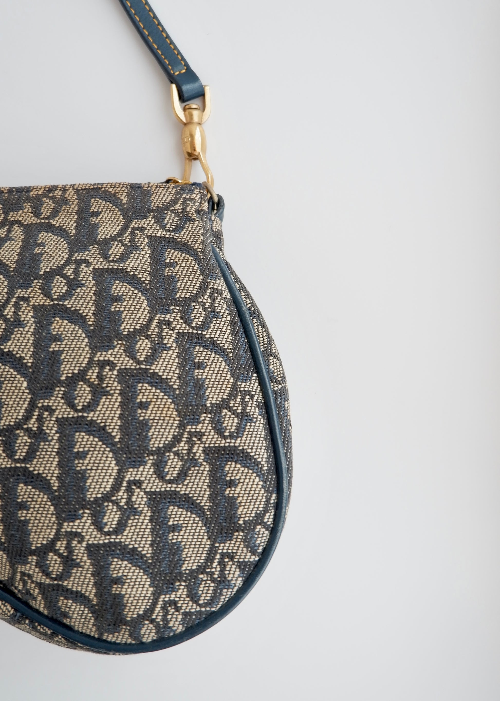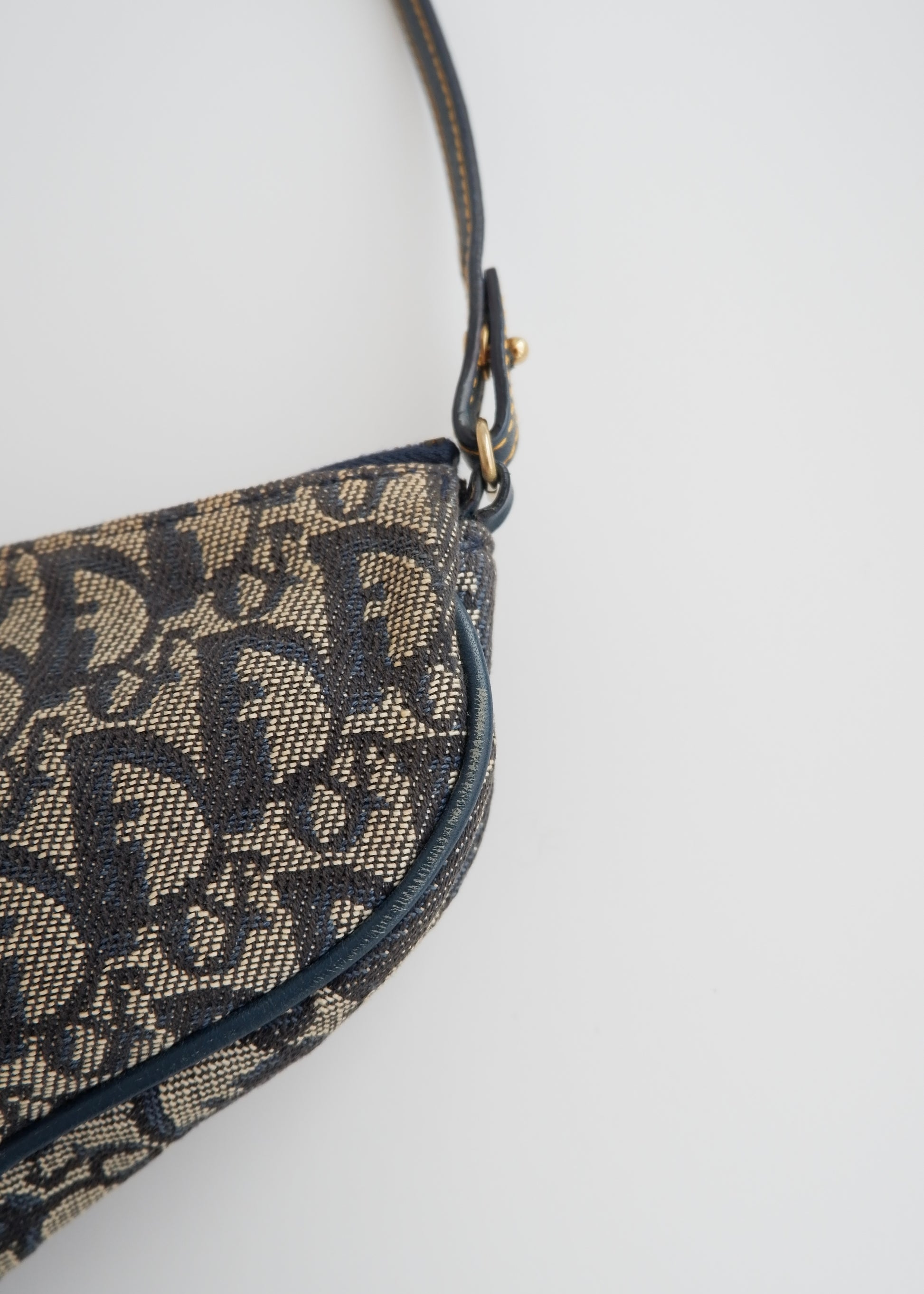 Authentic Preowned Dior Navy Oblique Canvas Saddle Bag