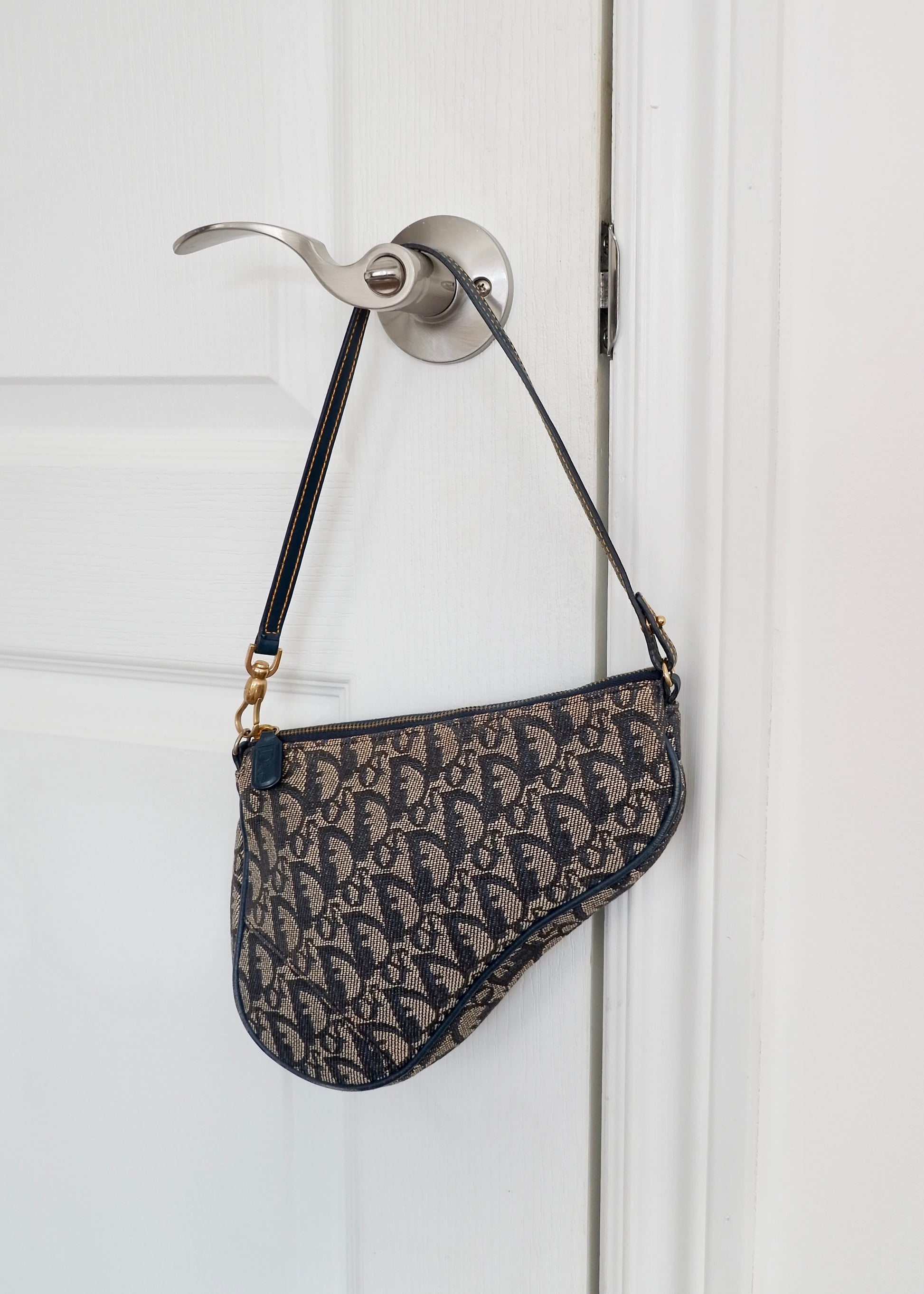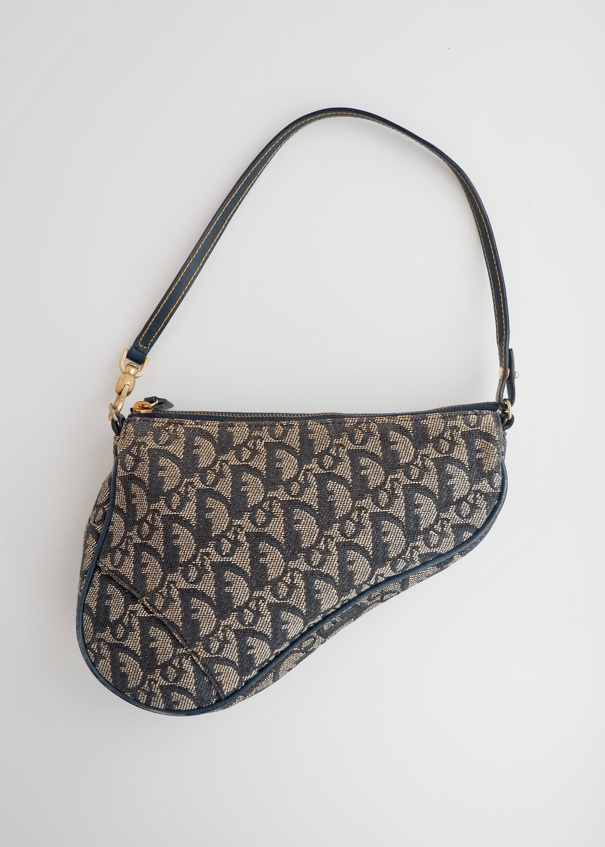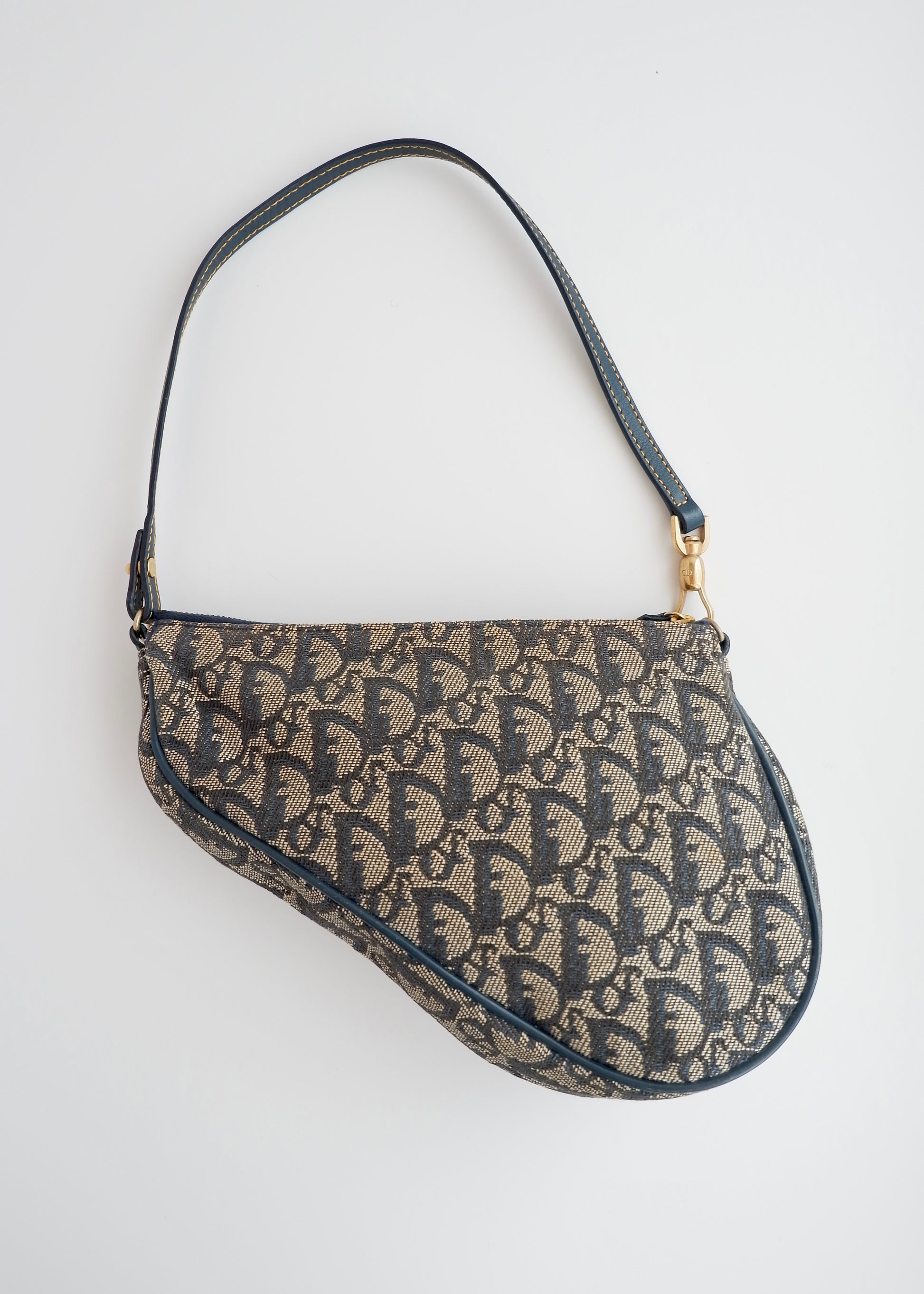 Authentic Preowned Dior Navy Oblique Canvas Saddle Bag