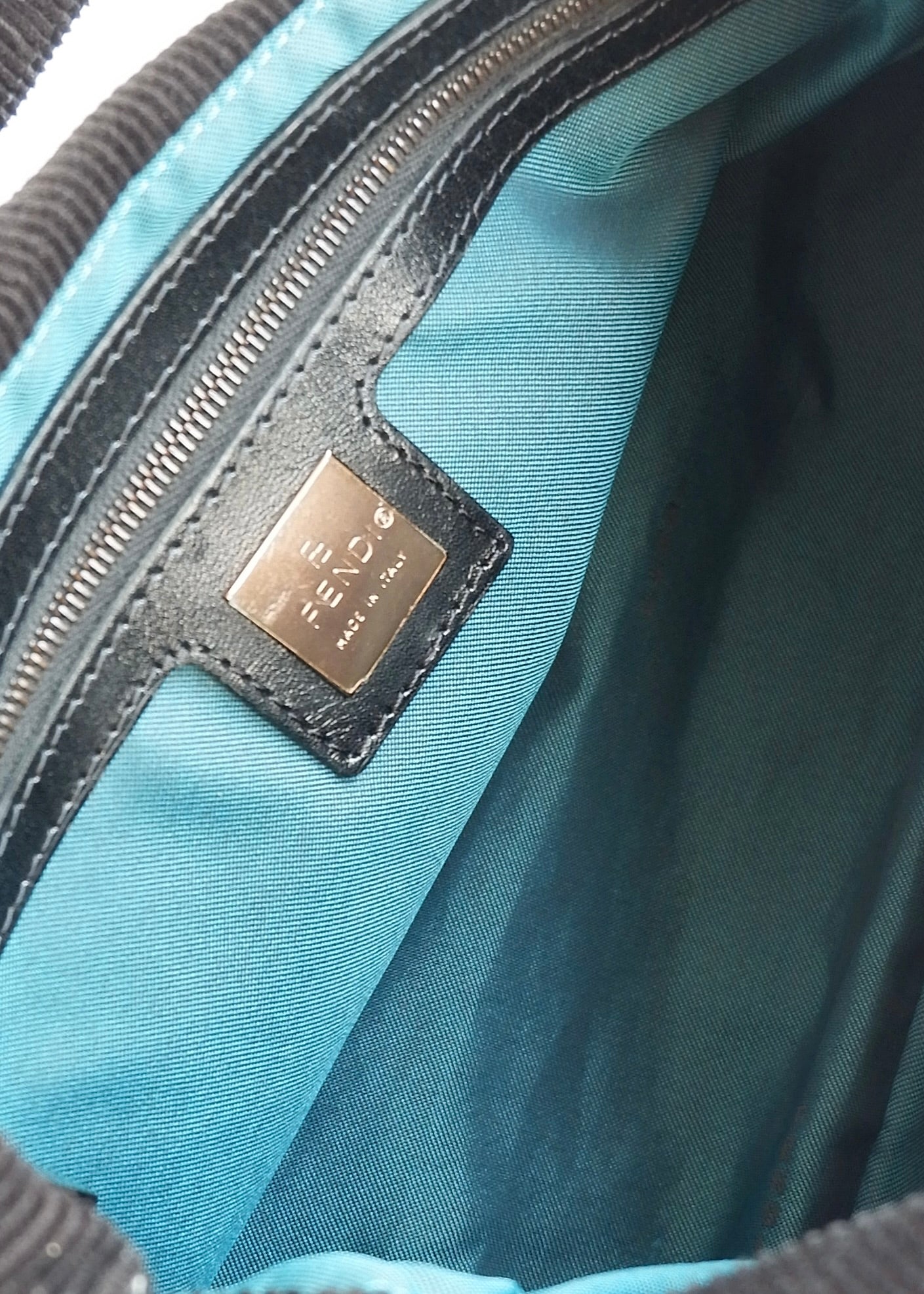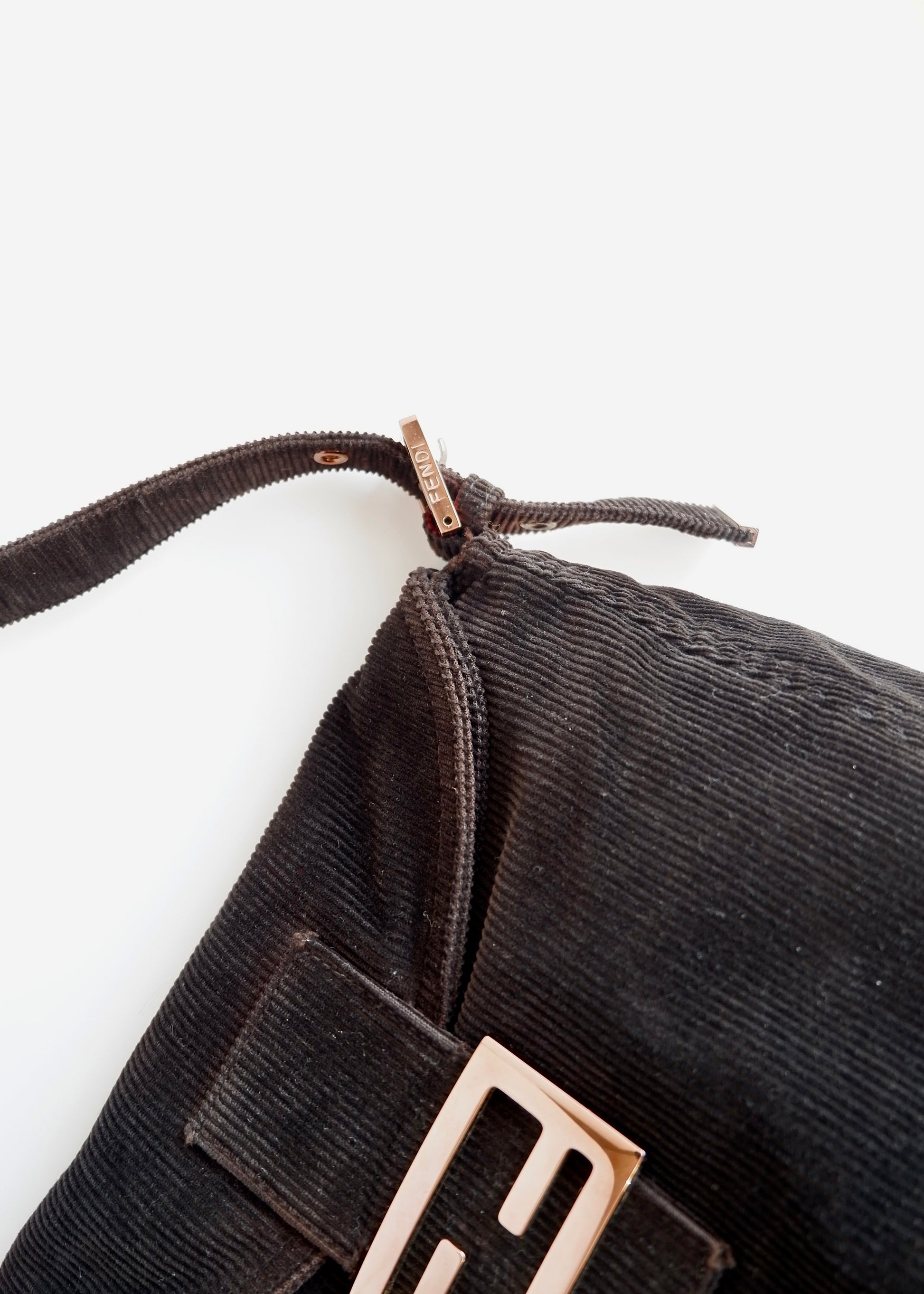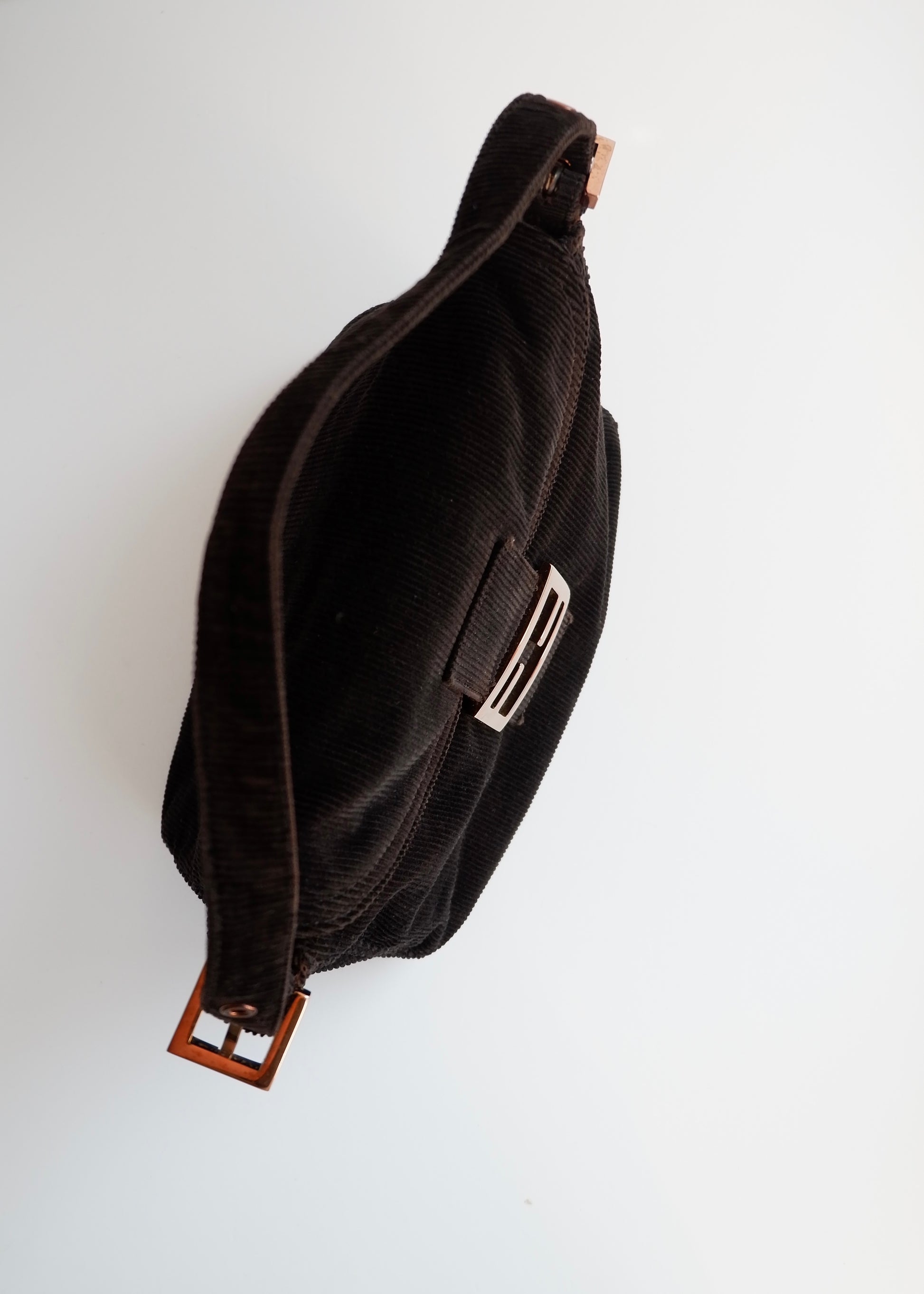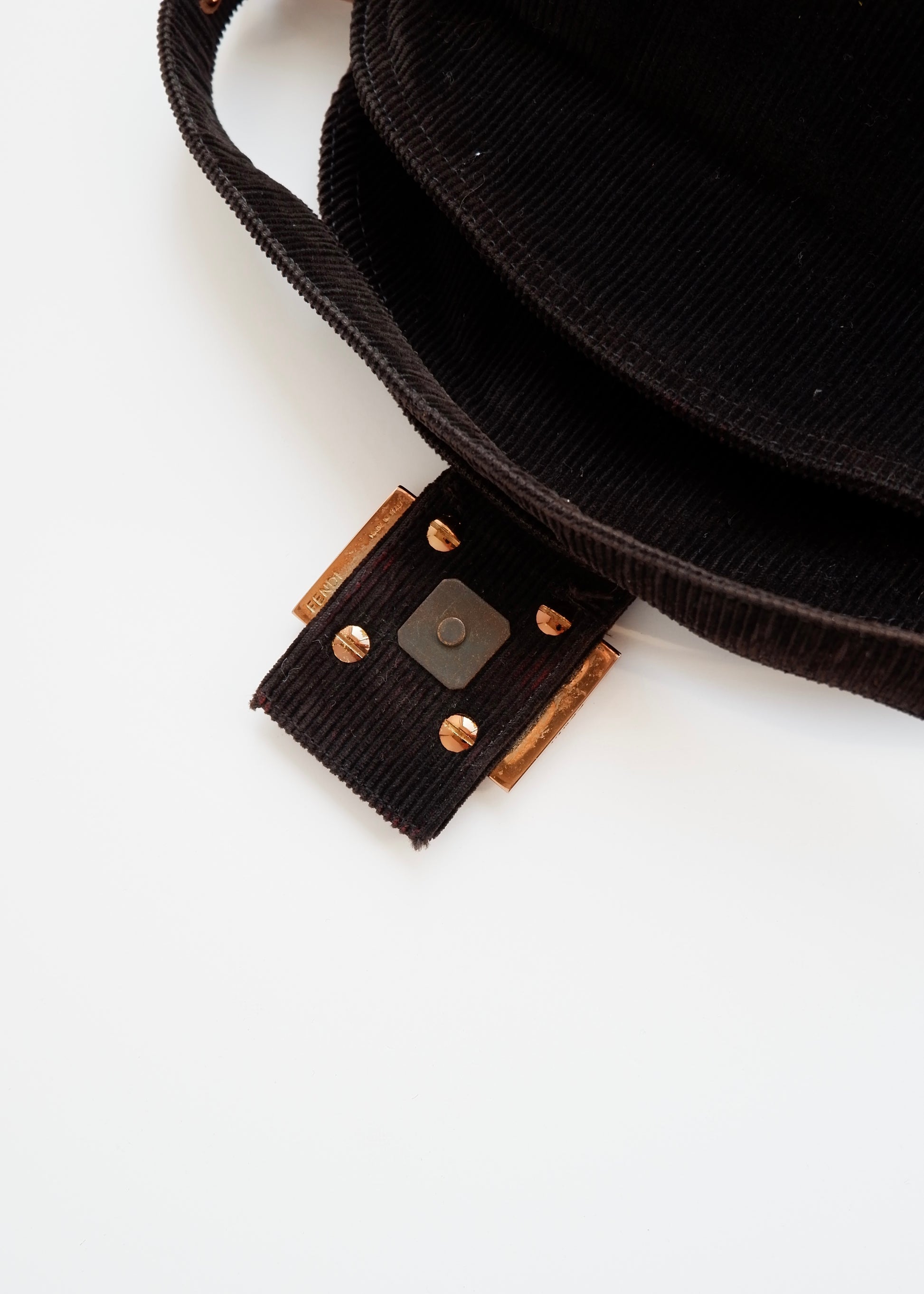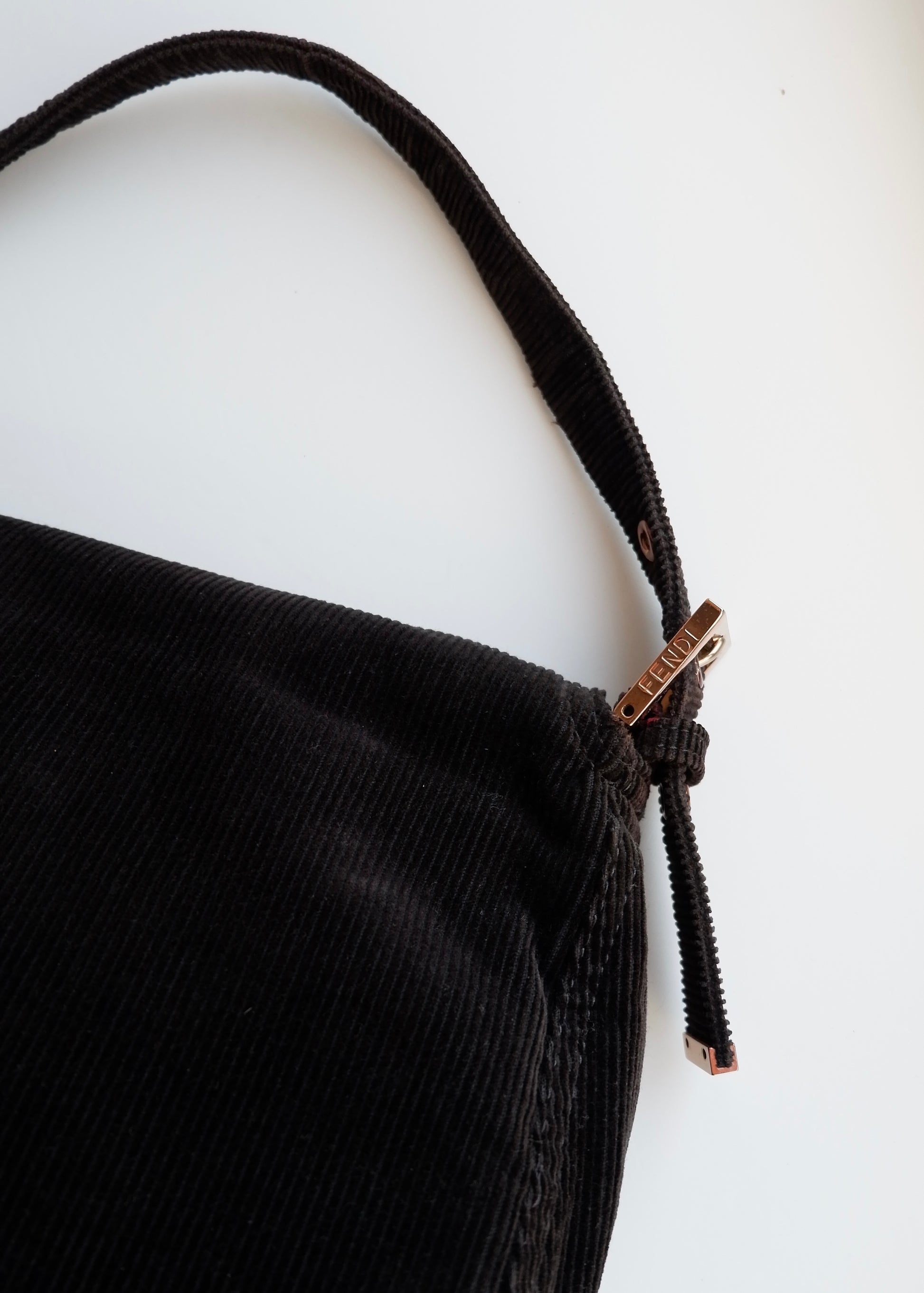 Authentic Preowned Fendi Black Corduroy Baguette Shoulder Bag
