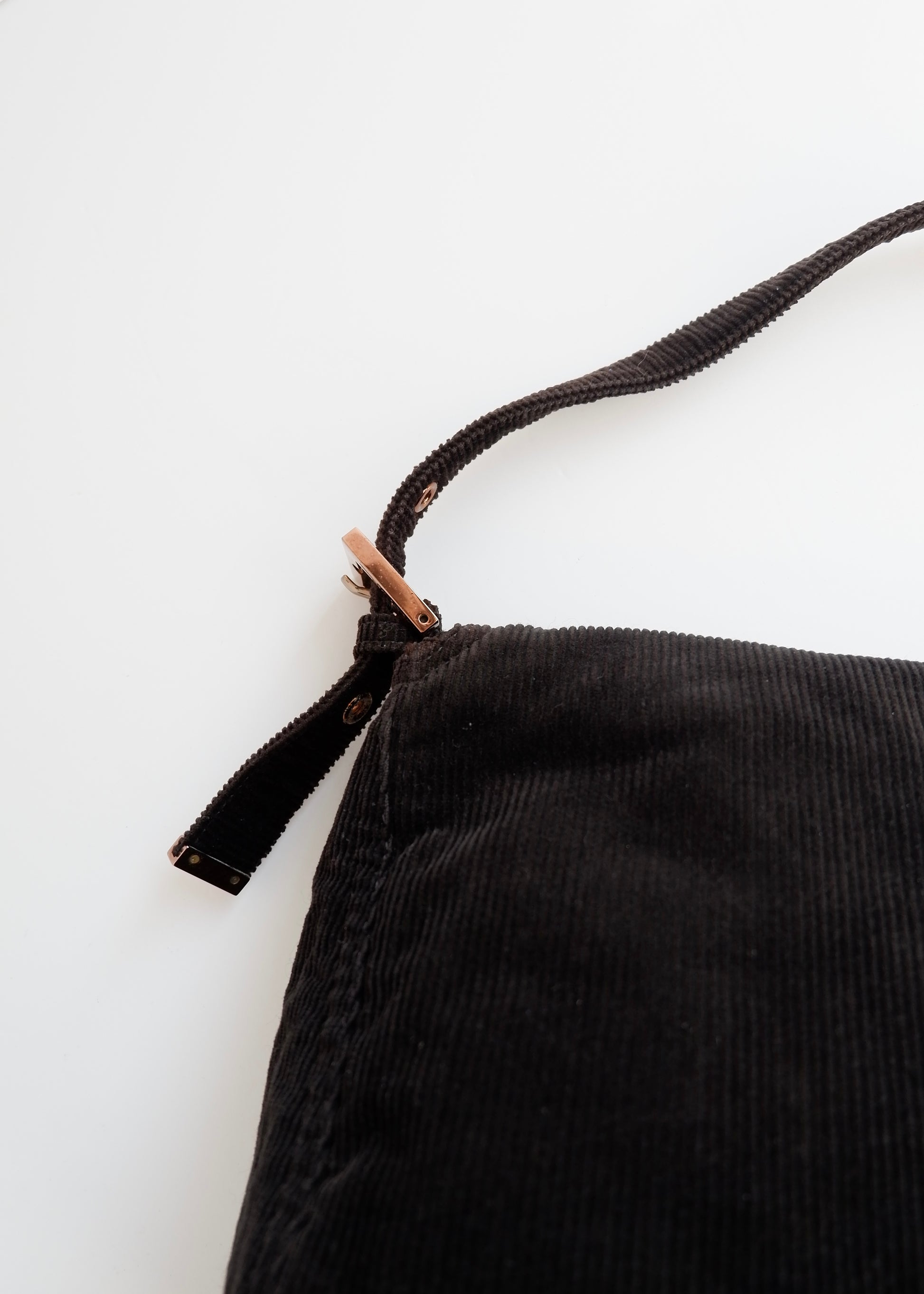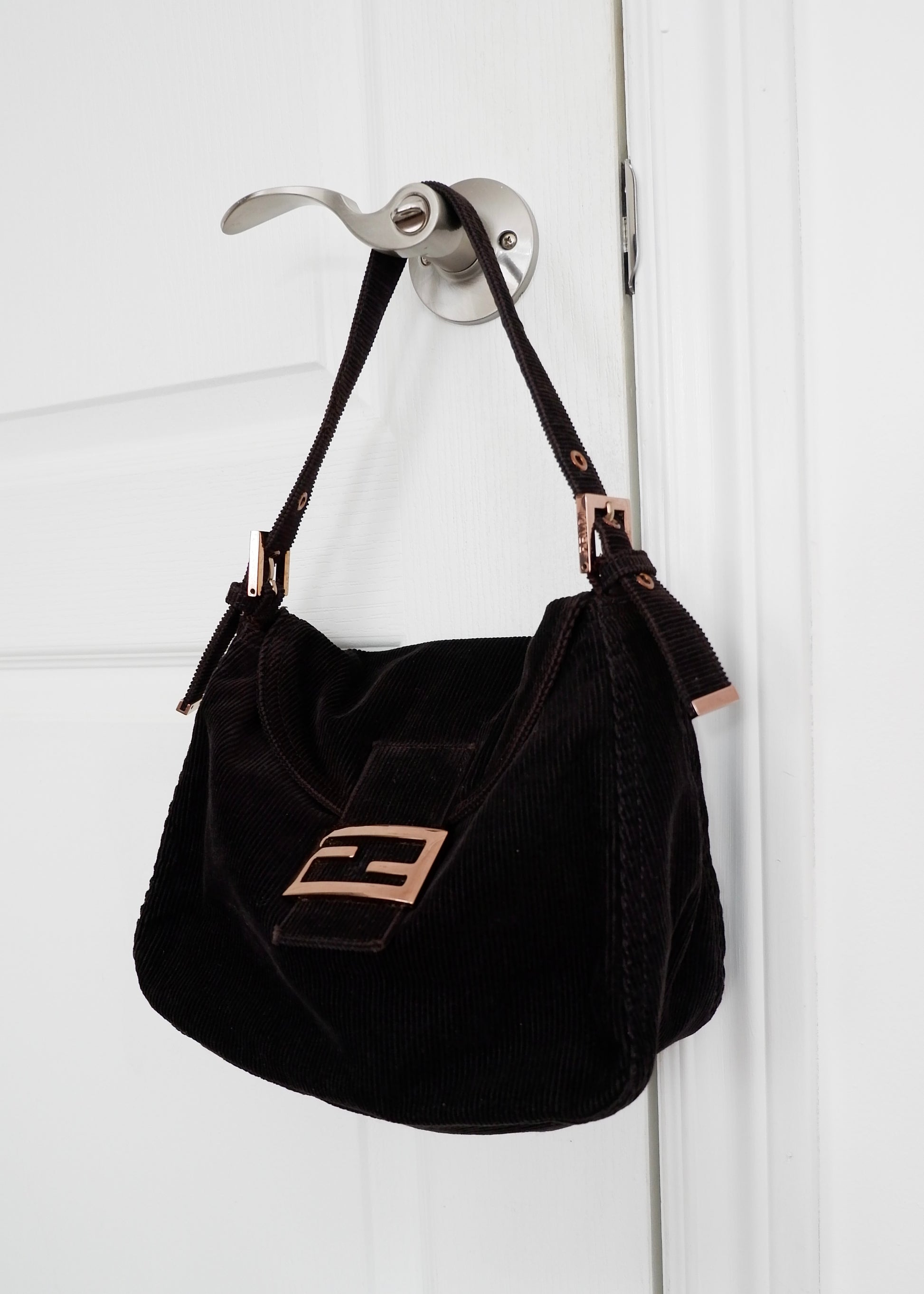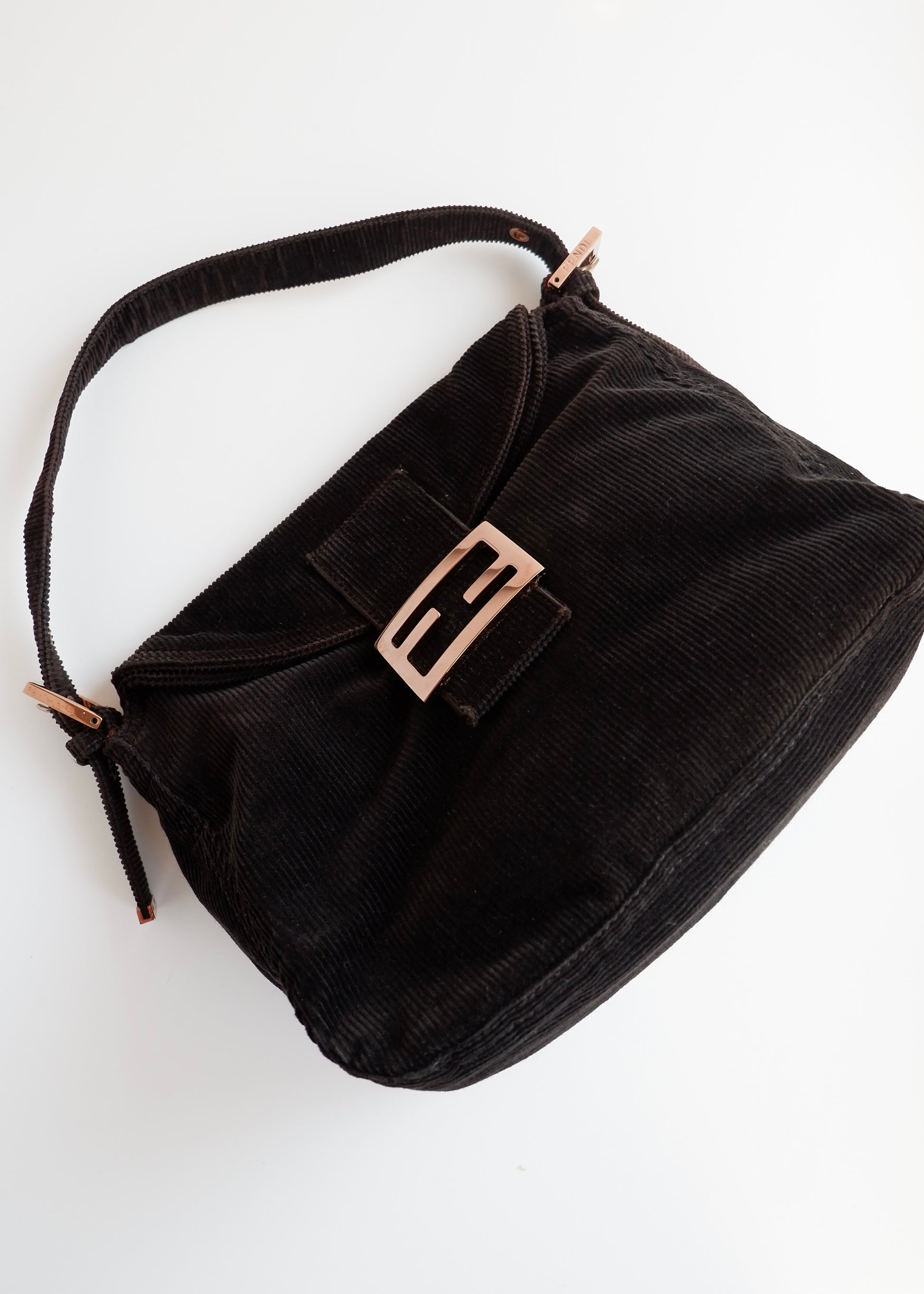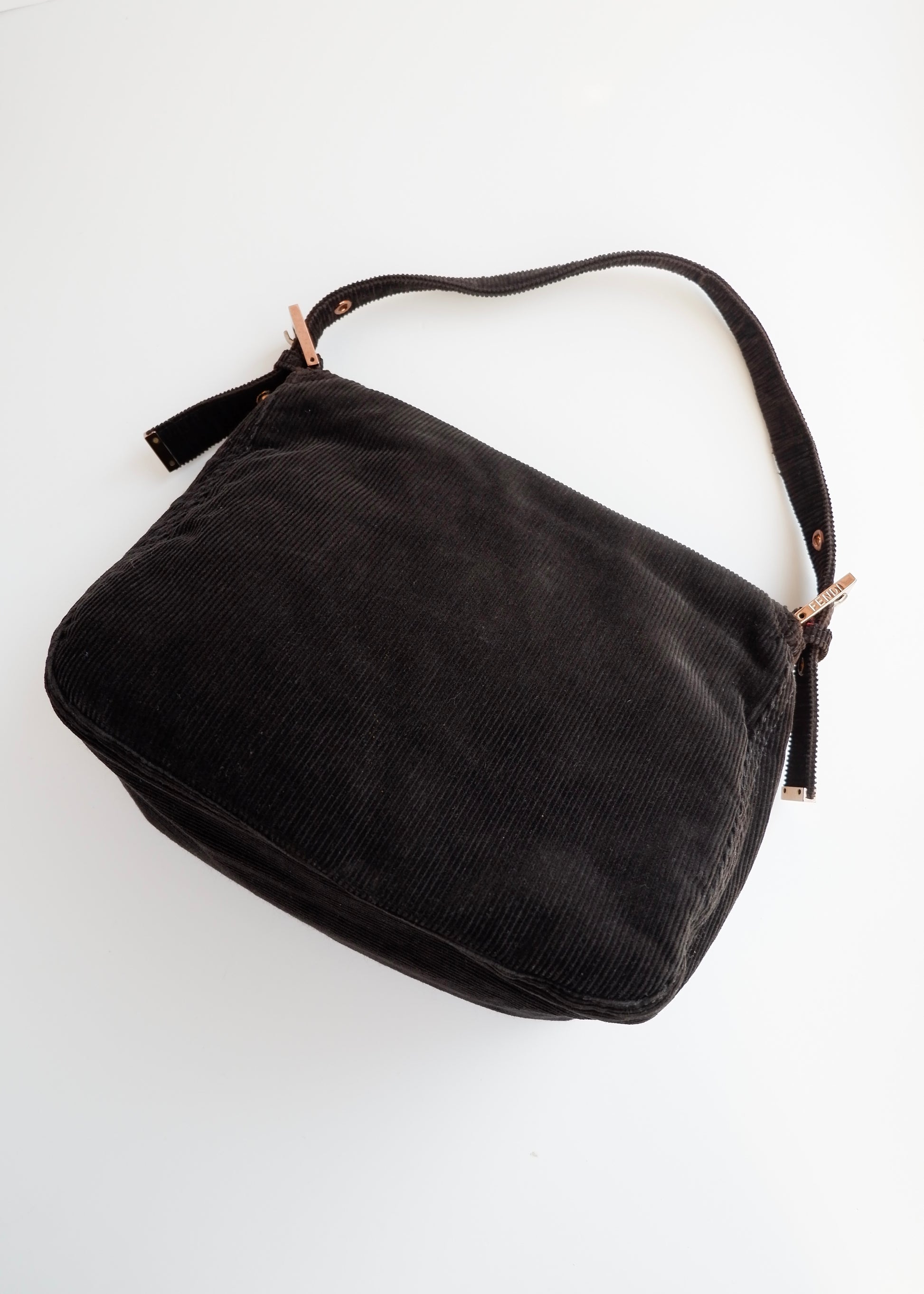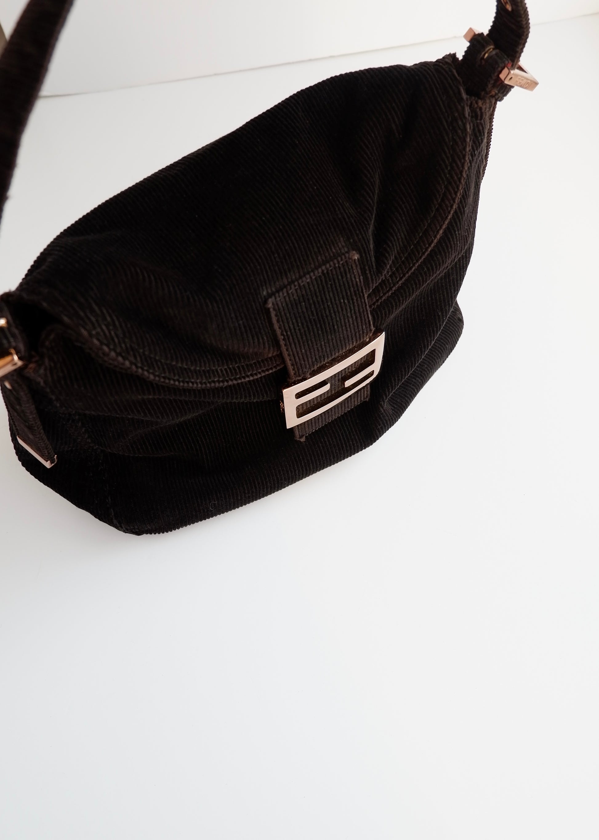 Authentic Preowned Fendi Black Corduroy Baguette Shoulder Bag