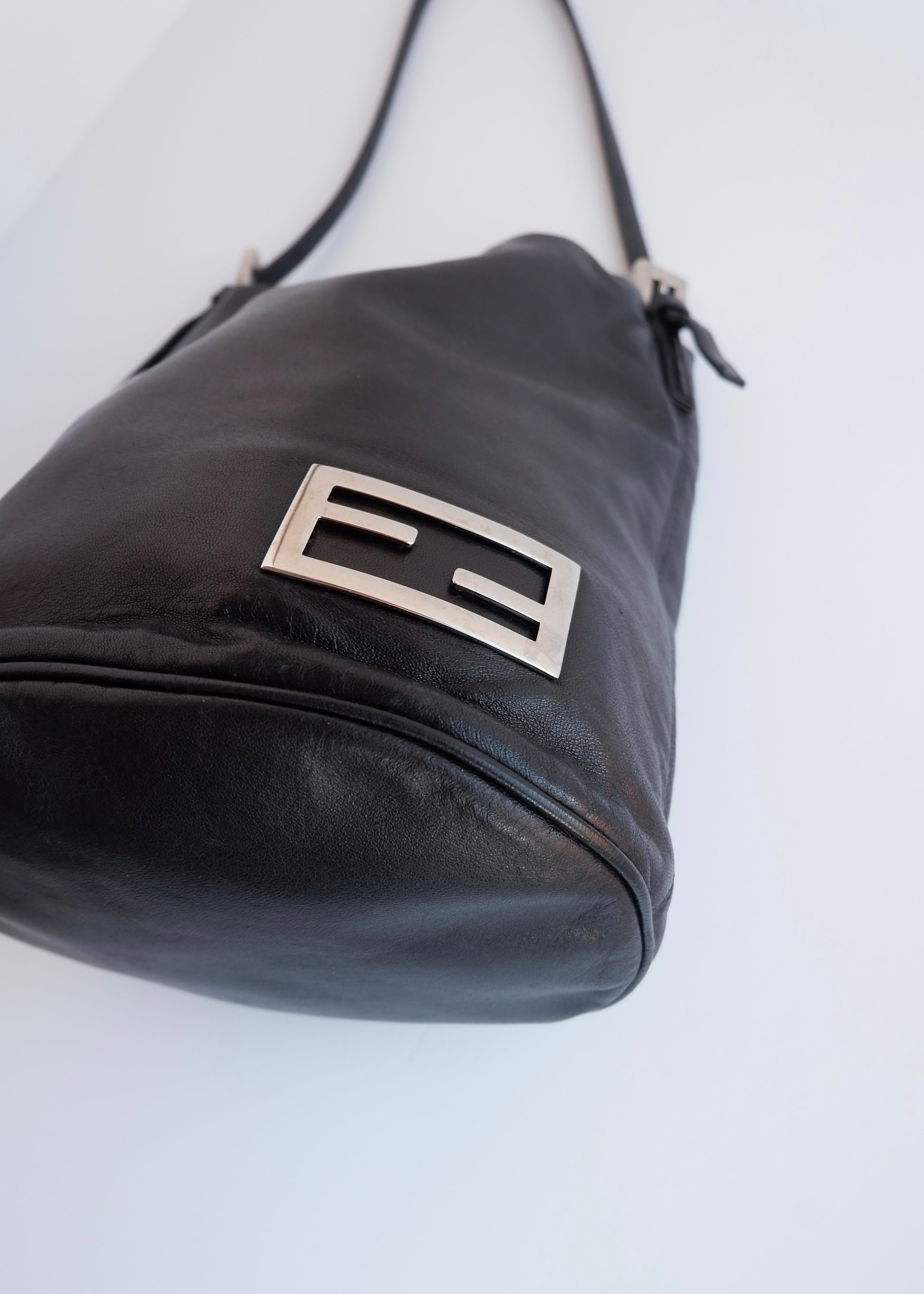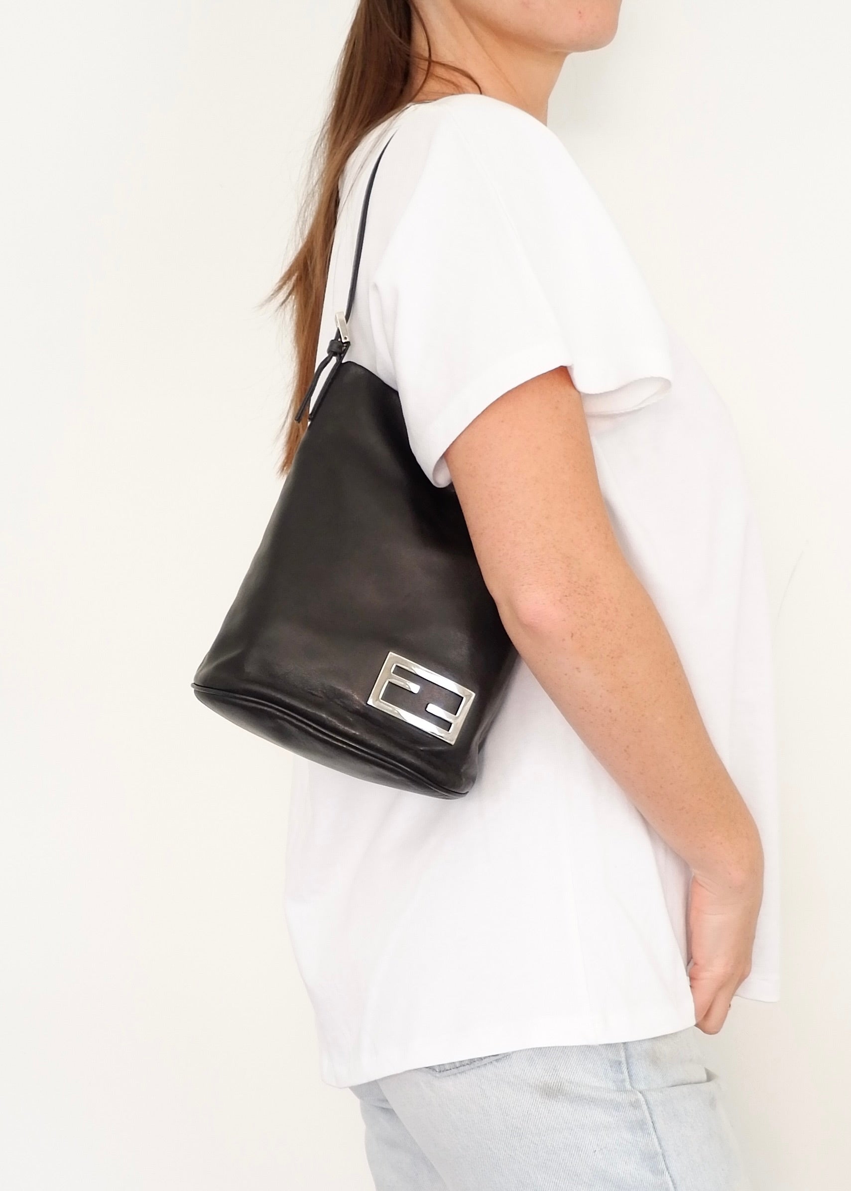 Authentic Preowned Fendi Black Leather FF Logo Bucket Shoulder Bag