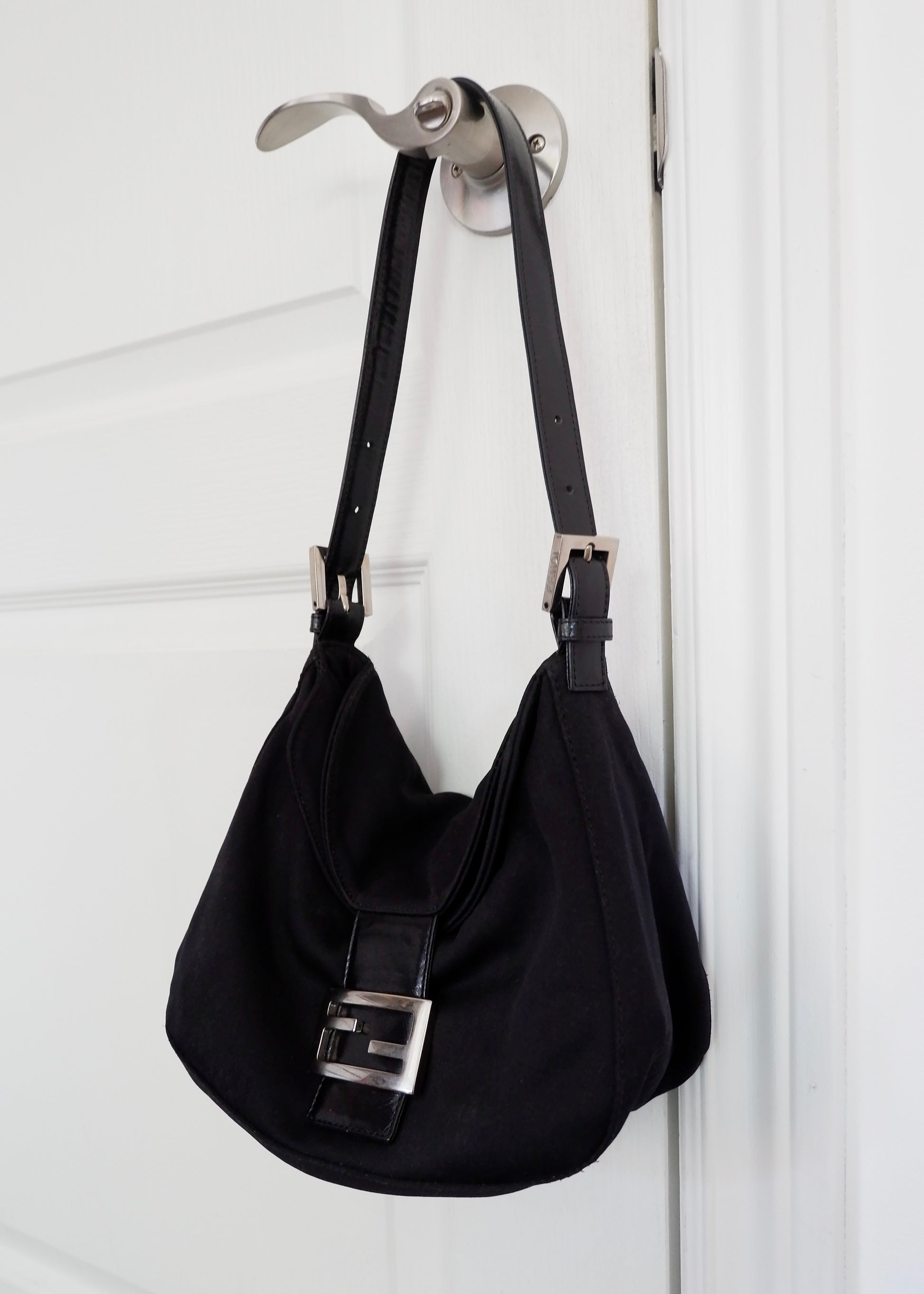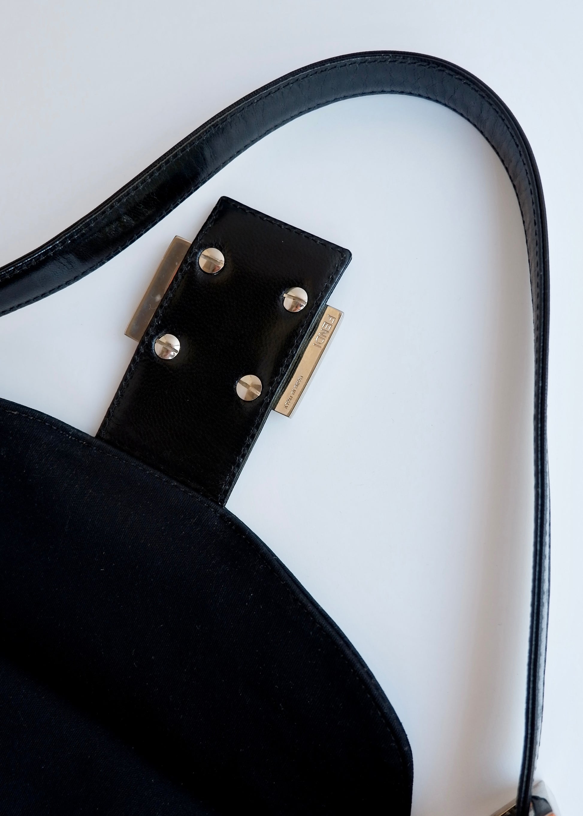 Authentic Preowned Fendi Black Fabric Baguette Shoulder Bag