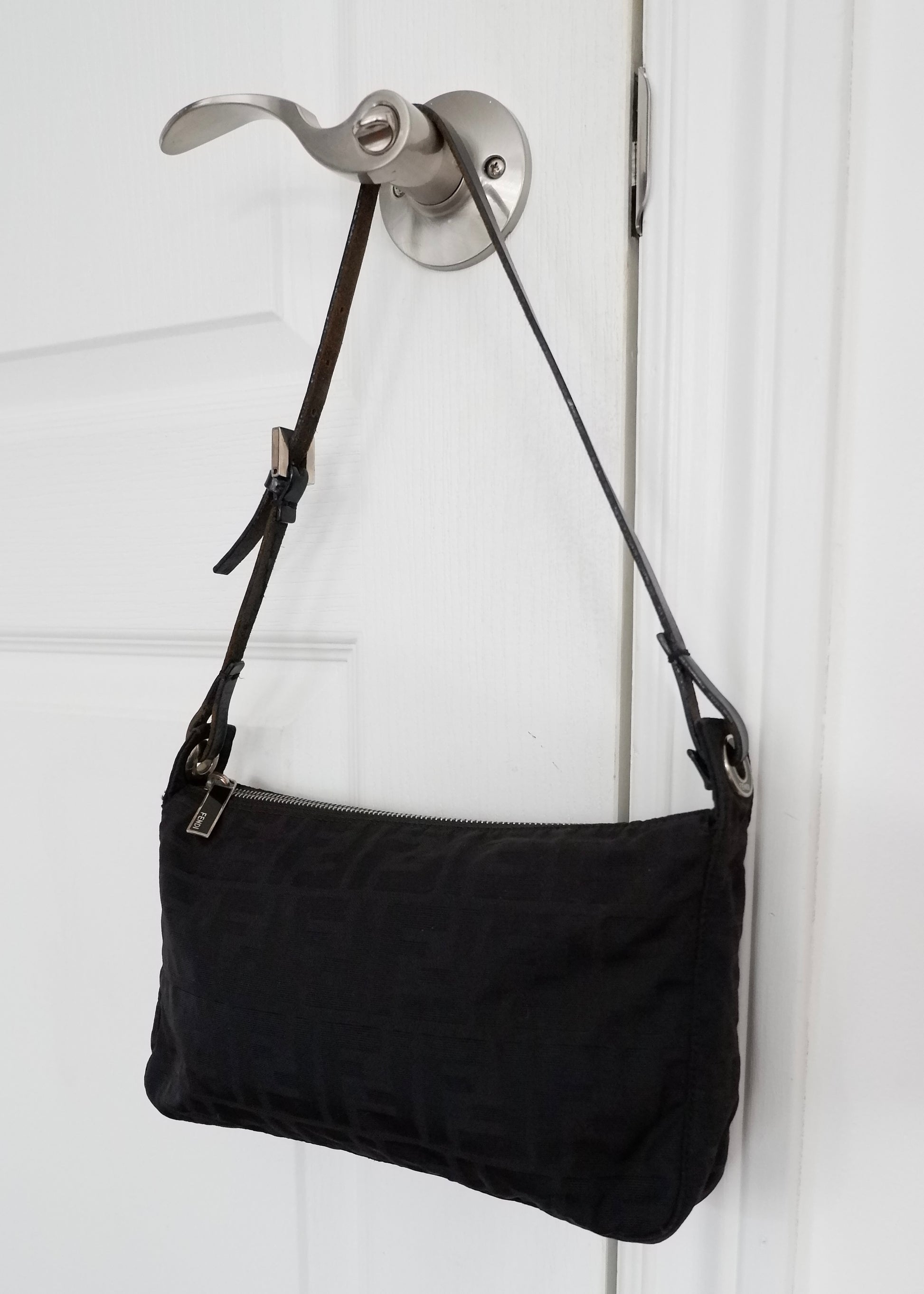 Authentic Preowned Fendi Black Zucca Canvas Shoulder Bag