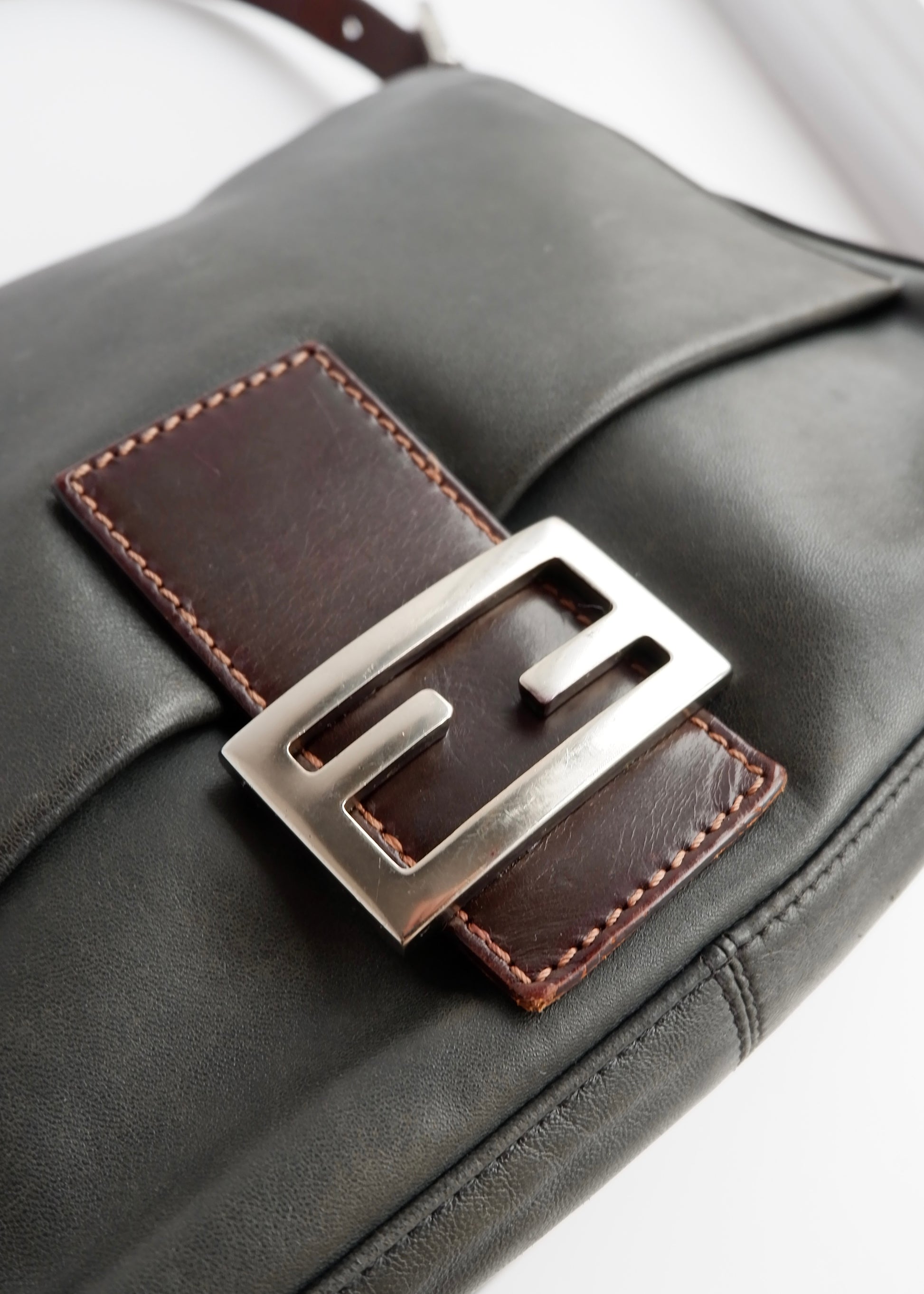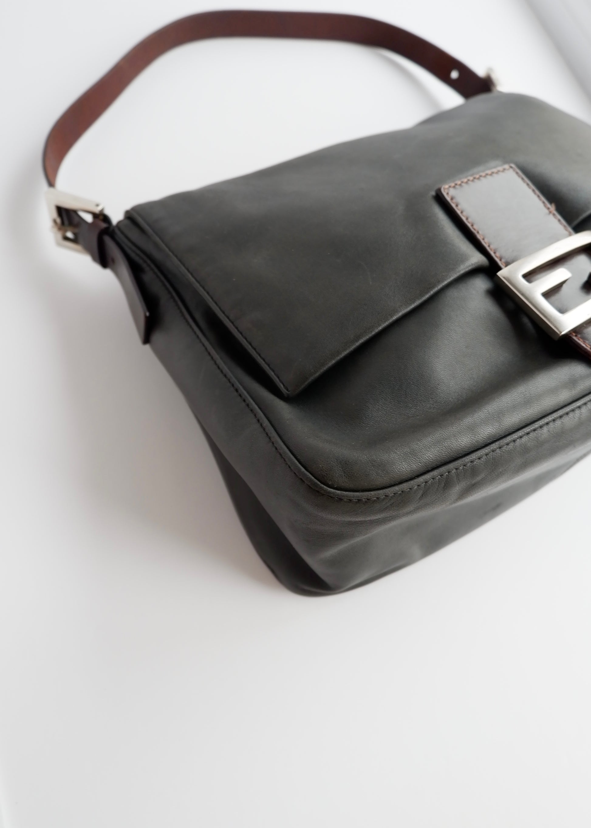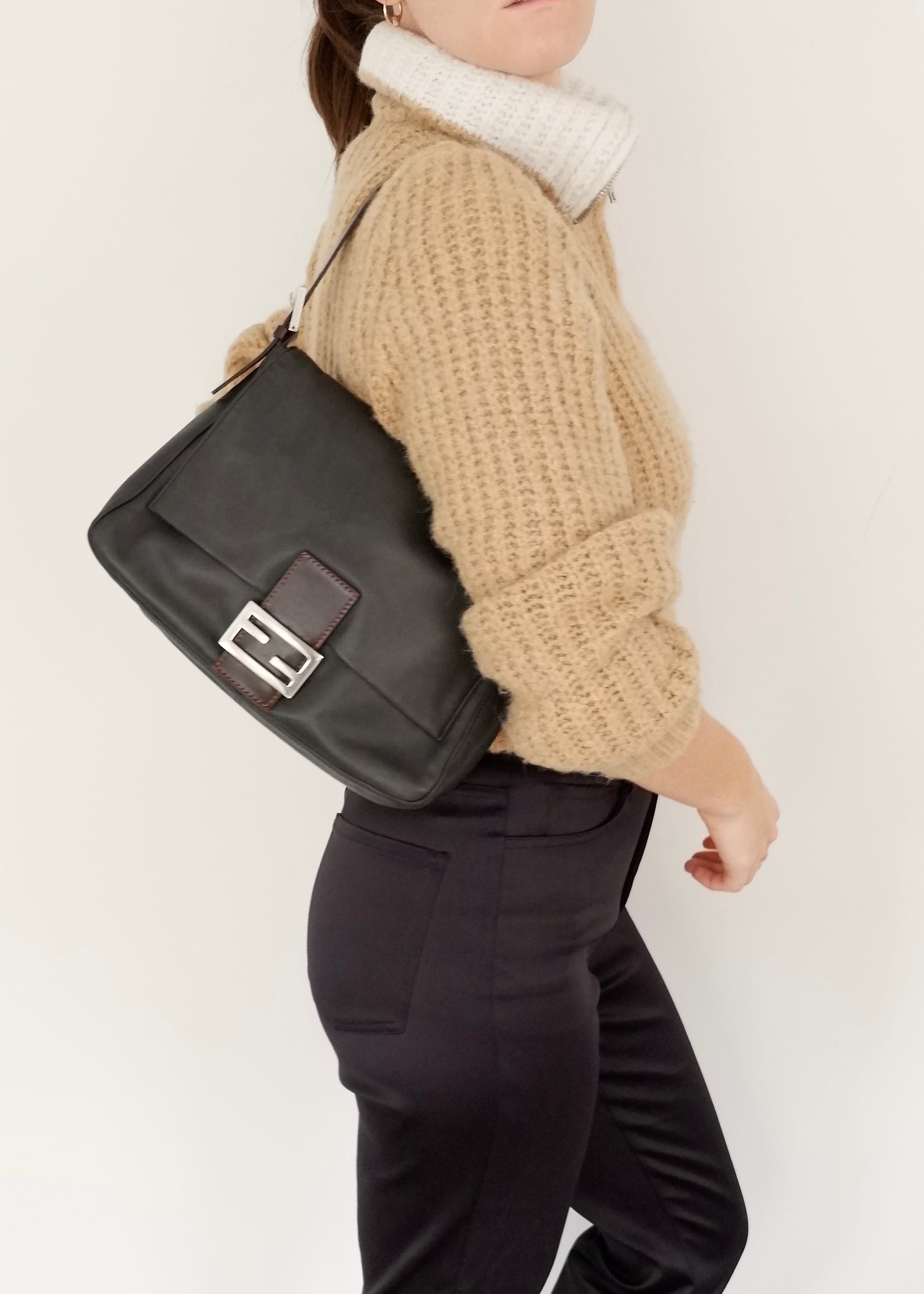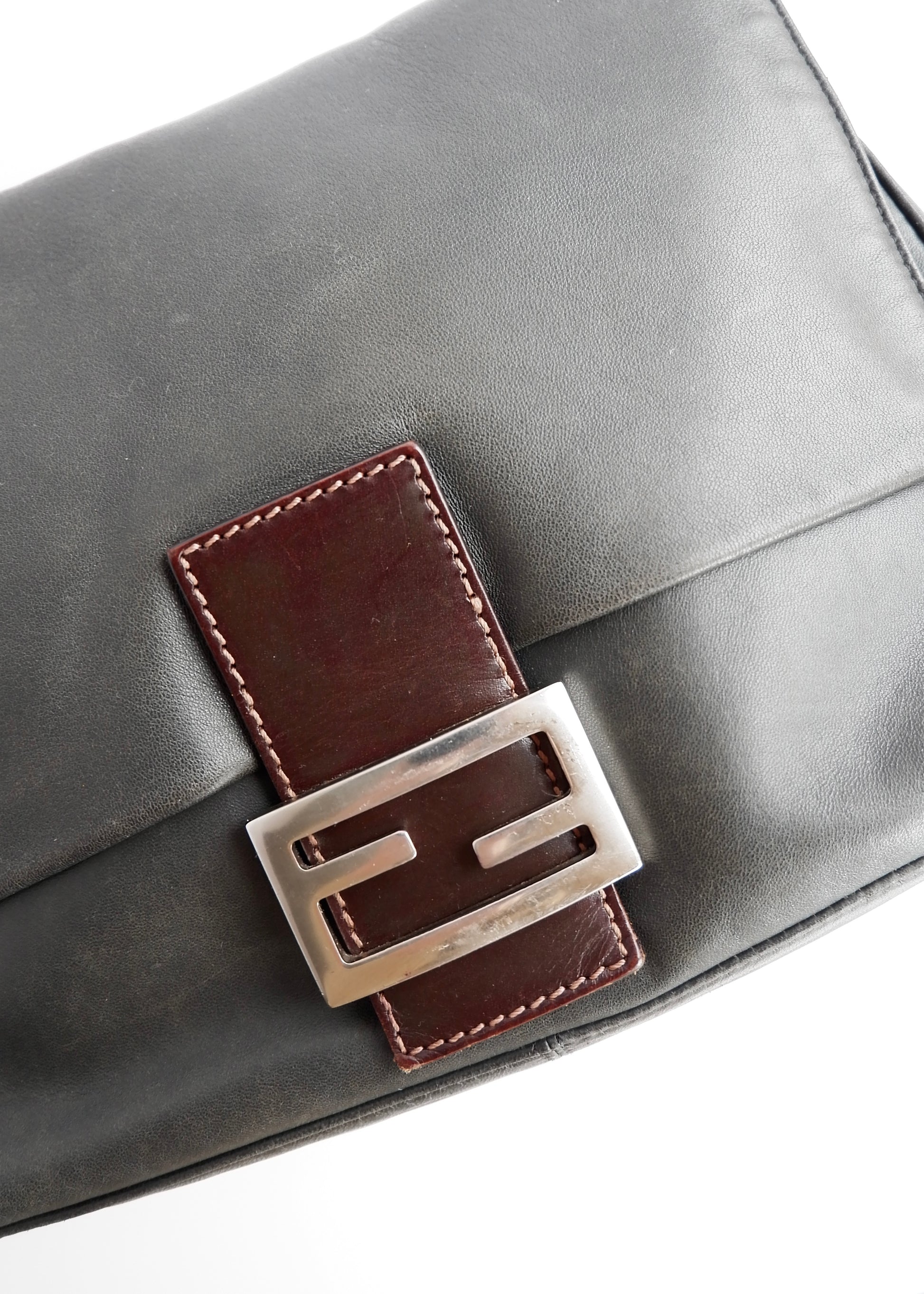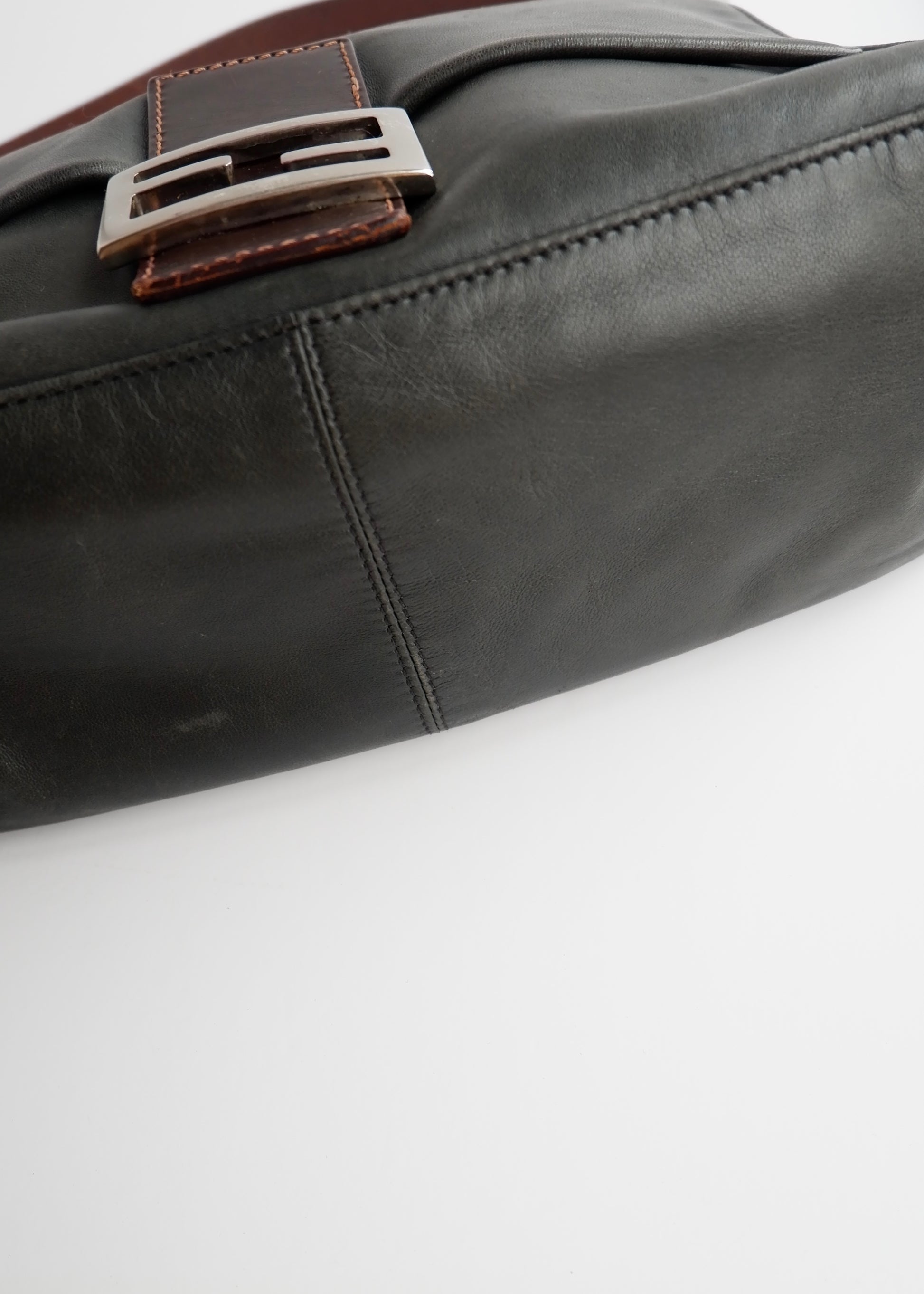 Authentic Preowned Fendi Black/Brown Leather Mamma Baguette Shoulder Bag