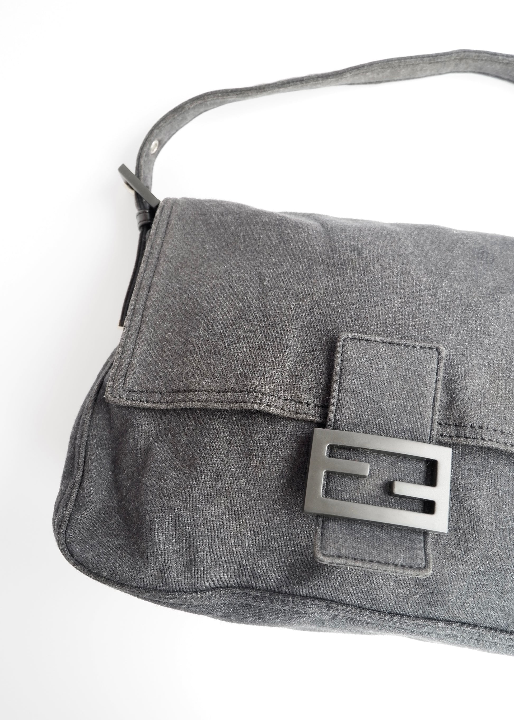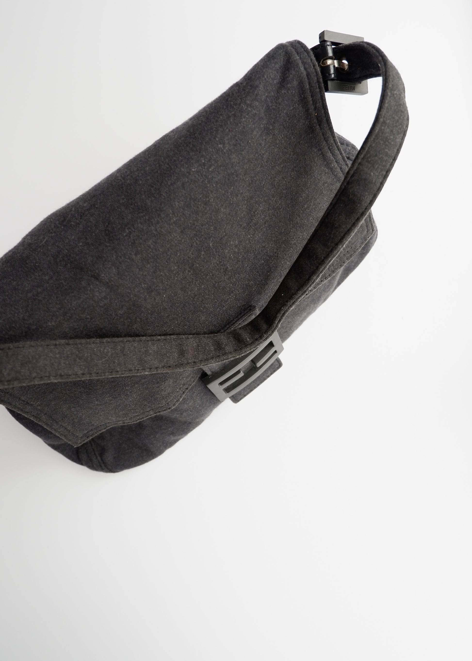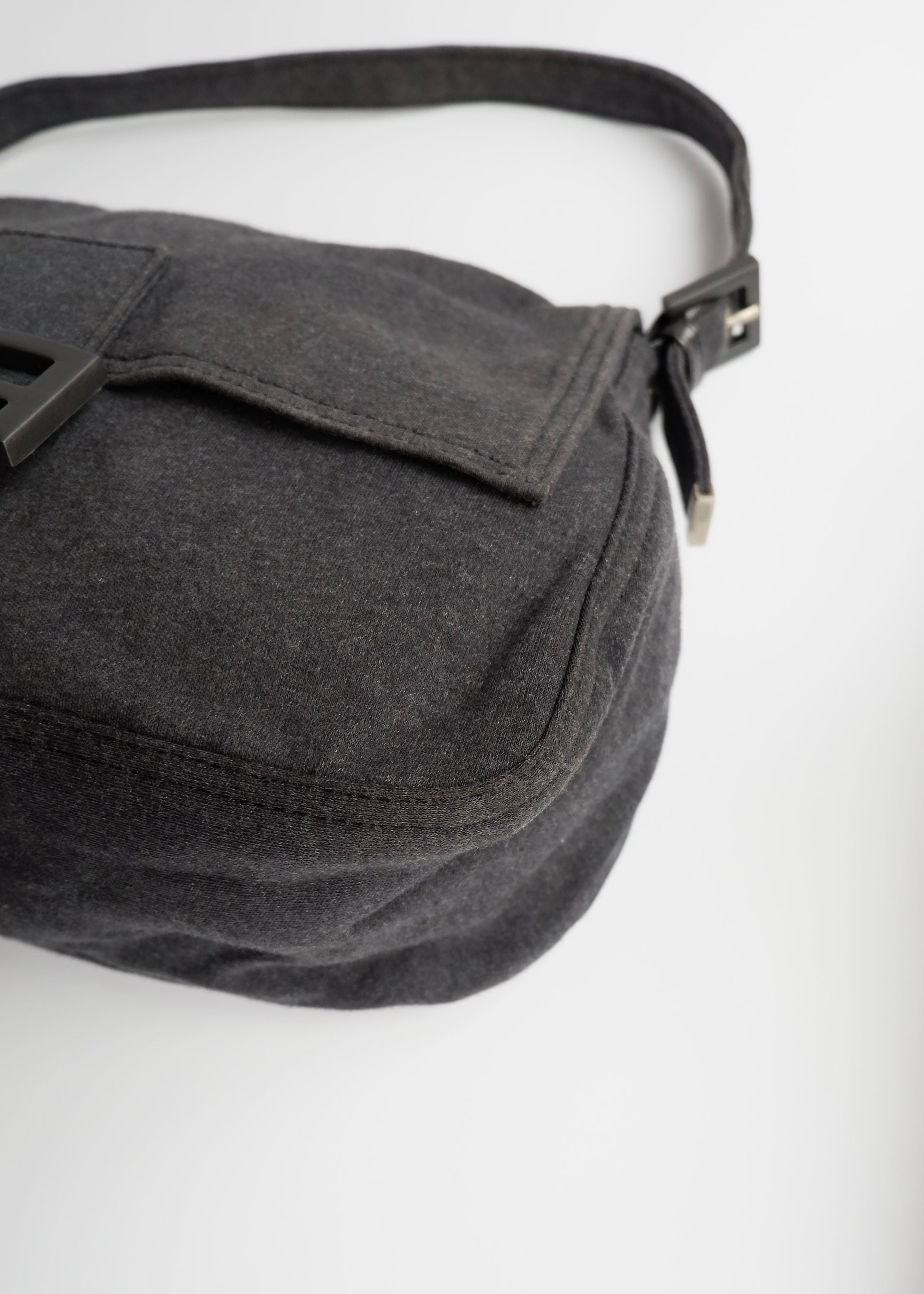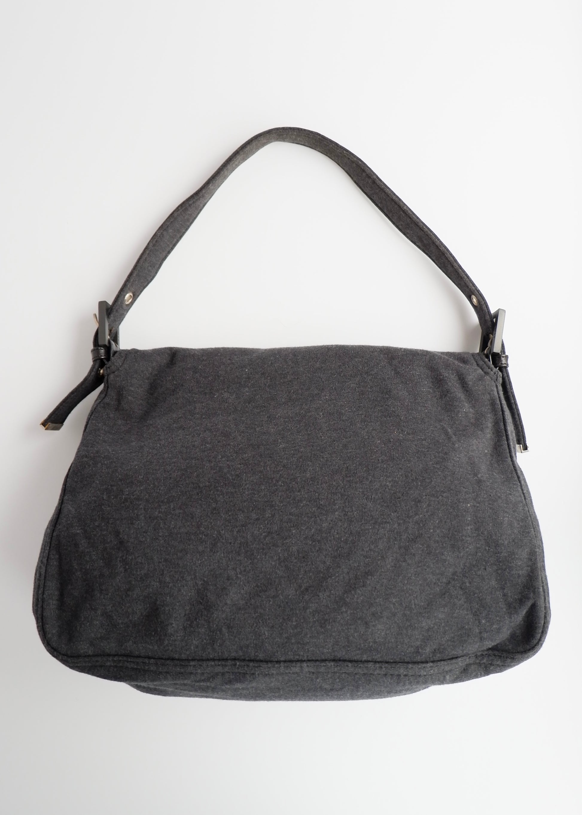 Authentic Preowned Fendi Dark Grey Cotton Mamma Baguette Shoulder Bag