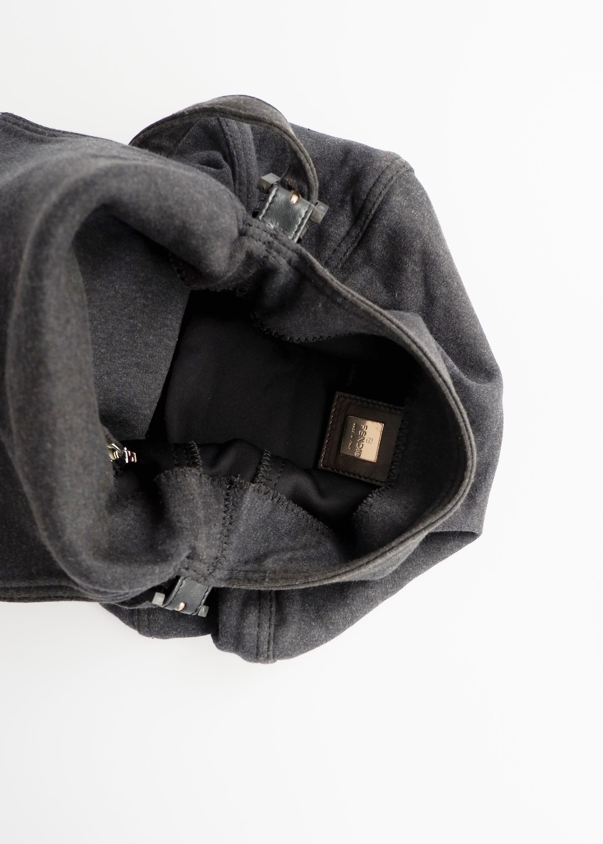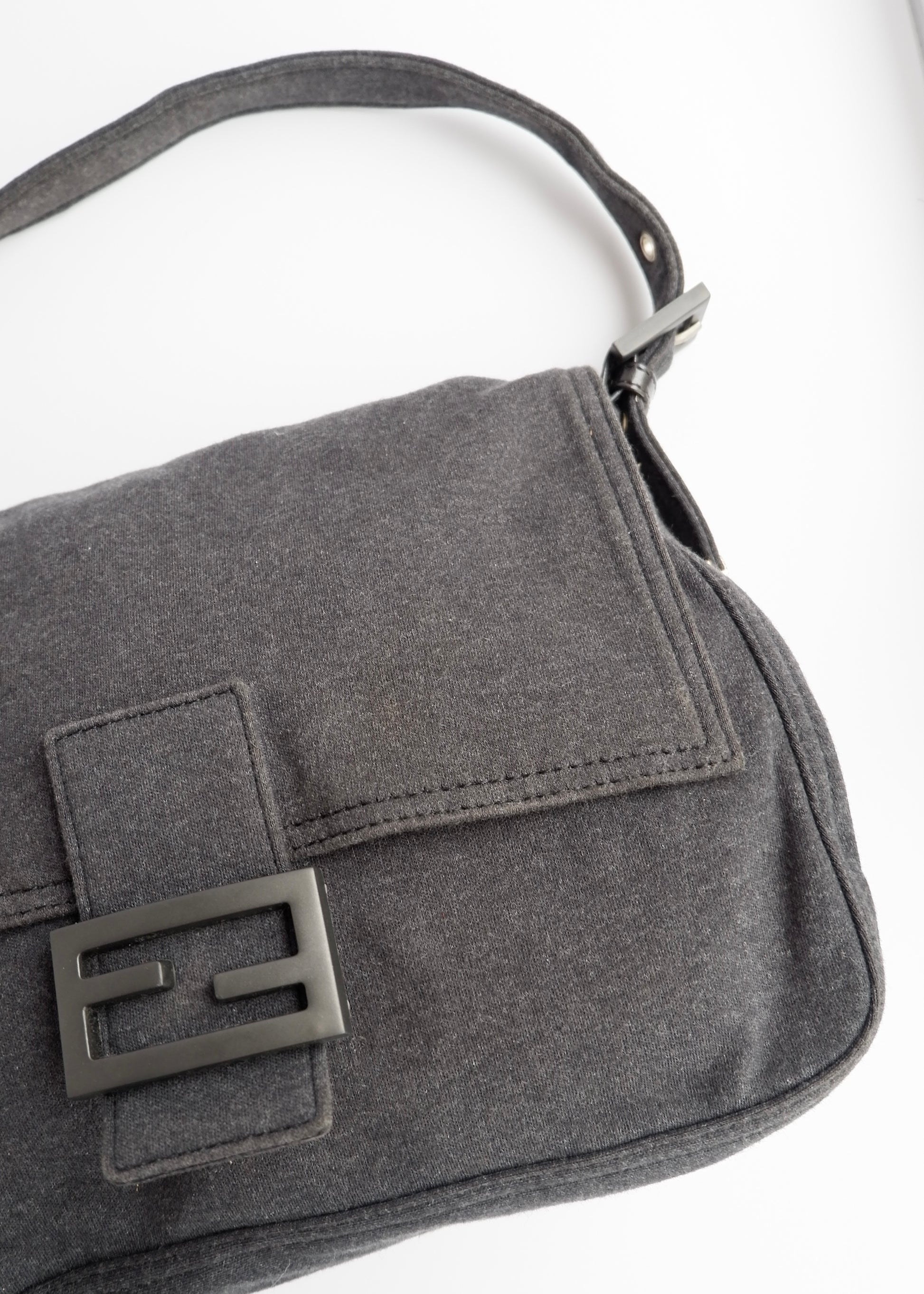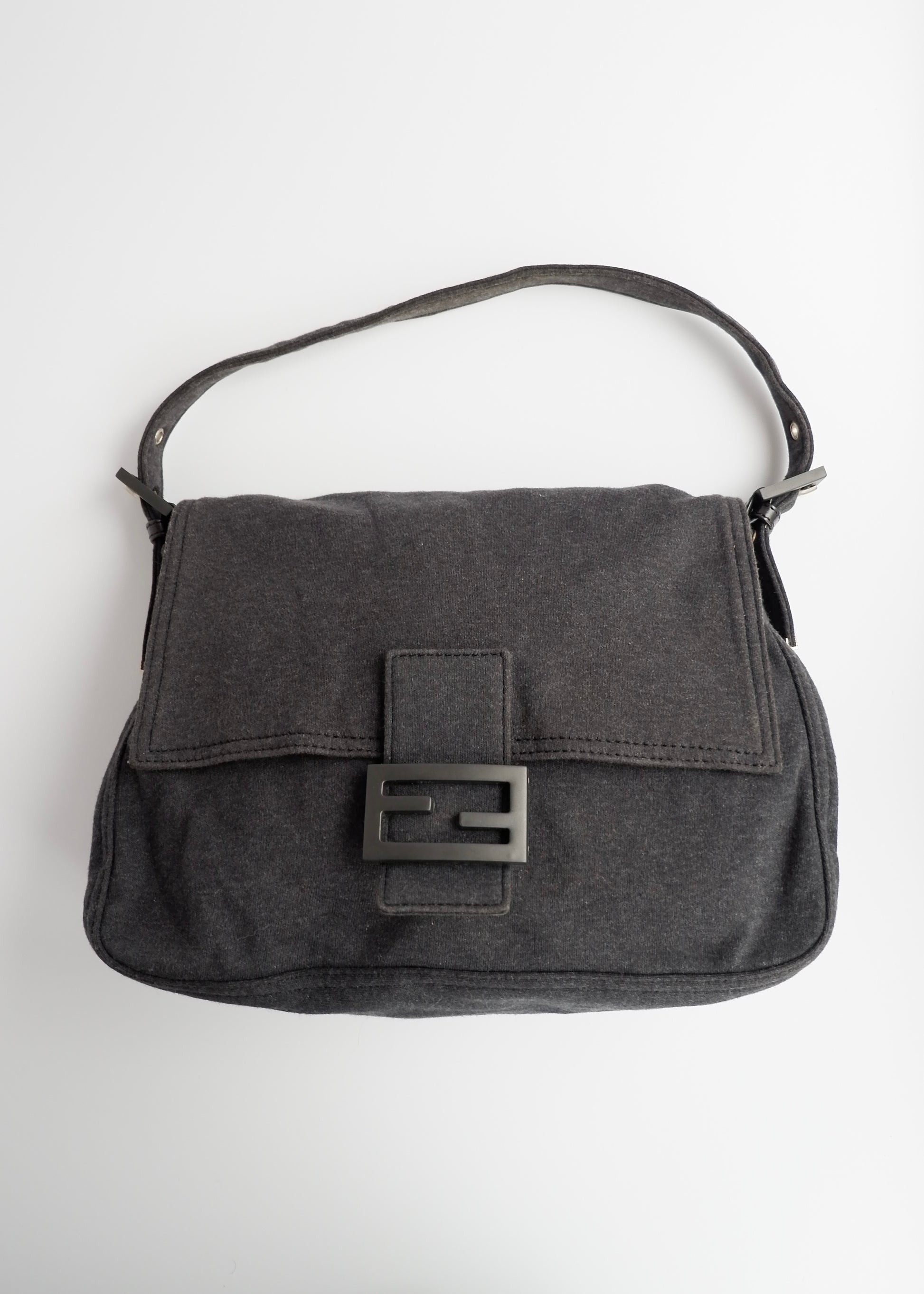 Authentic Preowned Fendi Dark Grey Cotton Mamma Baguette Shoulder Bag