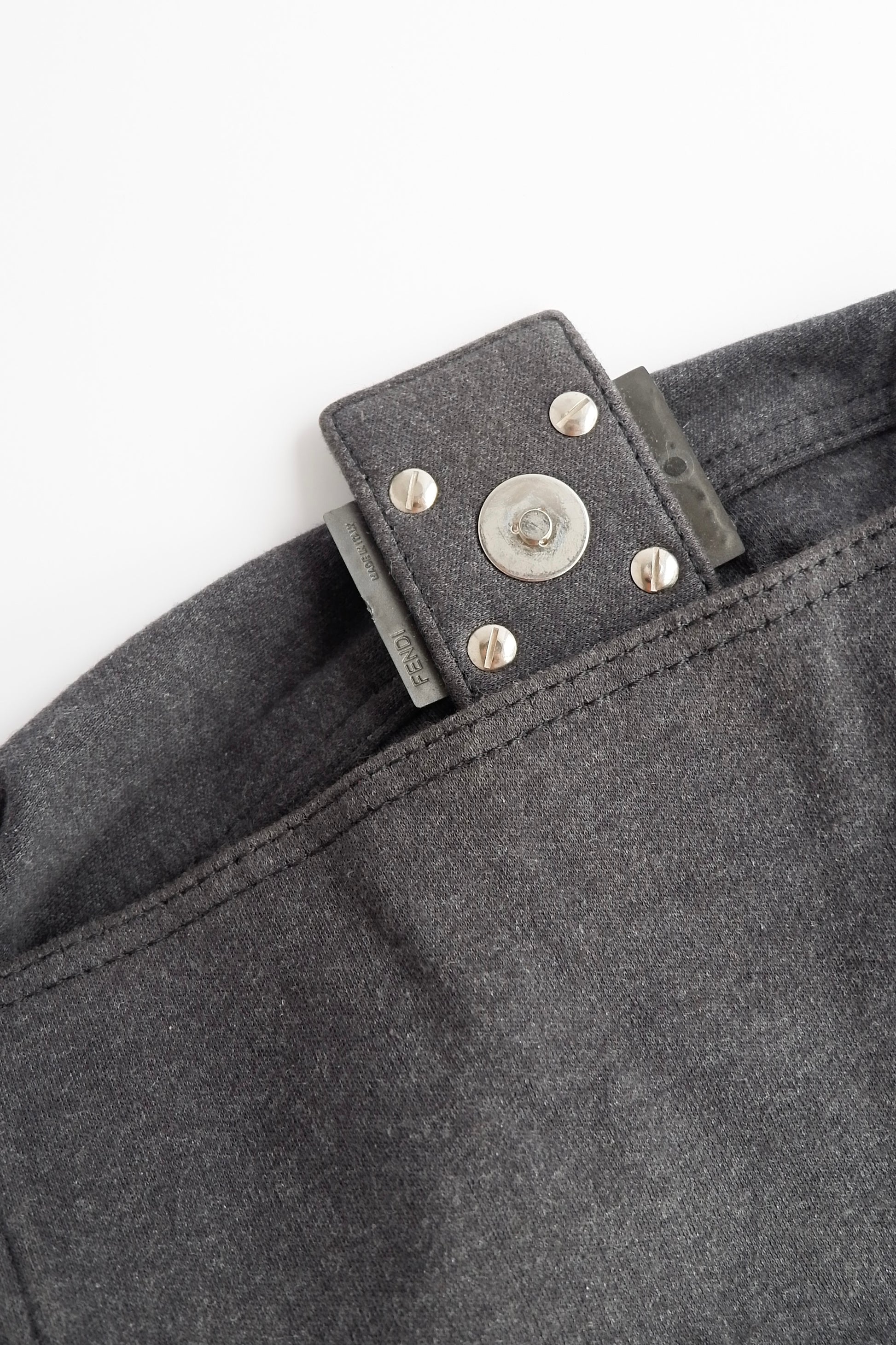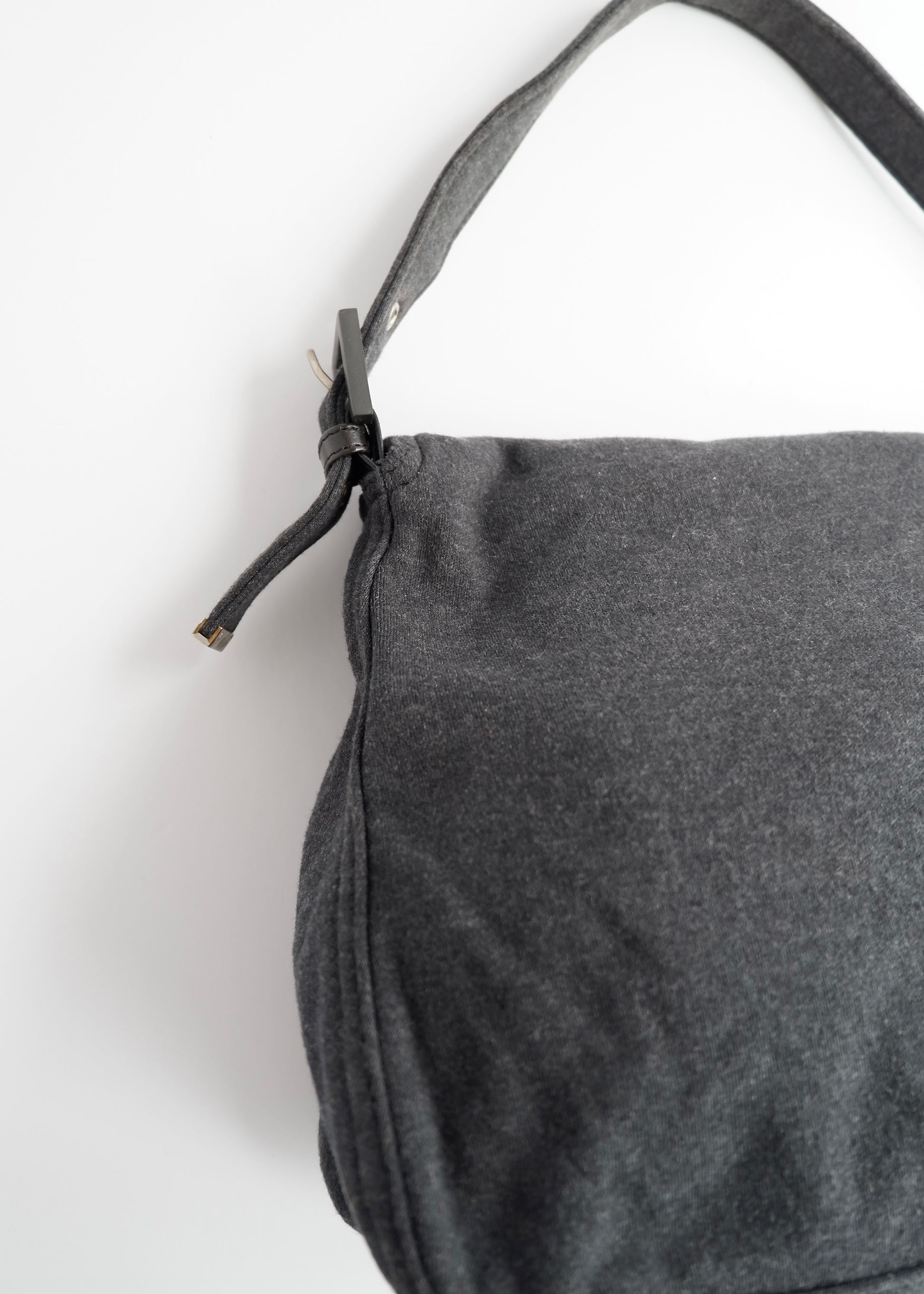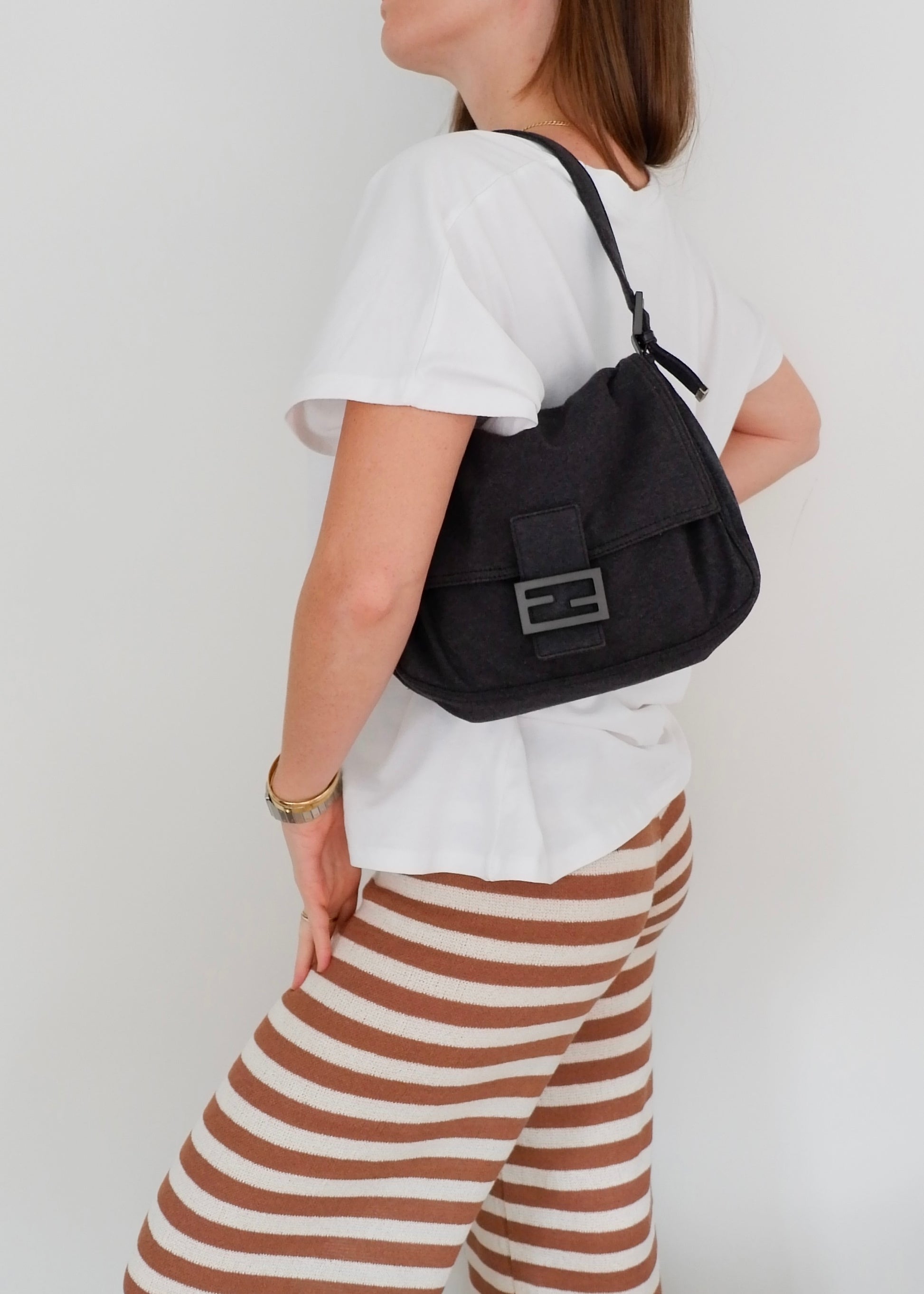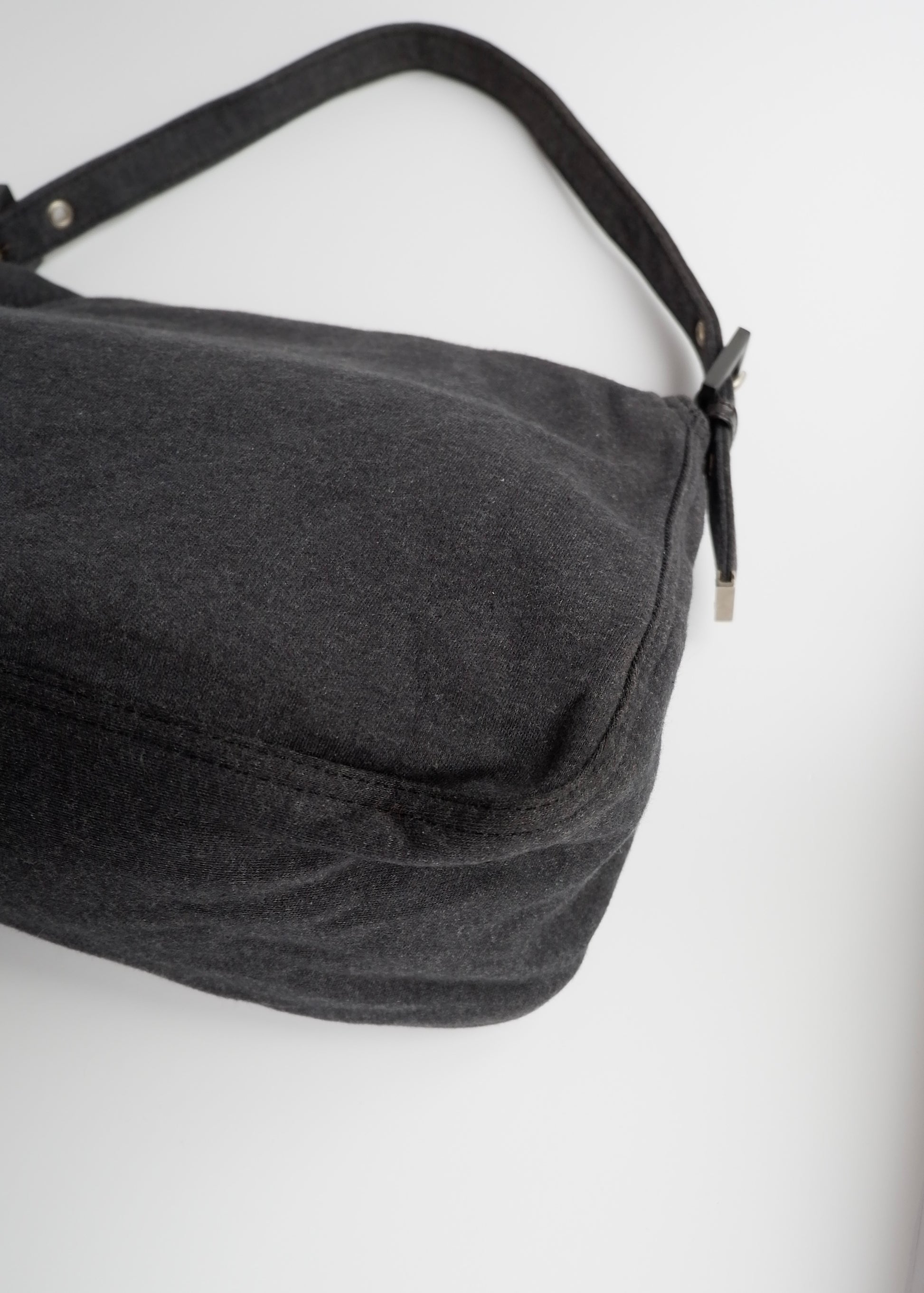 Authentic Preowned Fendi Dark Grey Cotton Mamma Baguette Shoulder Bag