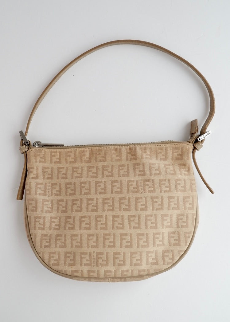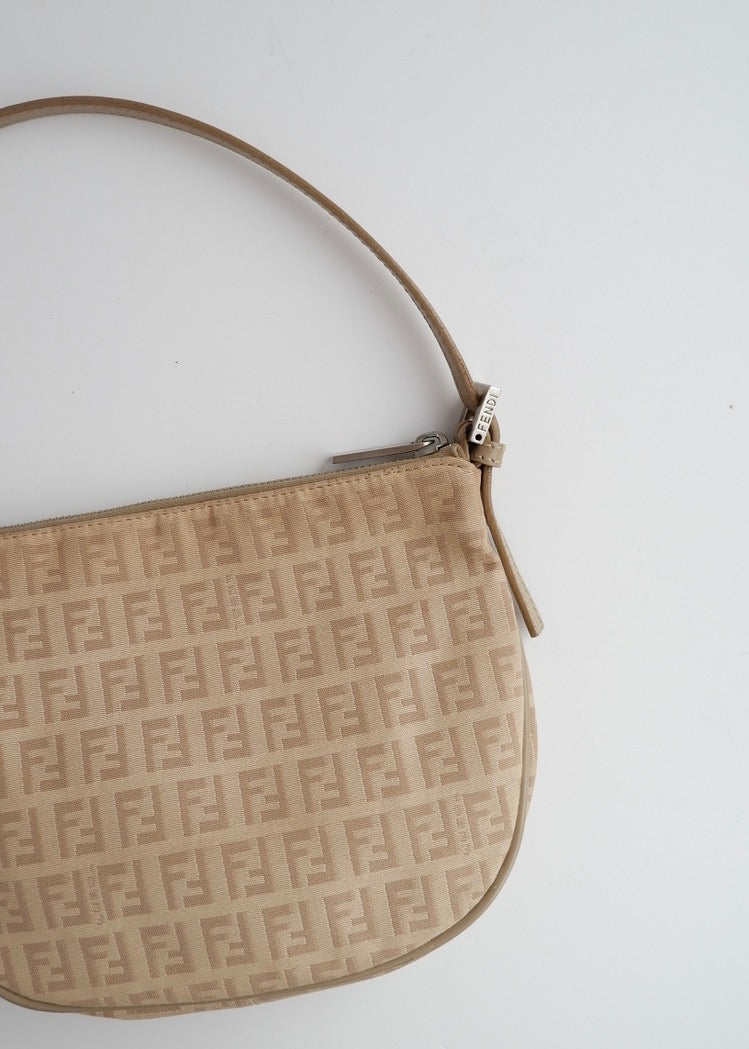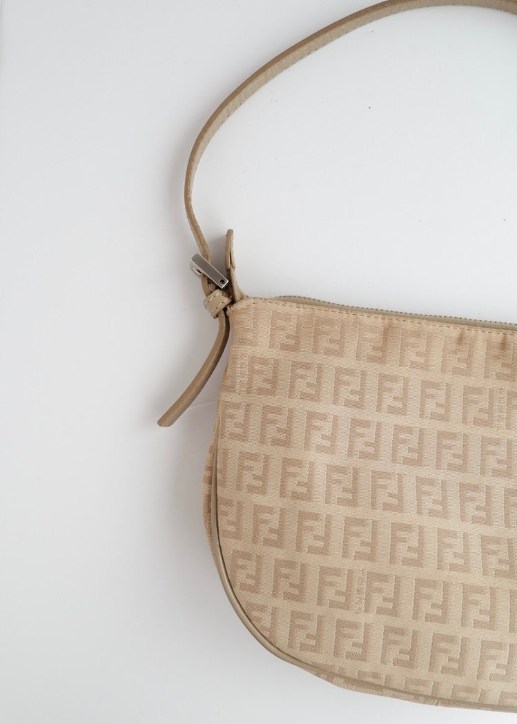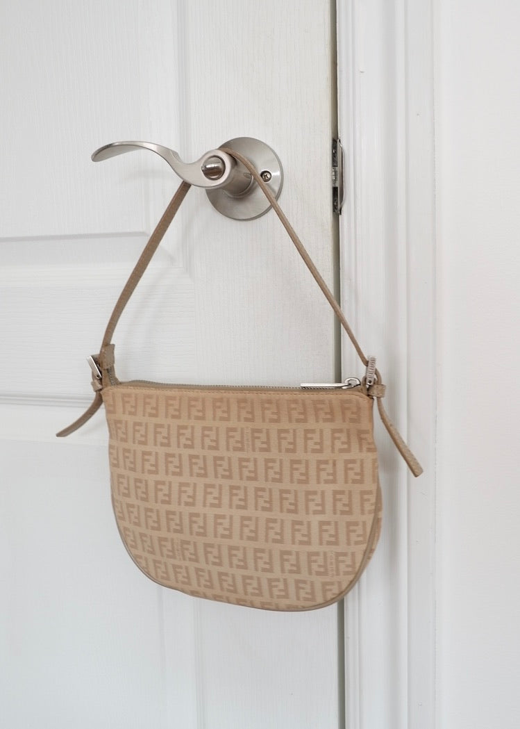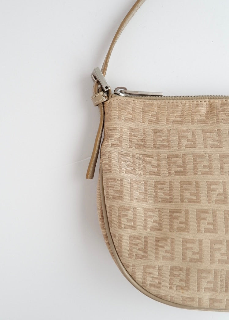 Authentic Preowned Fendi Light Beige Zucchino Small Shoulder Bag