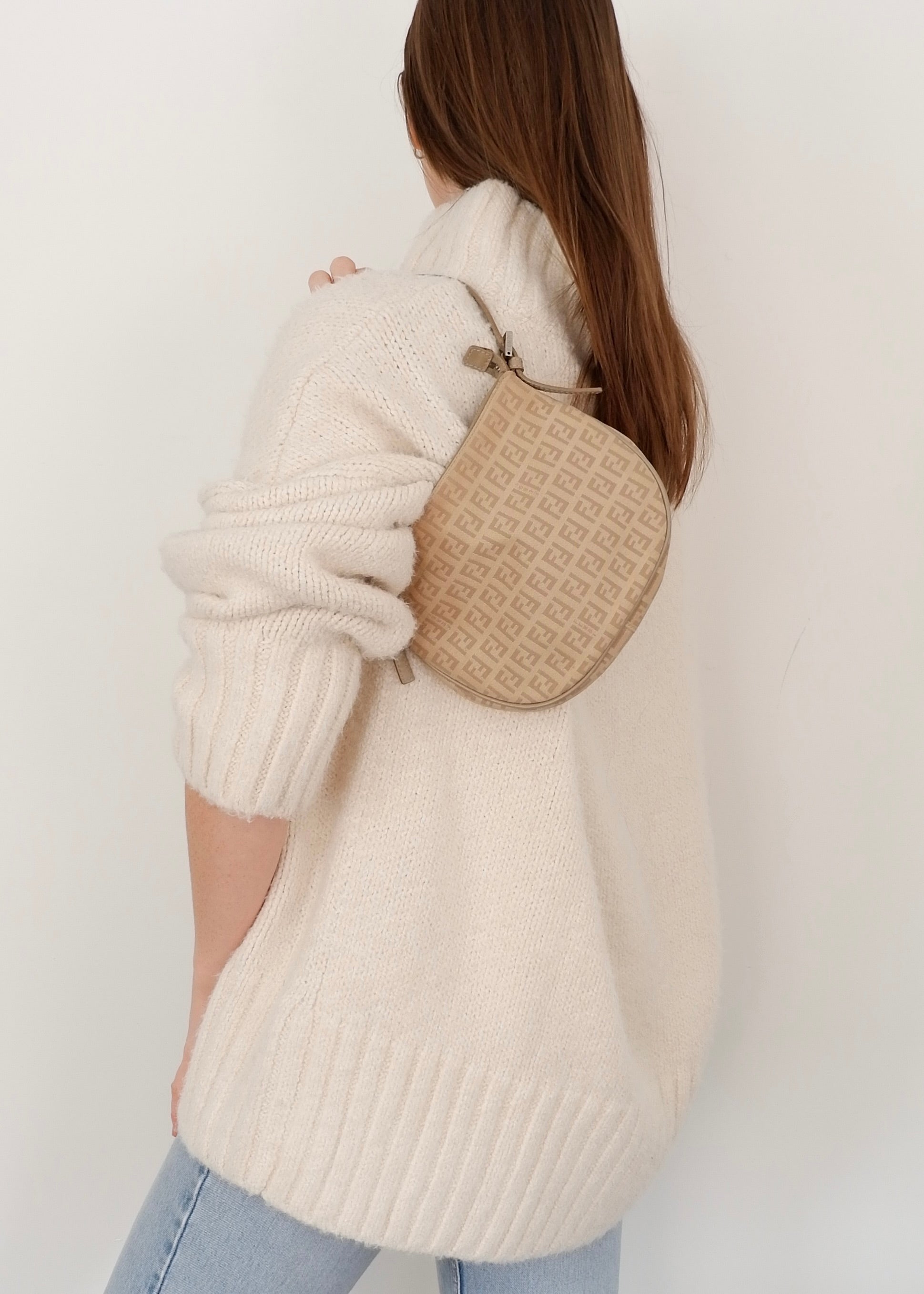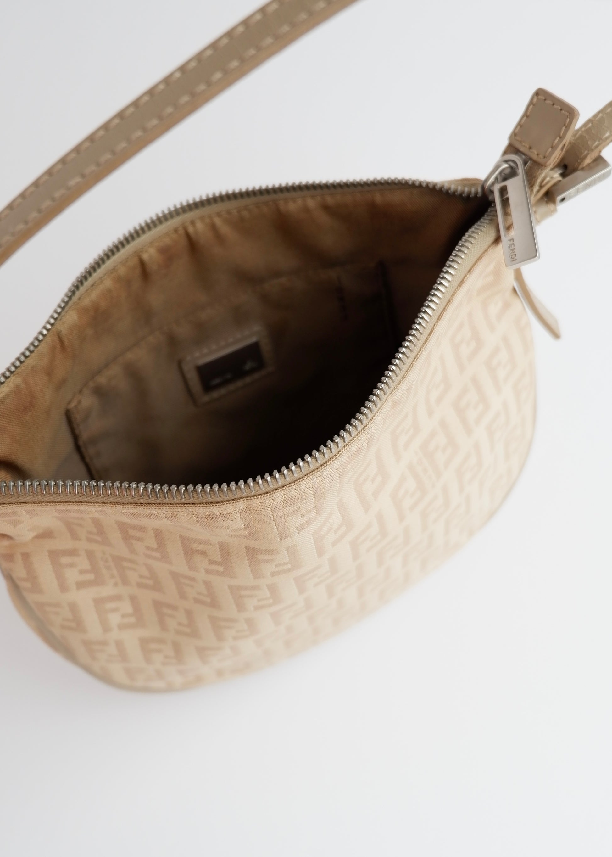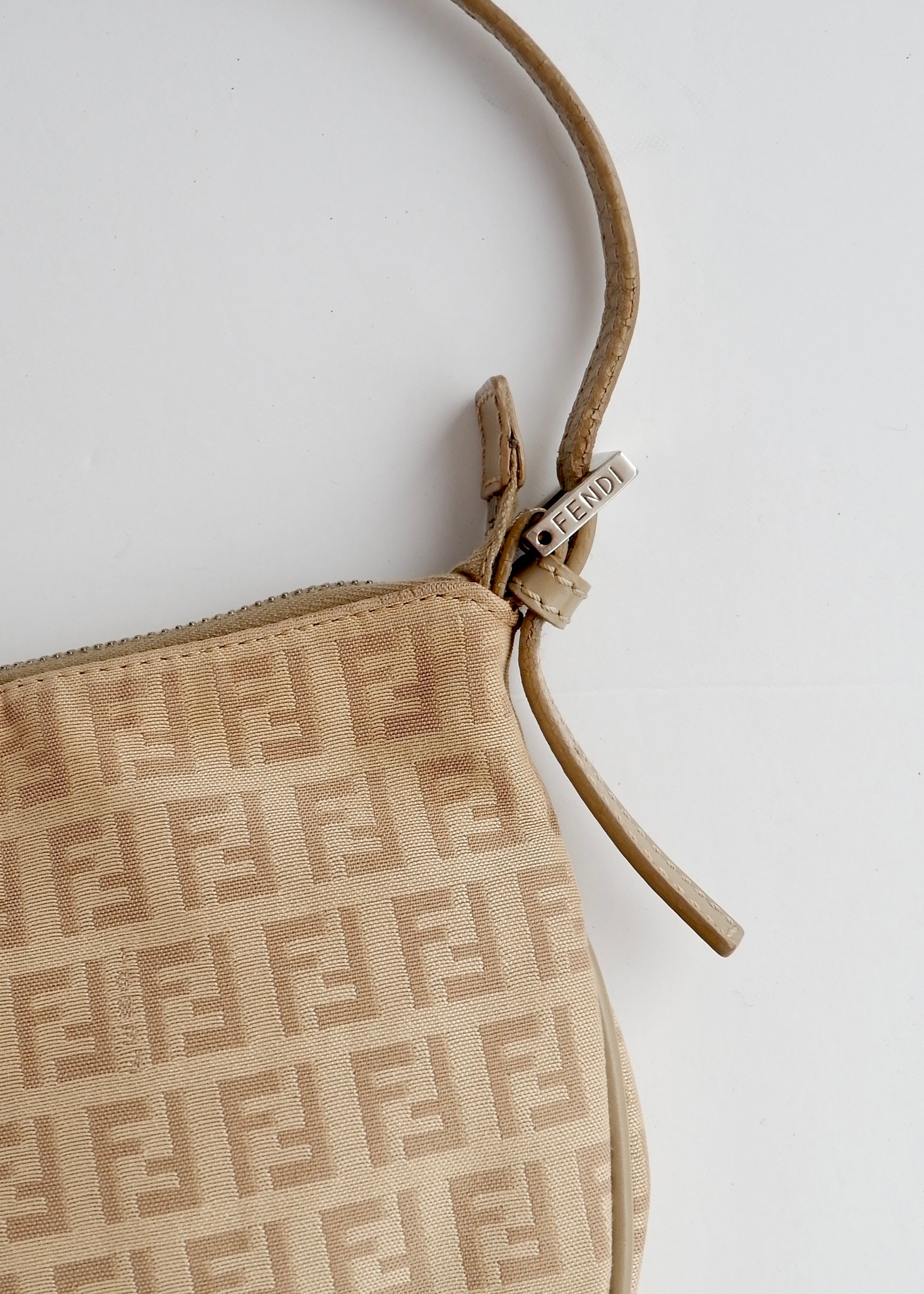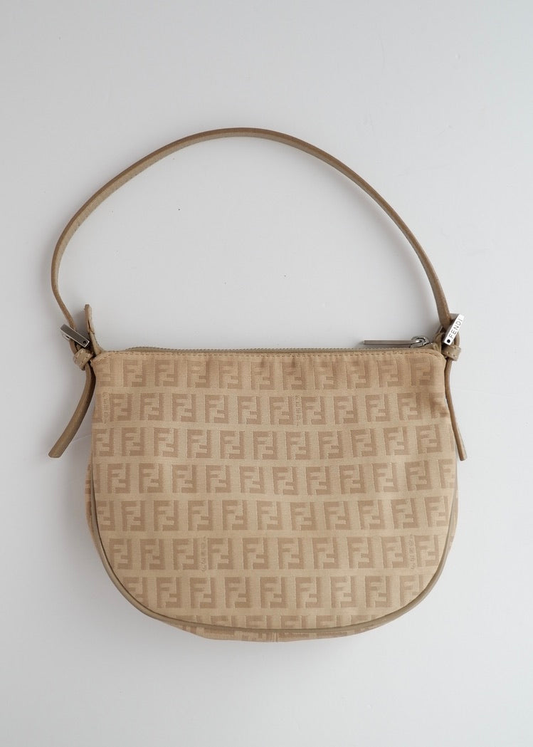 Authentic Preowned Fendi Light Beige Zucchino Small Shoulder Bag