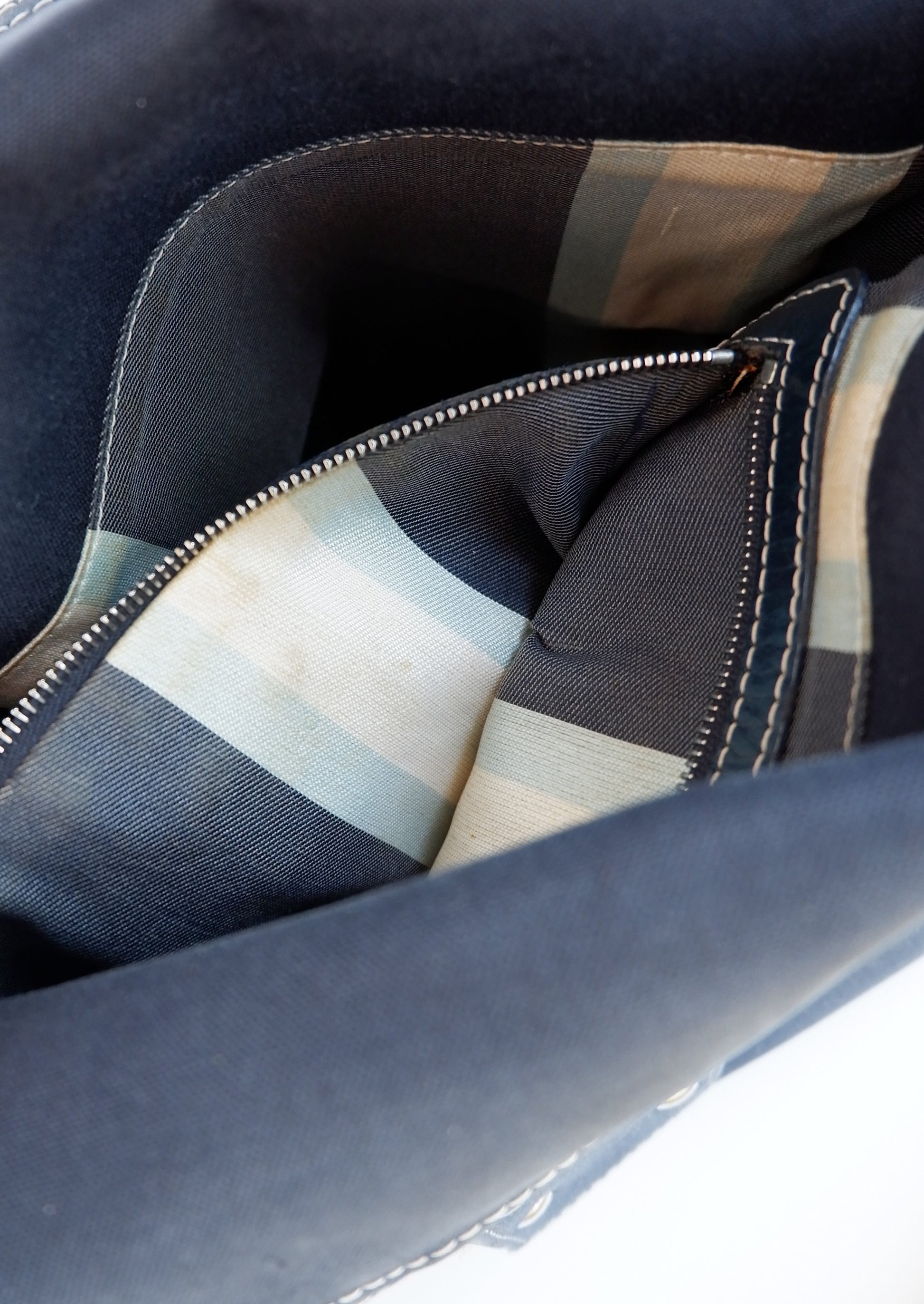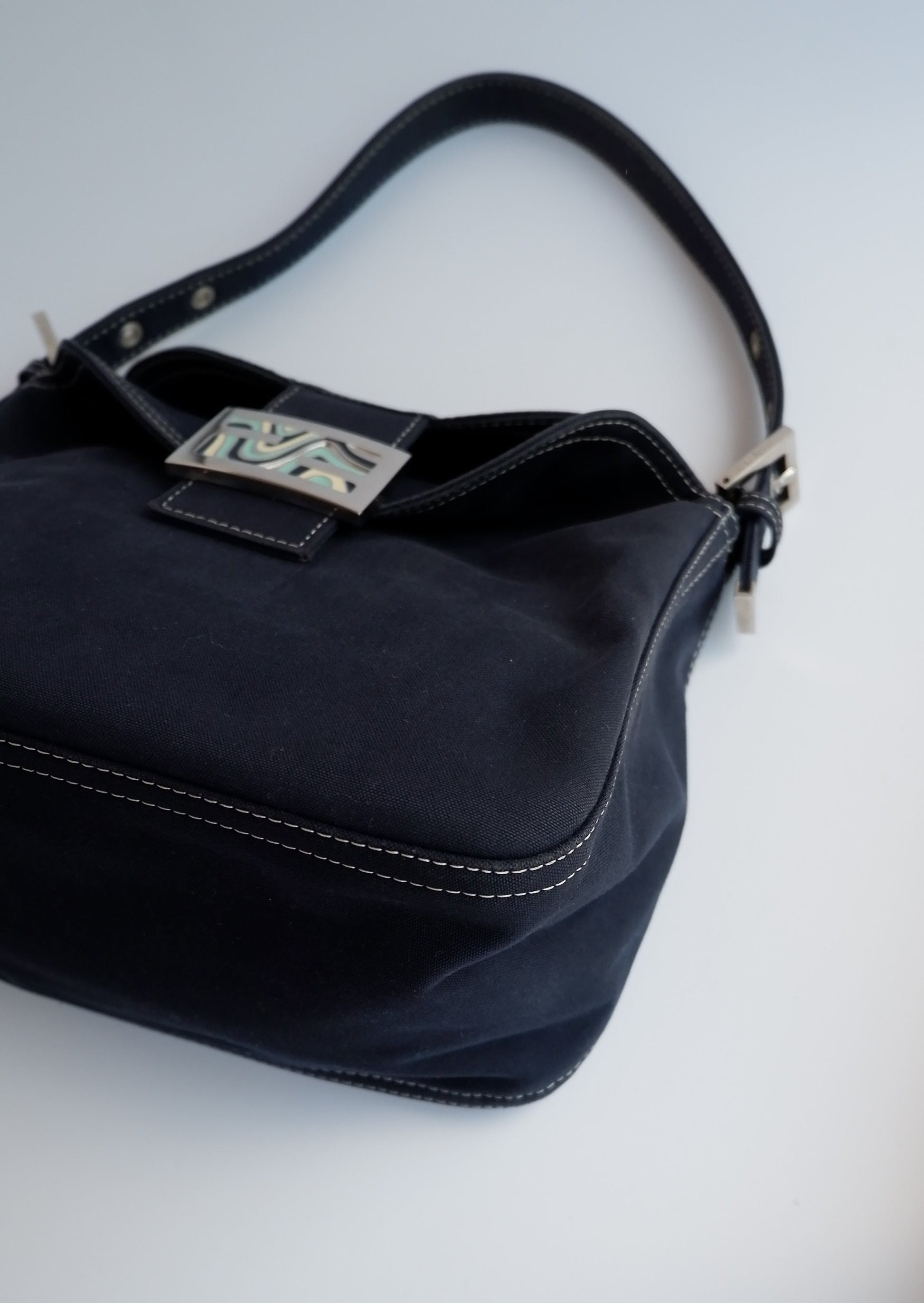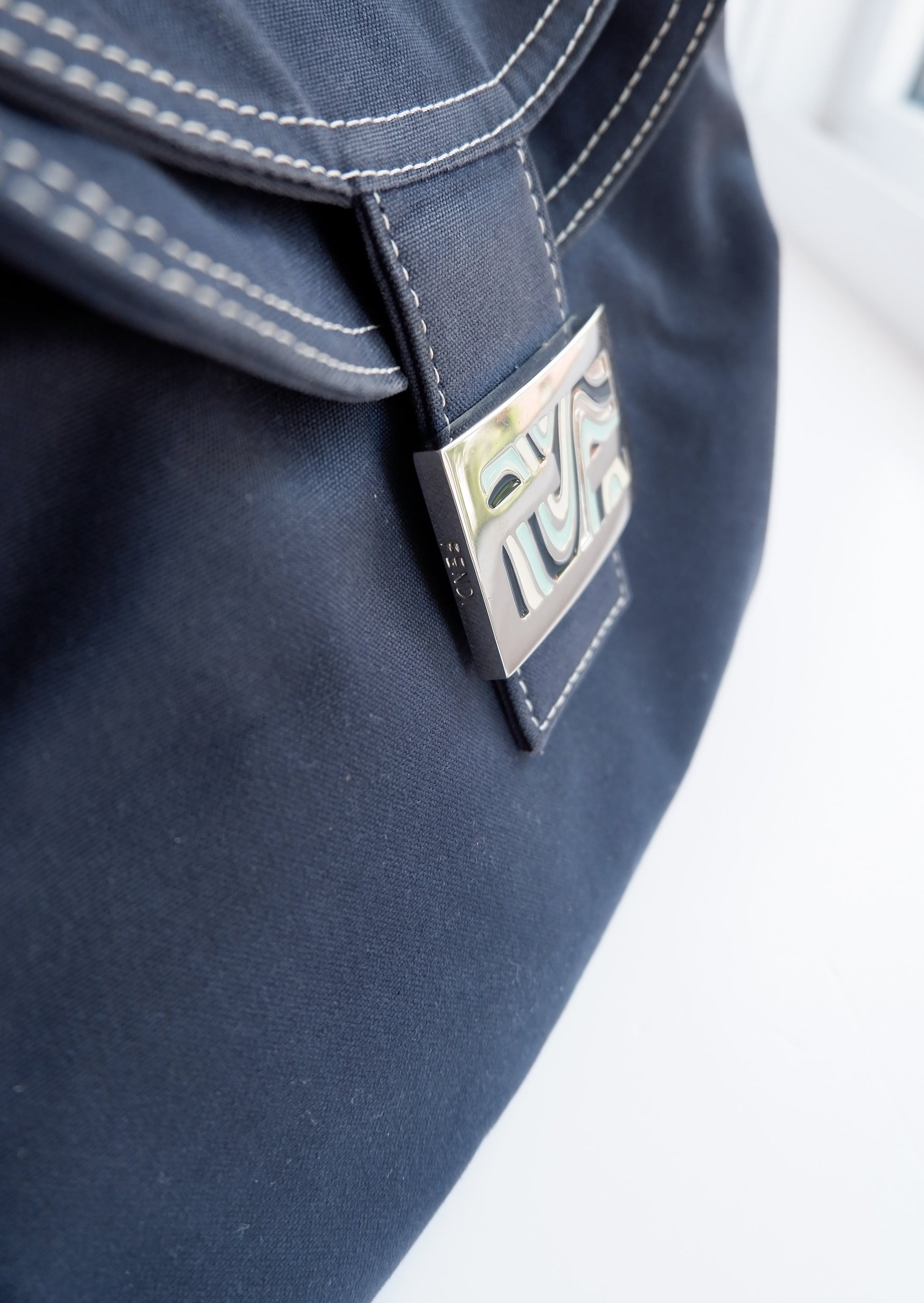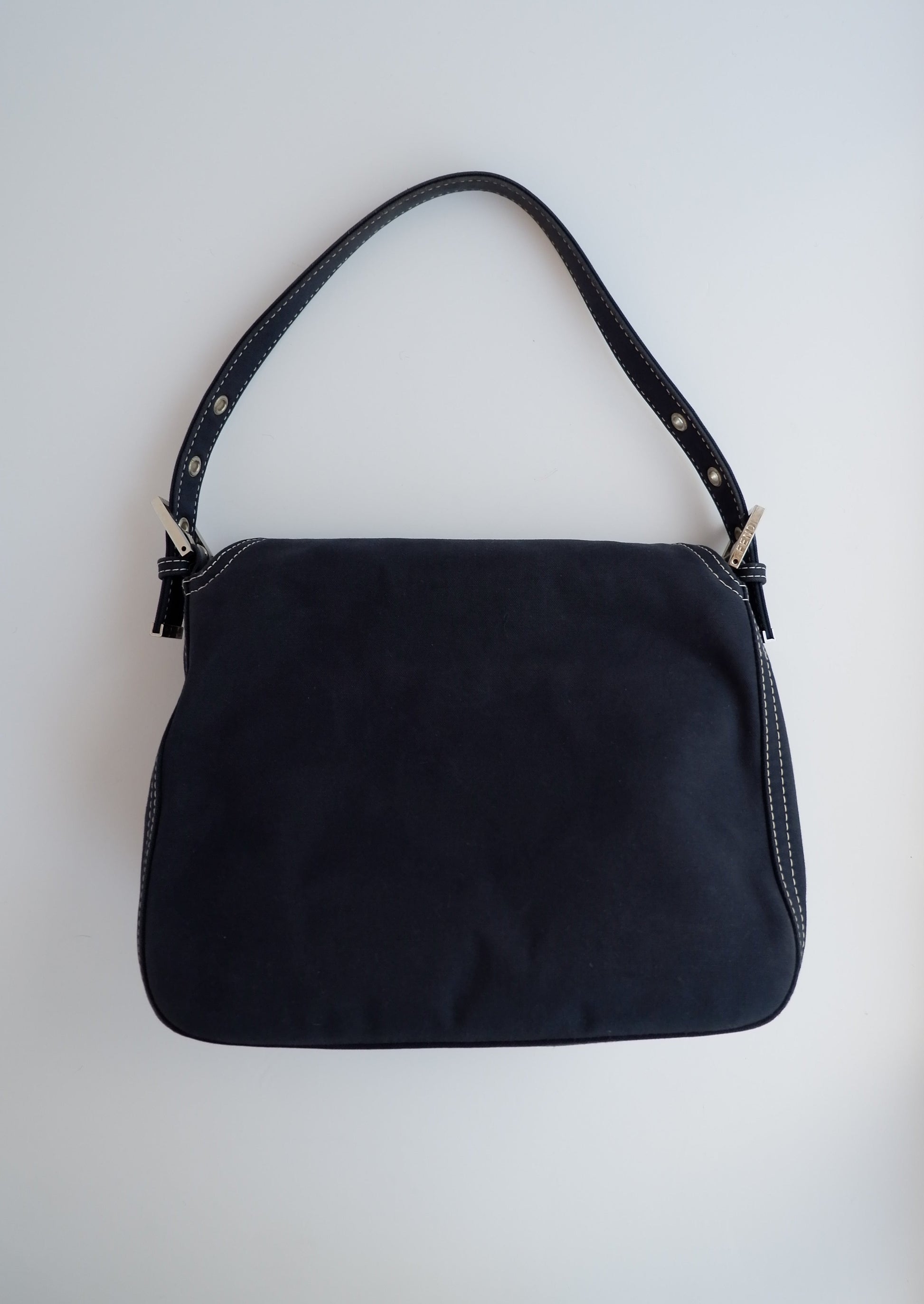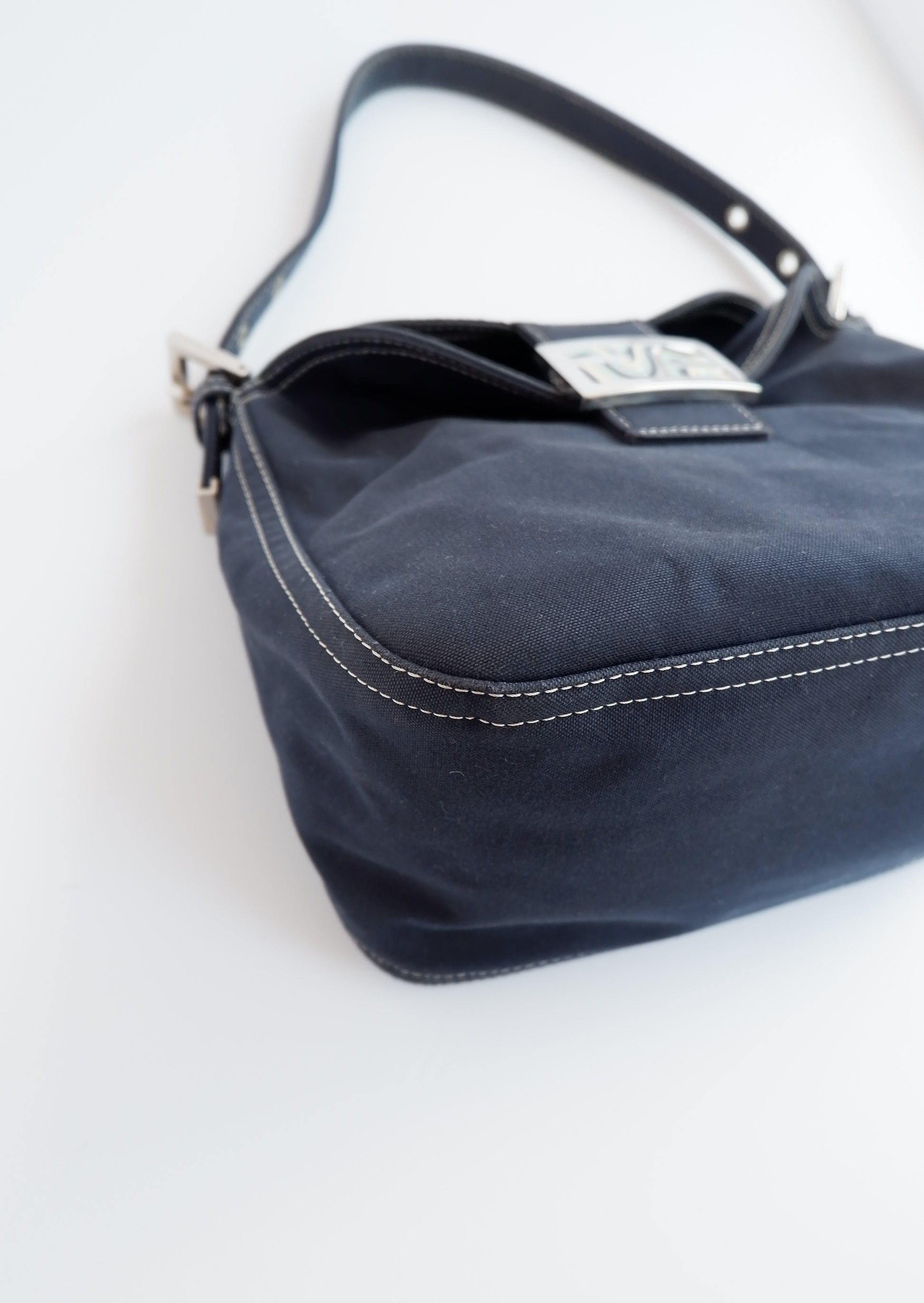 Authentic Preowned Fendi Navy Canvas Baguette Shoulder Bag