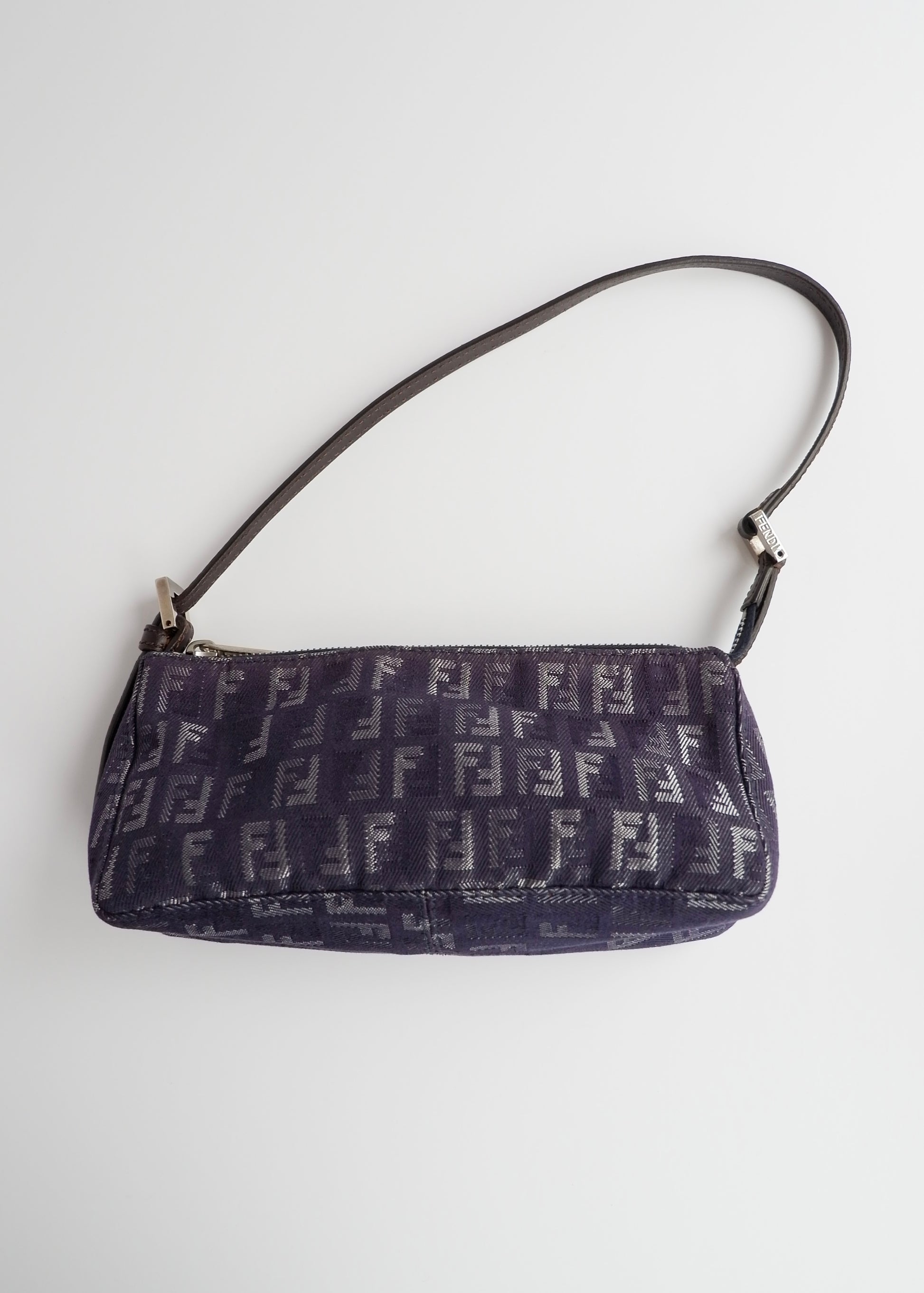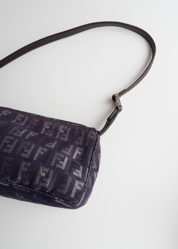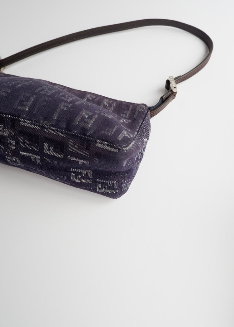 Authentic Preowned Fendi Navy FF Zucchino Small Shoulder Bag