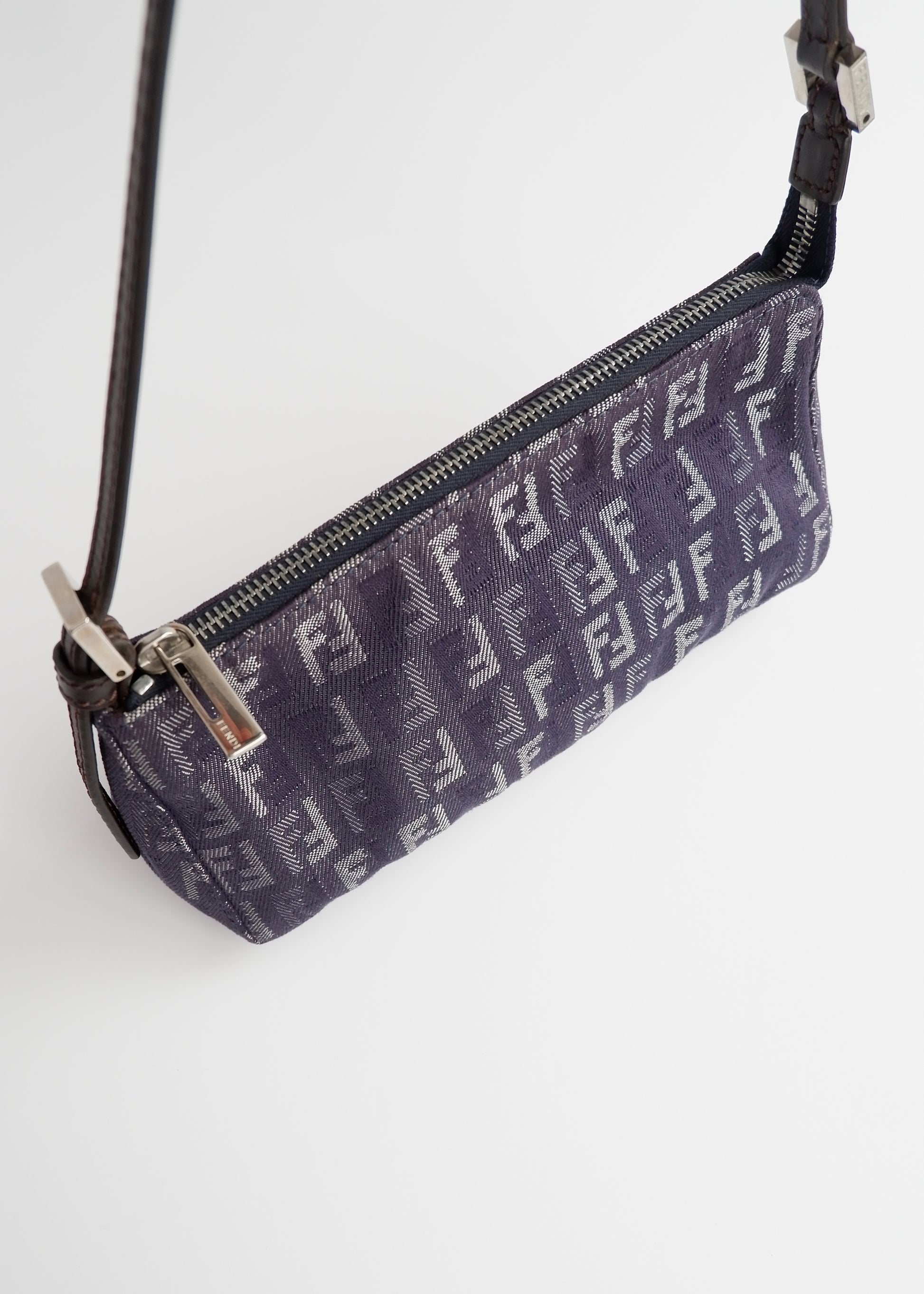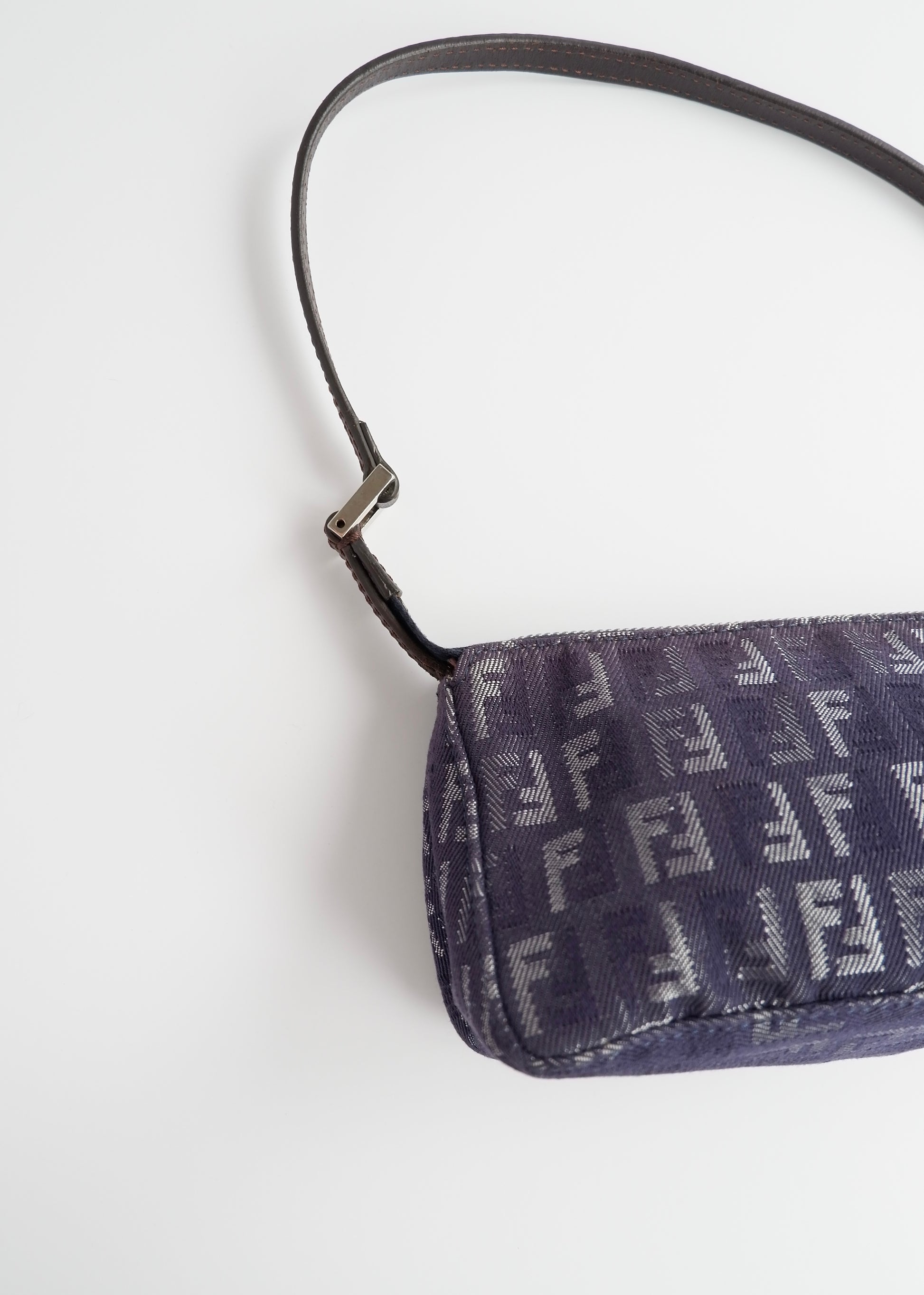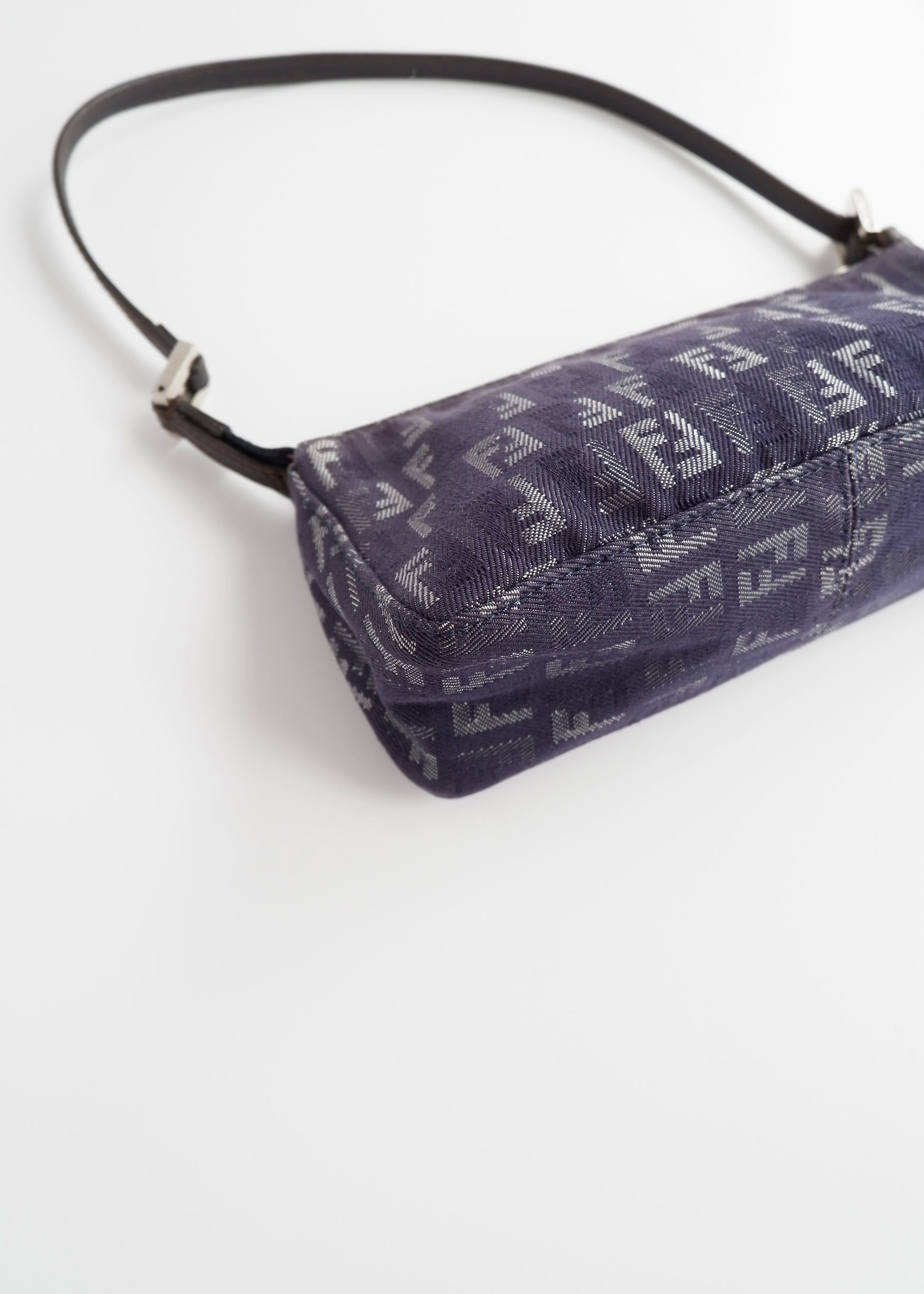Authentic Preowned Fendi Navy FF Zucchino Small Shoulder Bag