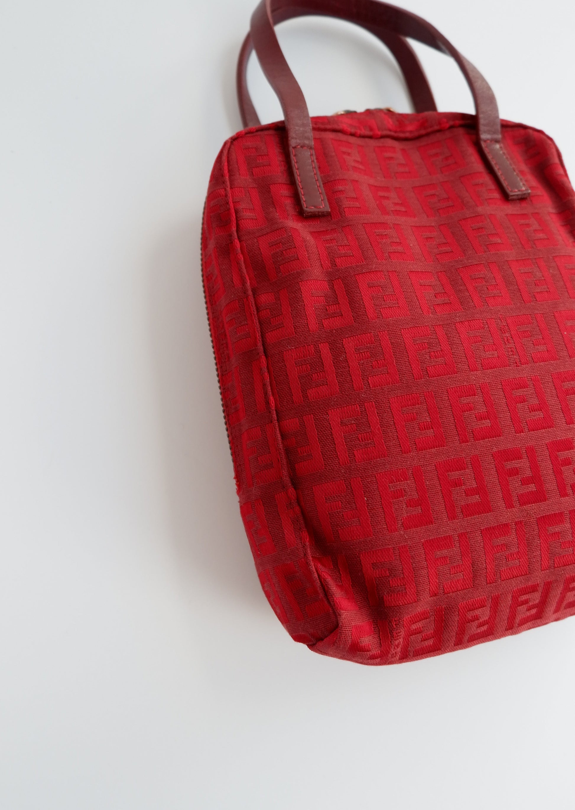 Authentic Preowned Fendi Red Zucchino Mini Handbag
