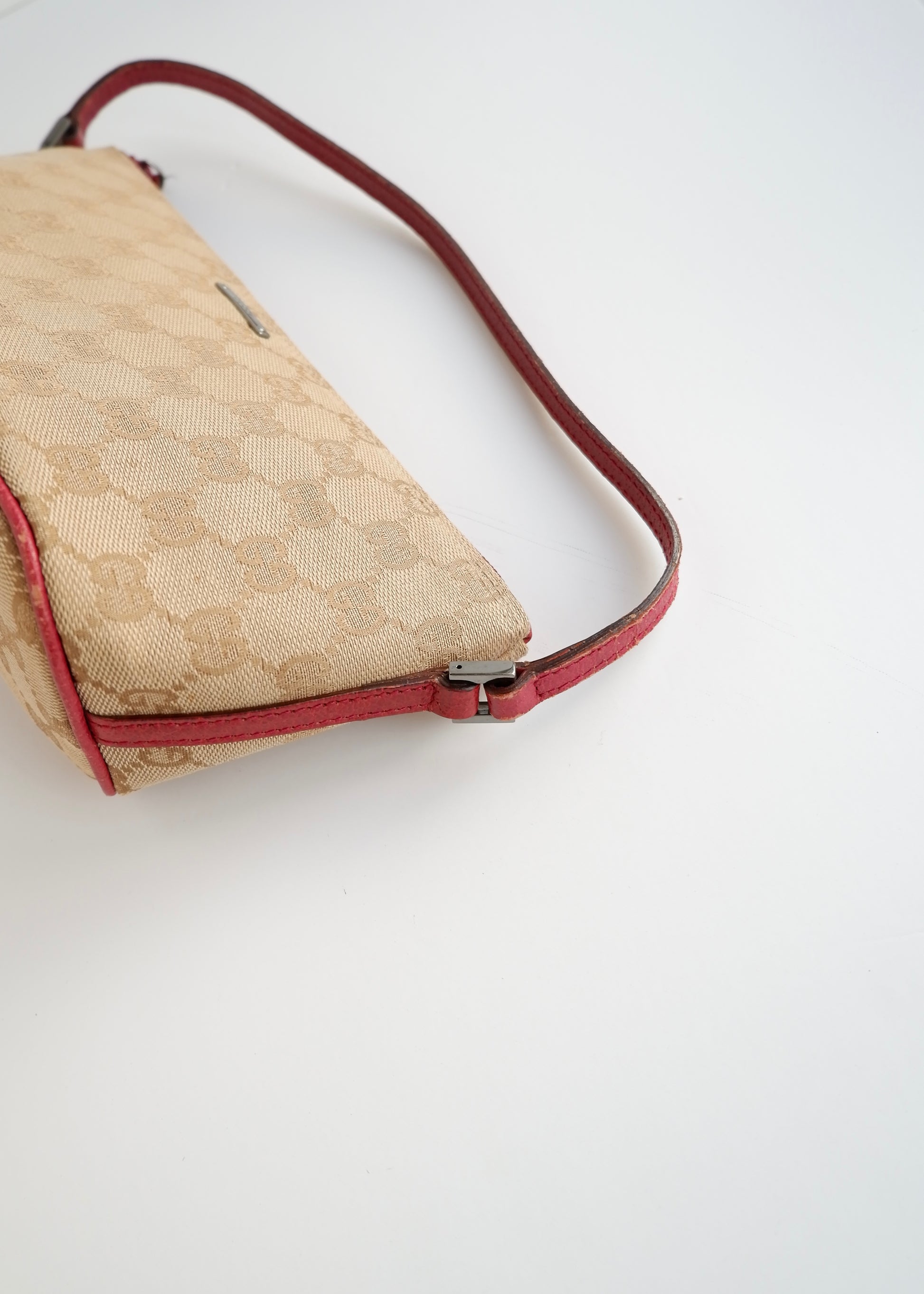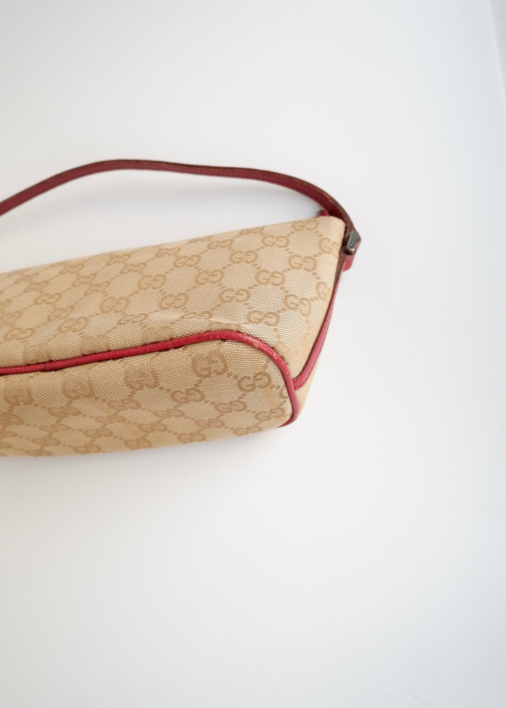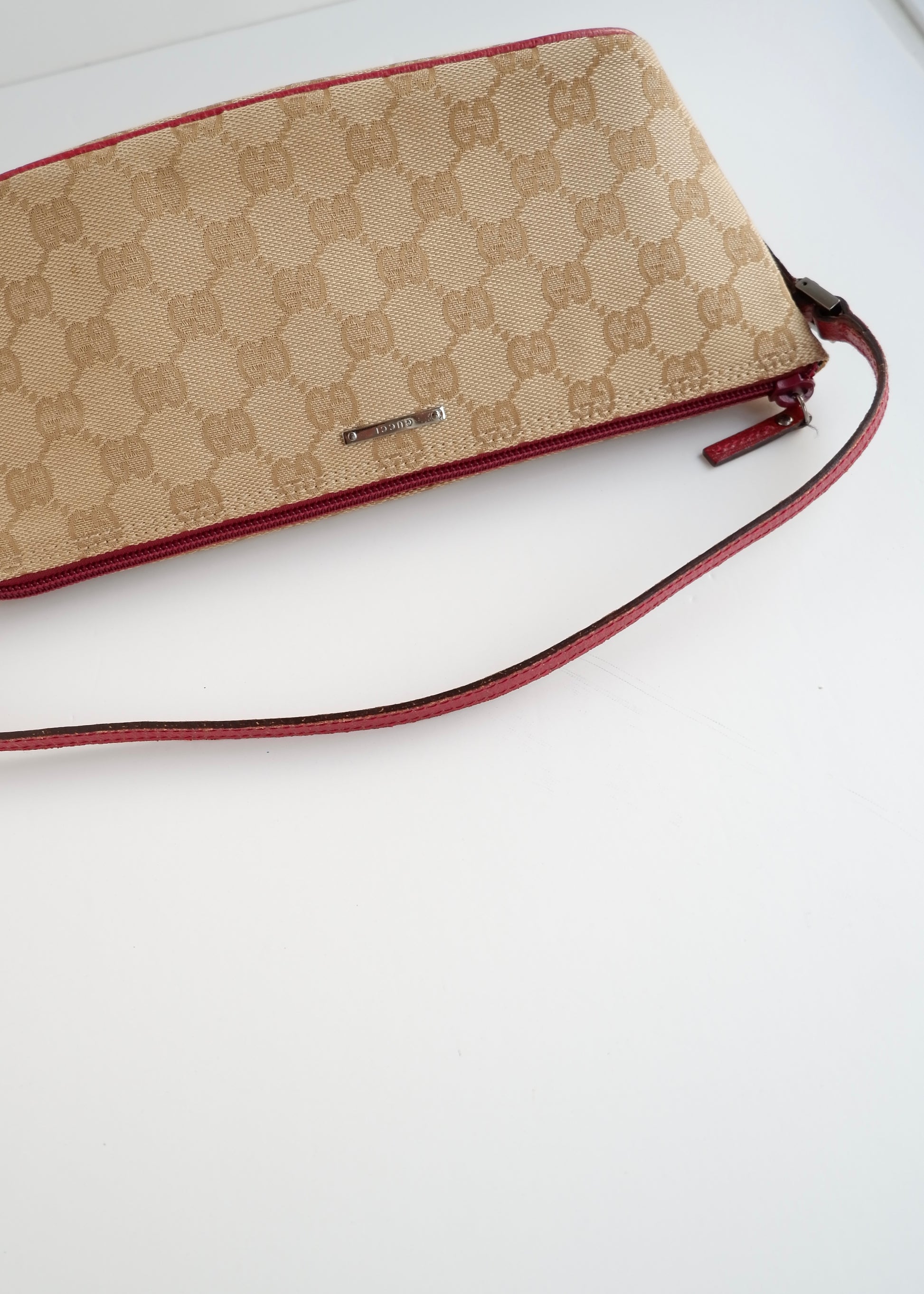 Authentic Preowned Gucci Beige/Burgundy Boat Pochette