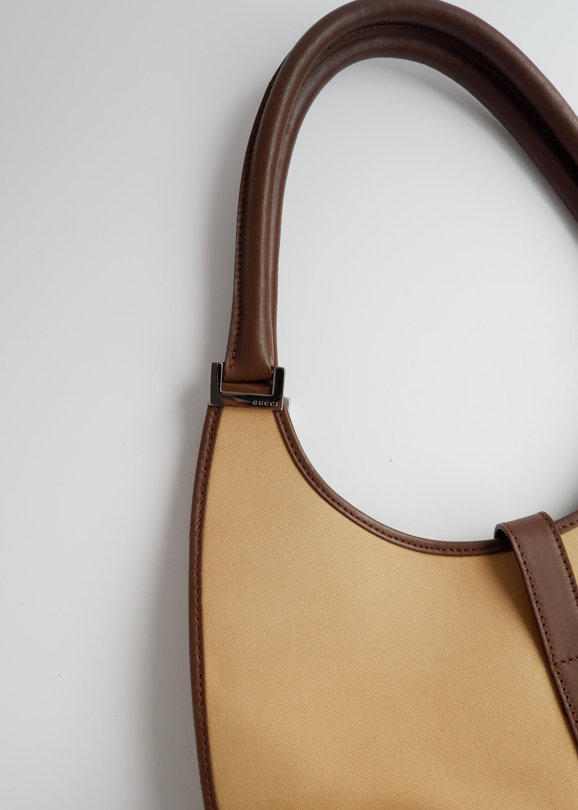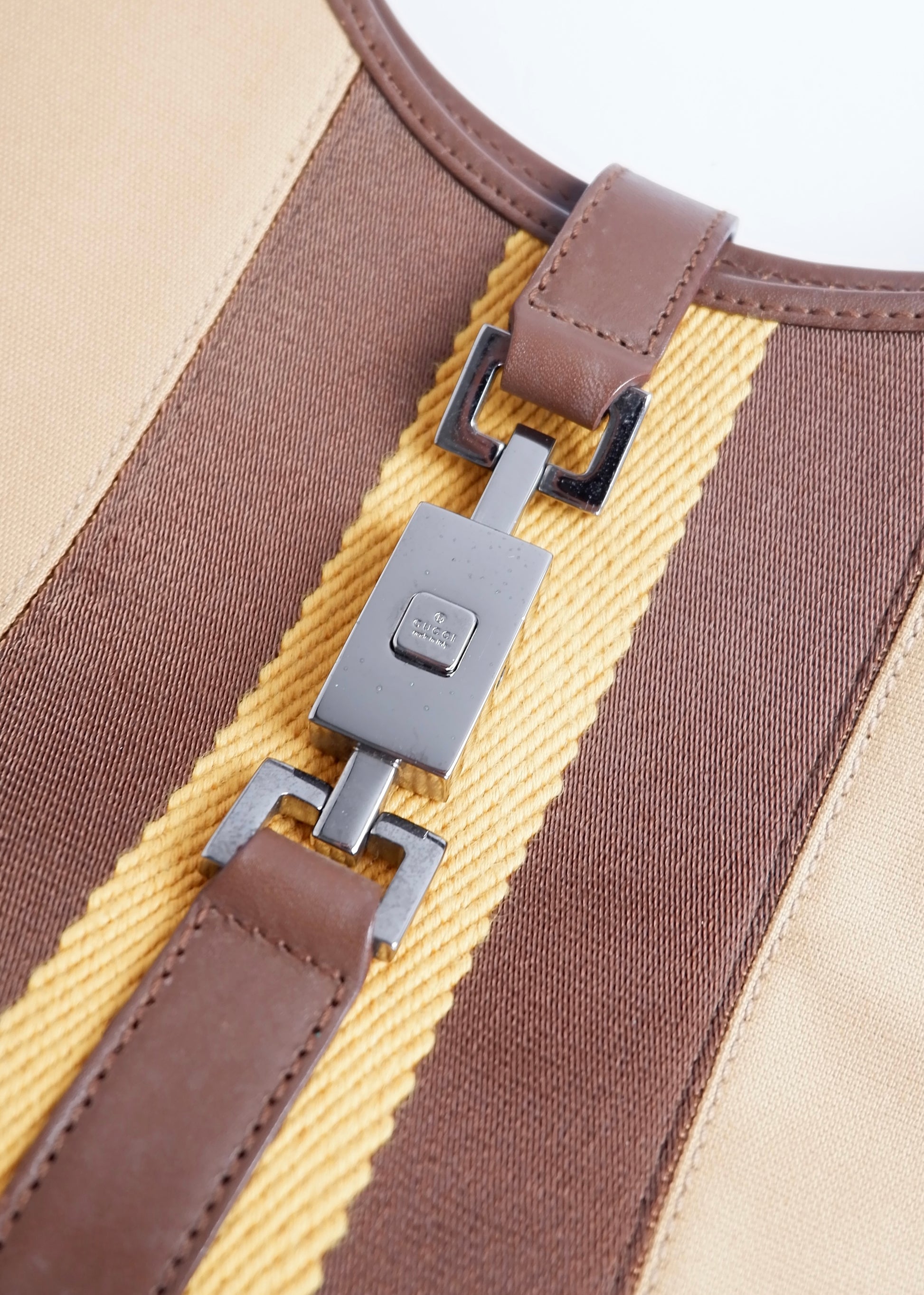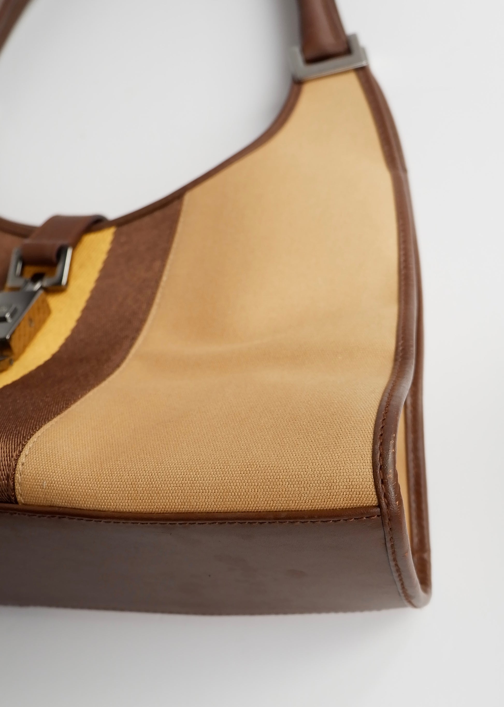 Authentic Preowned Gucci Beige Canvas/Leather Sherry Line Jackie Bag