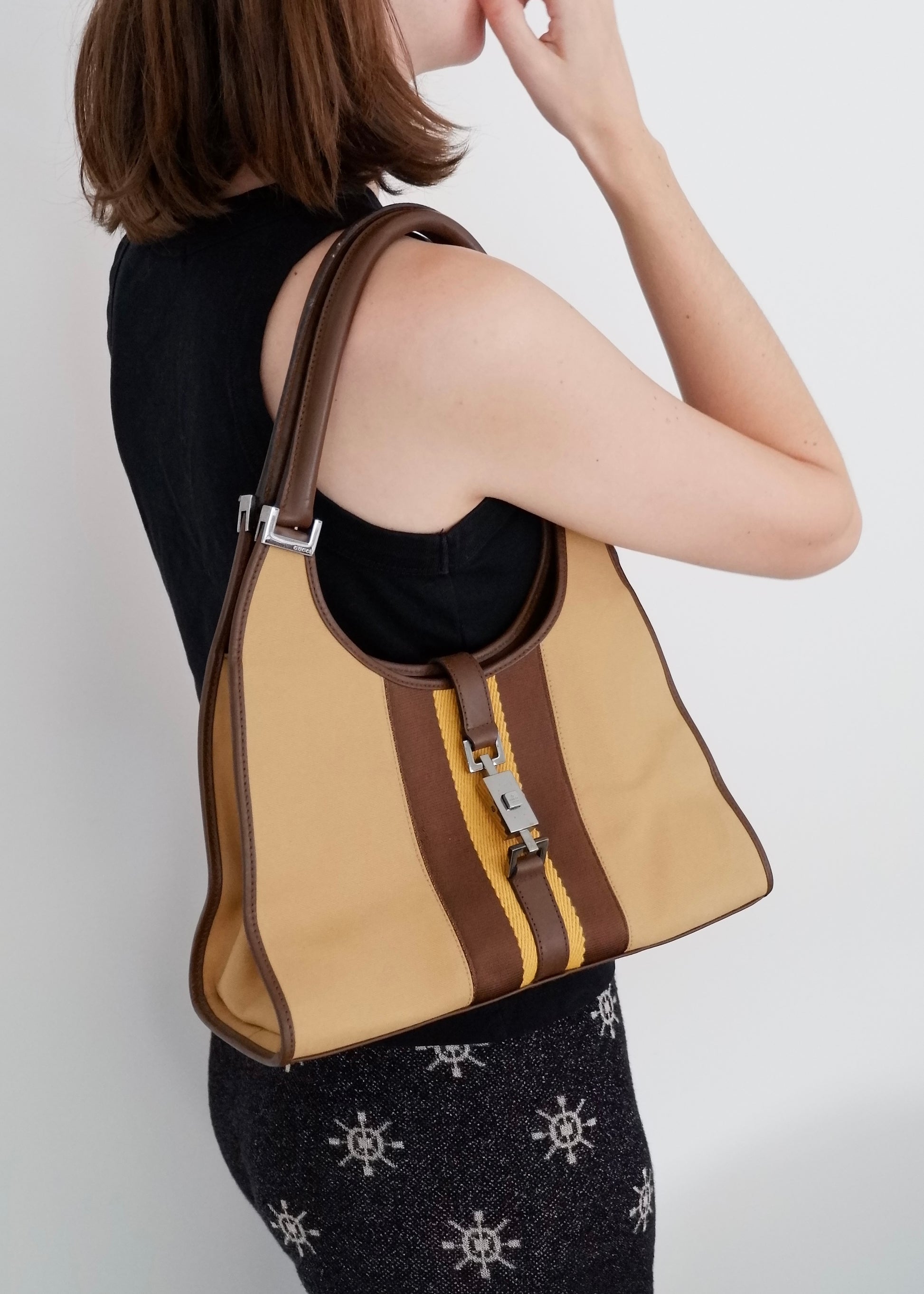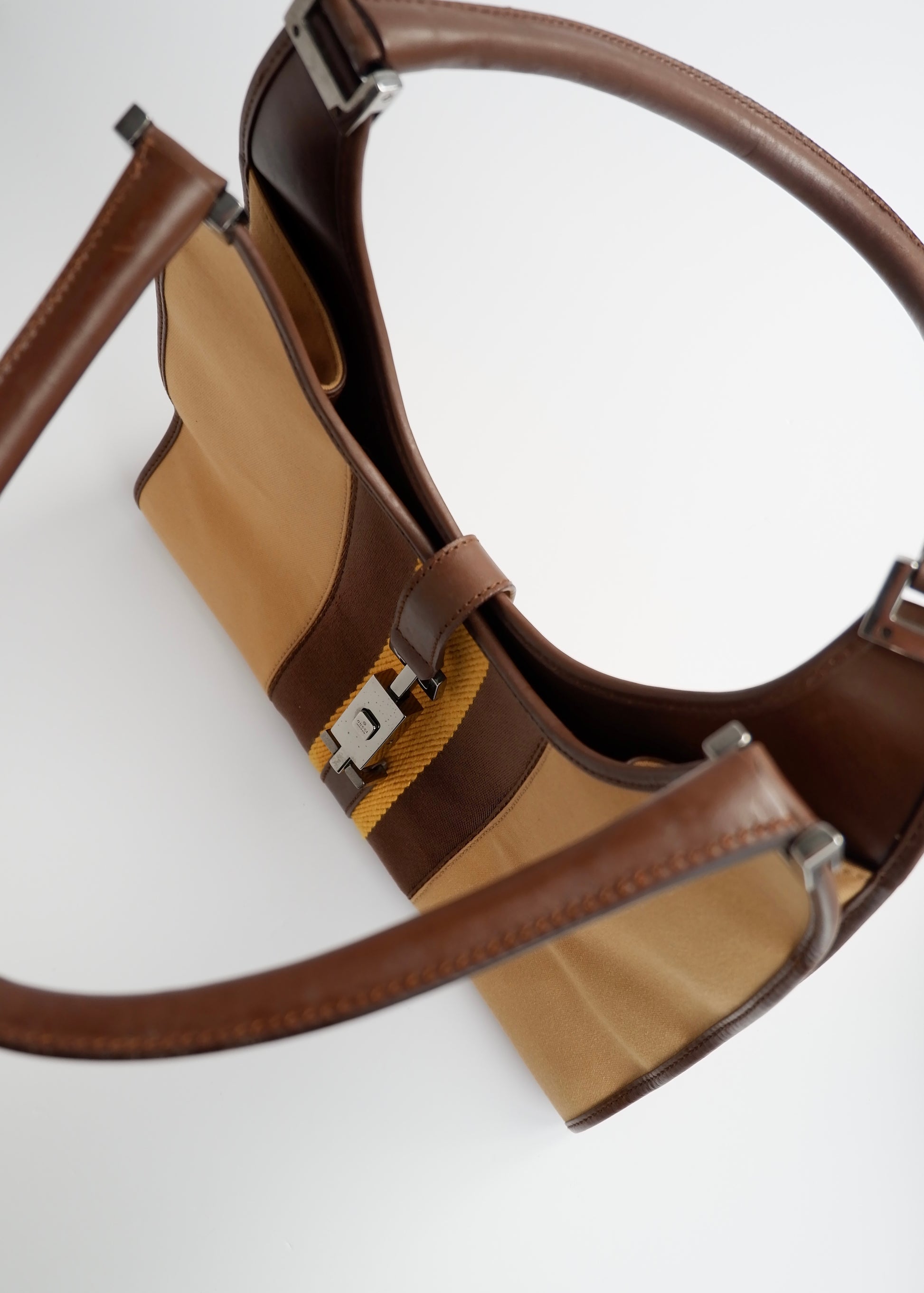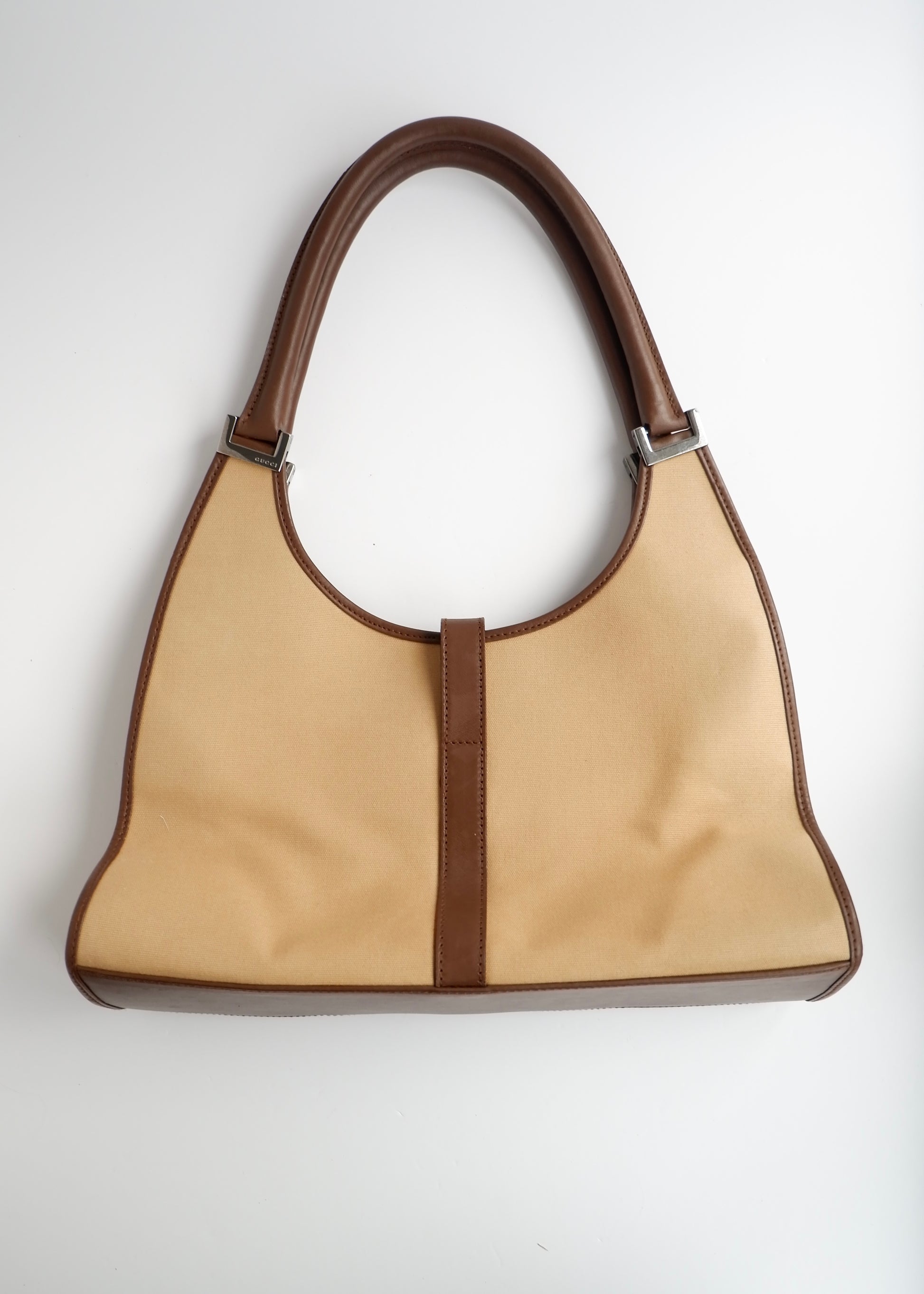 Authentic Preowned Gucci Beige Canvas/Leather Sherry Line Jackie Bag