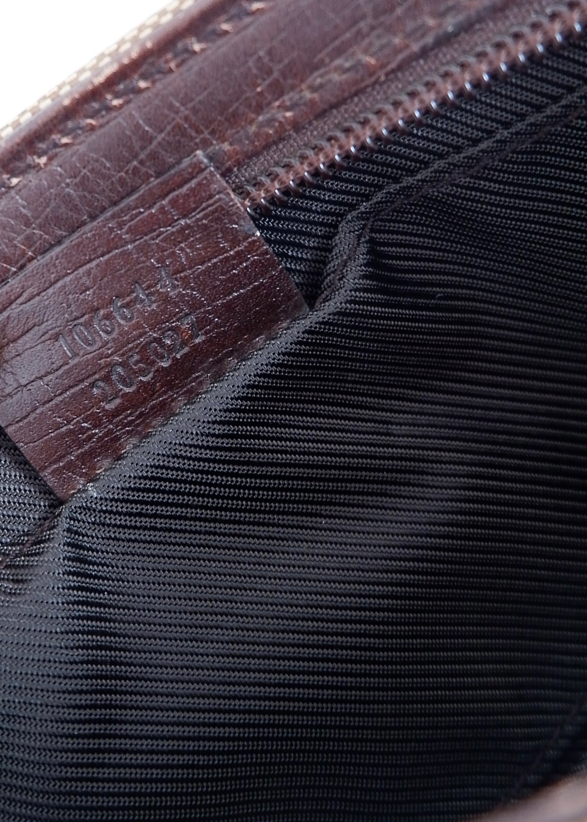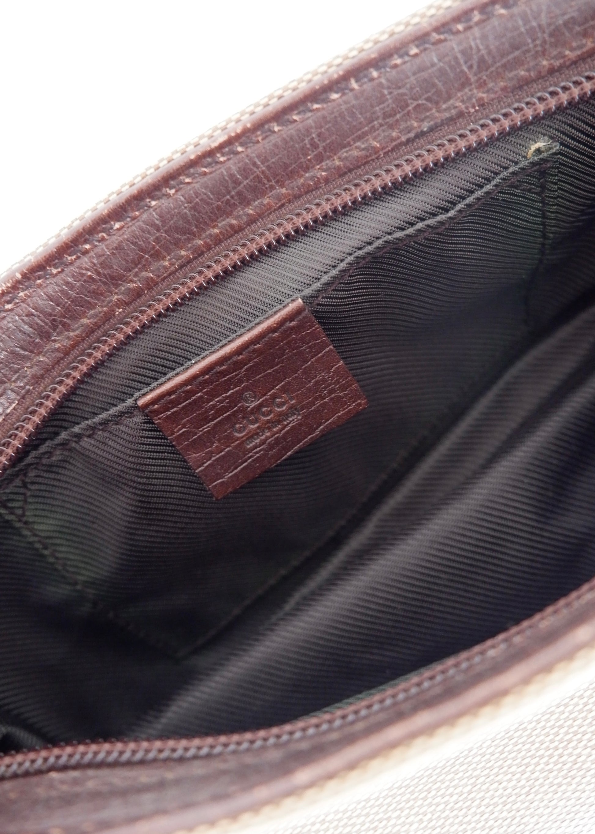 Condition: 8/10 Good Condition - General signs of wear. Clean exterior and interior. Subtle marks on the leather brown piping around the bag. Very faint color change to the exterior canvas around the top portion of the bag.