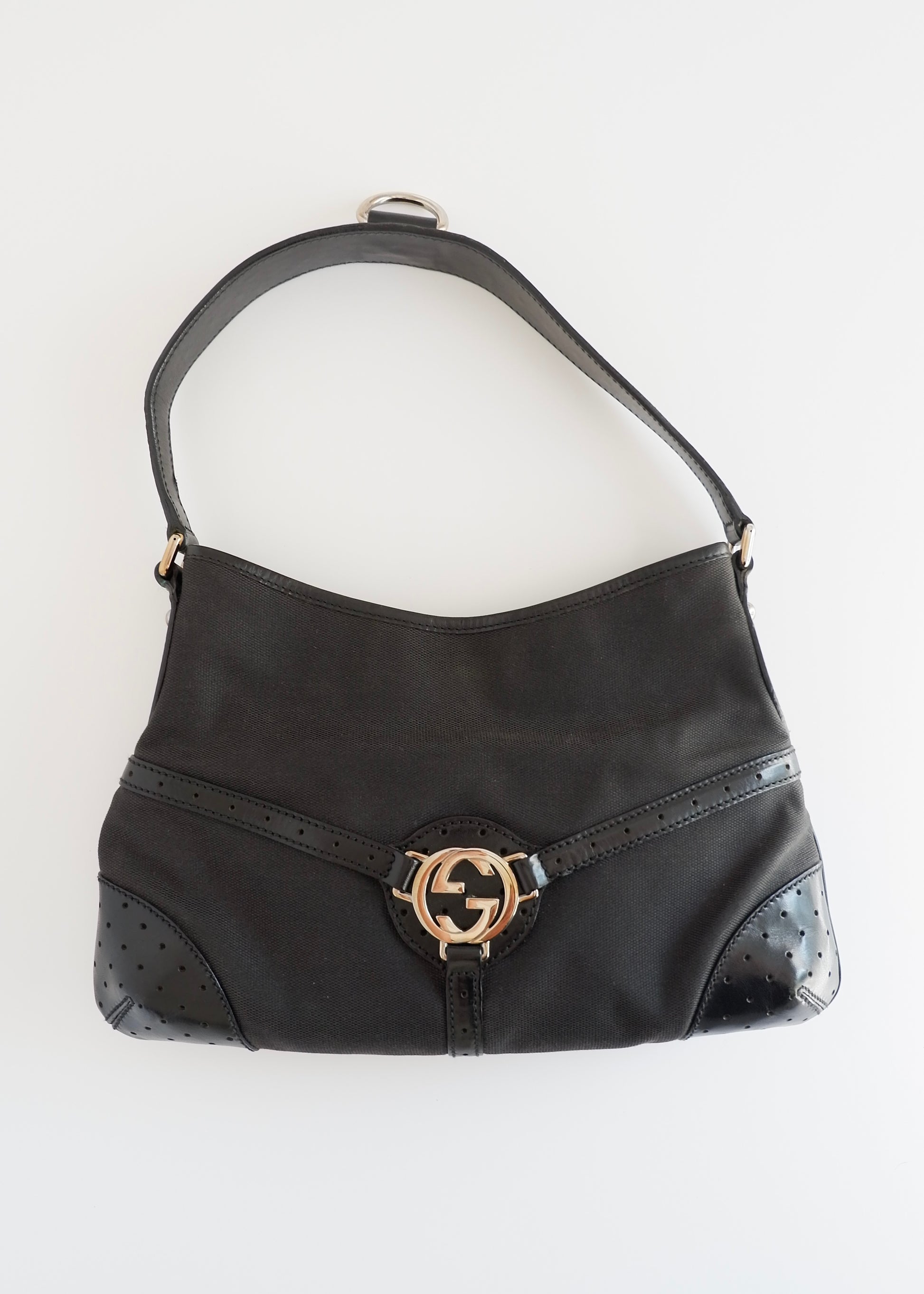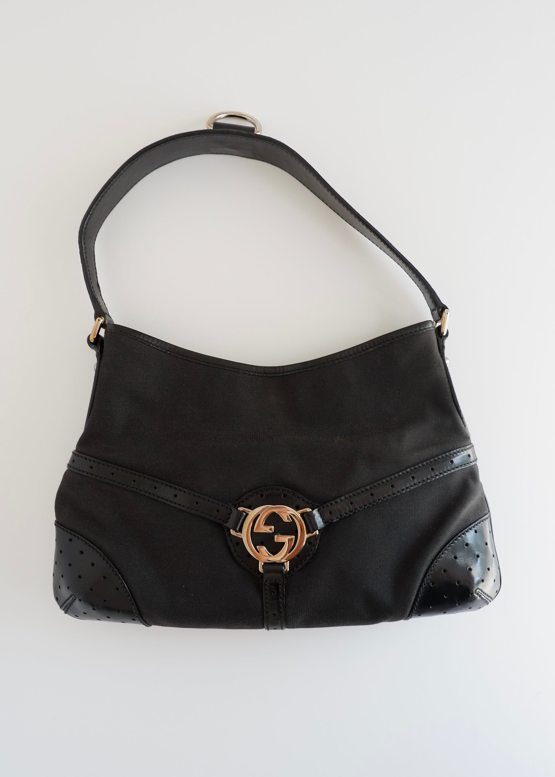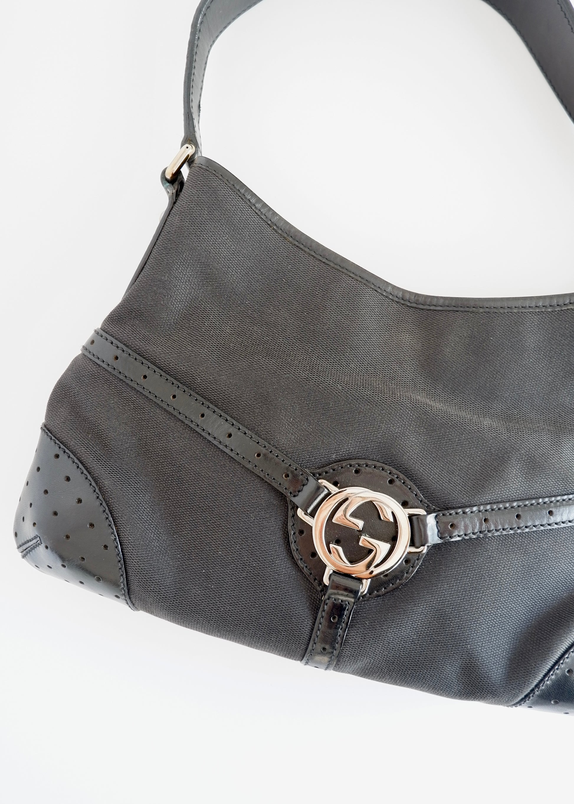 Authentic Preowned Gucci Black Canvas/Leather G Dollar Shoulder Bag