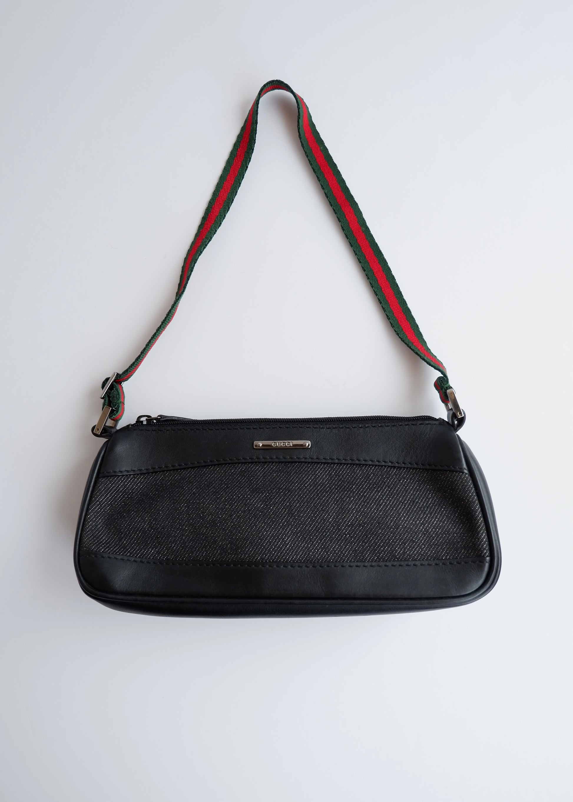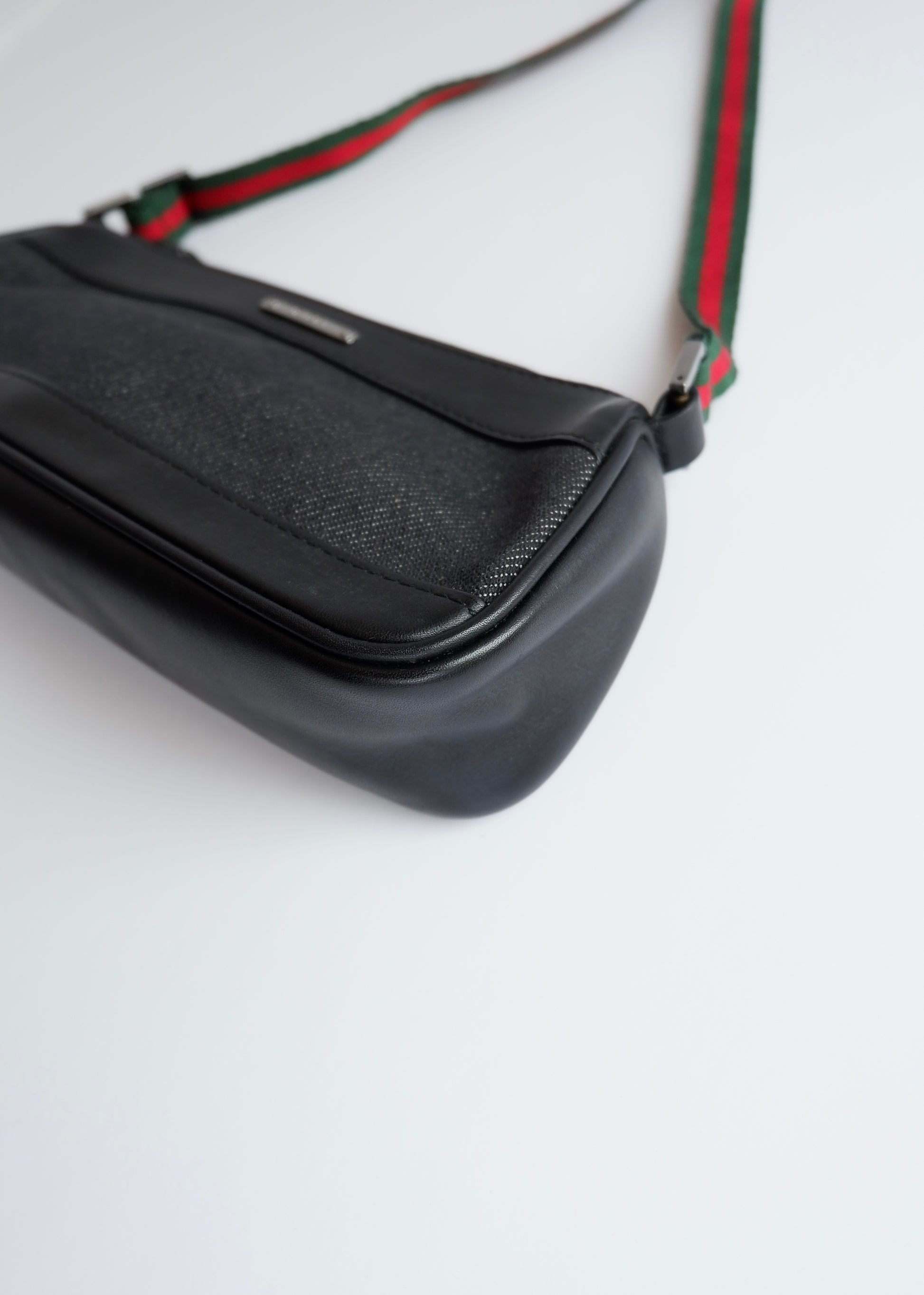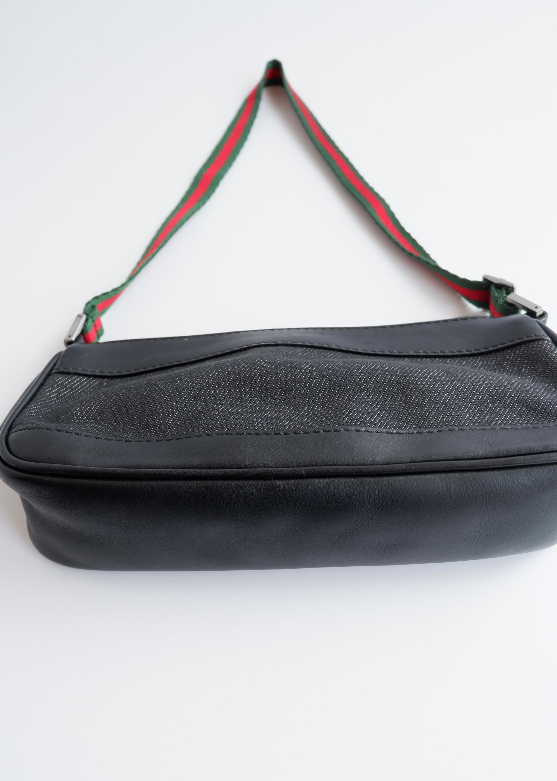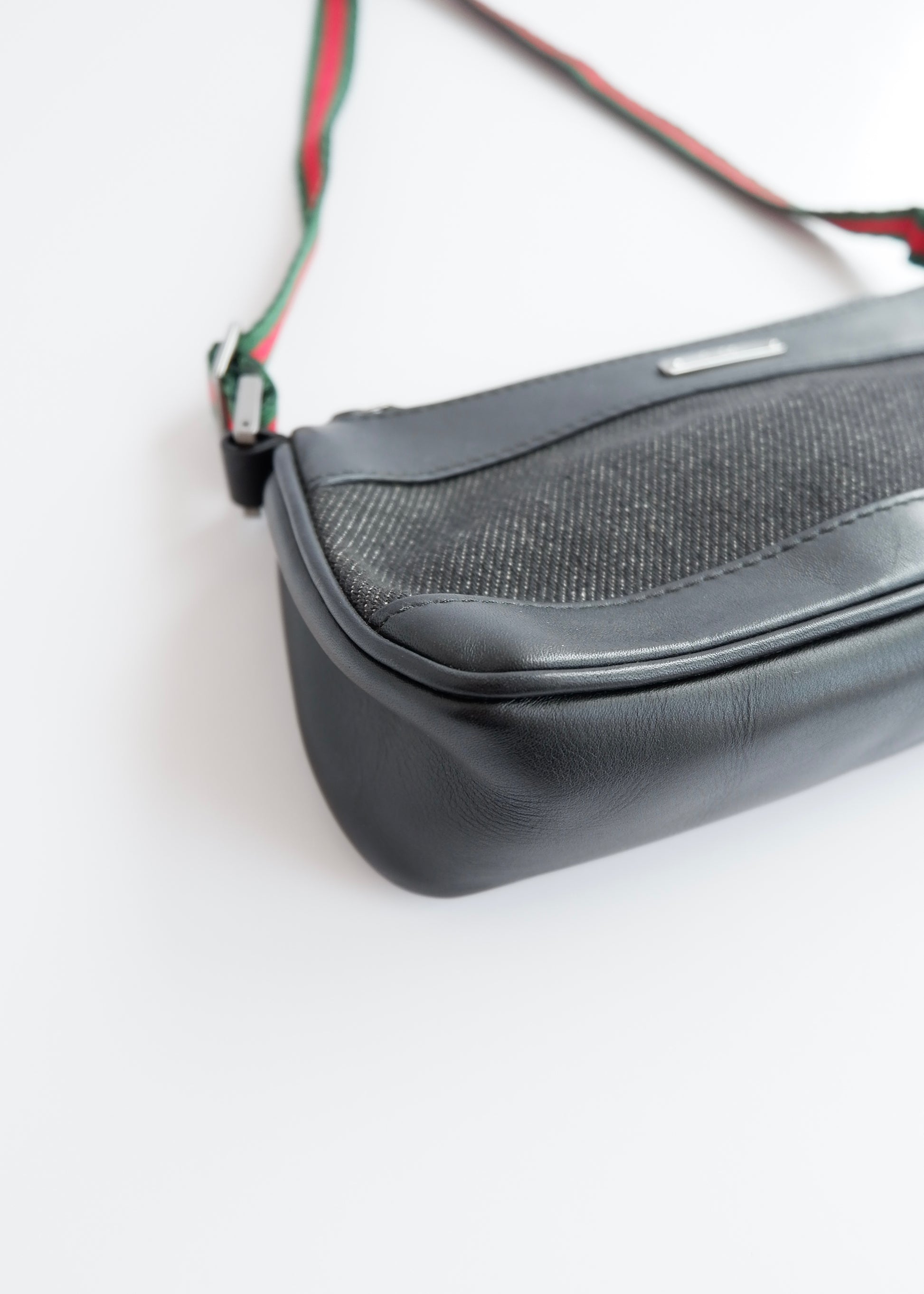 Authentic Preowned Gucci Black Denim/ Leather Sherry Line Micro Shoulder Bag