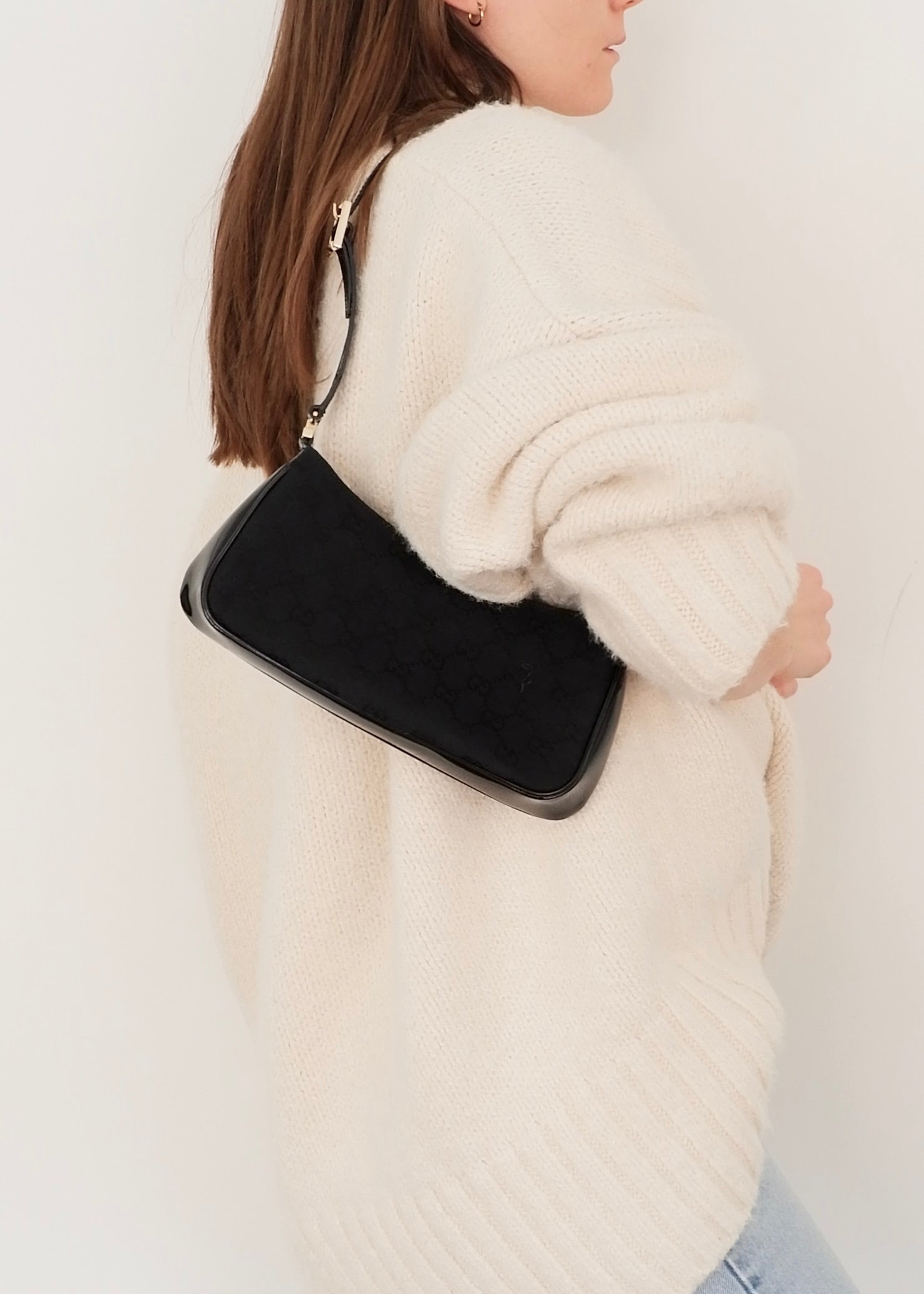 Authentic Preowned Gucci Black GG Canvas Patent Leather Shoulder Bag