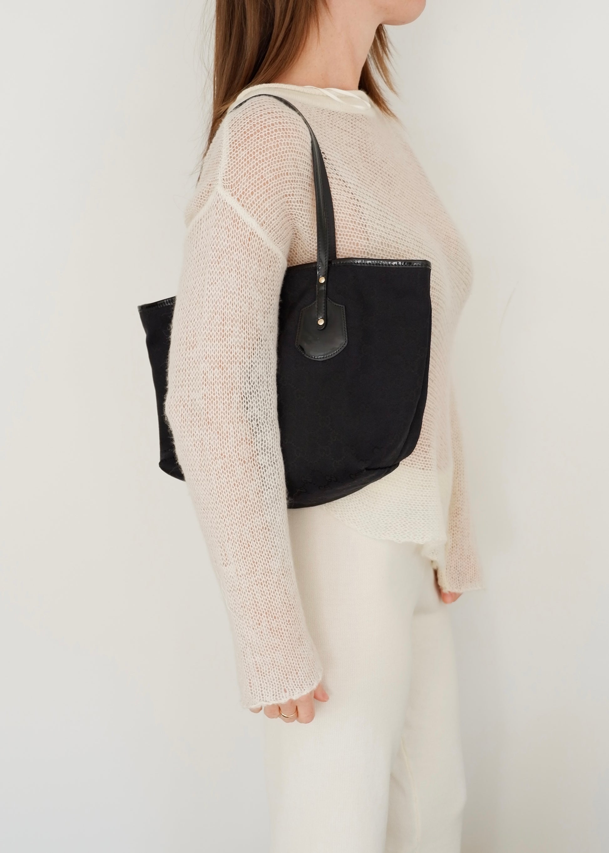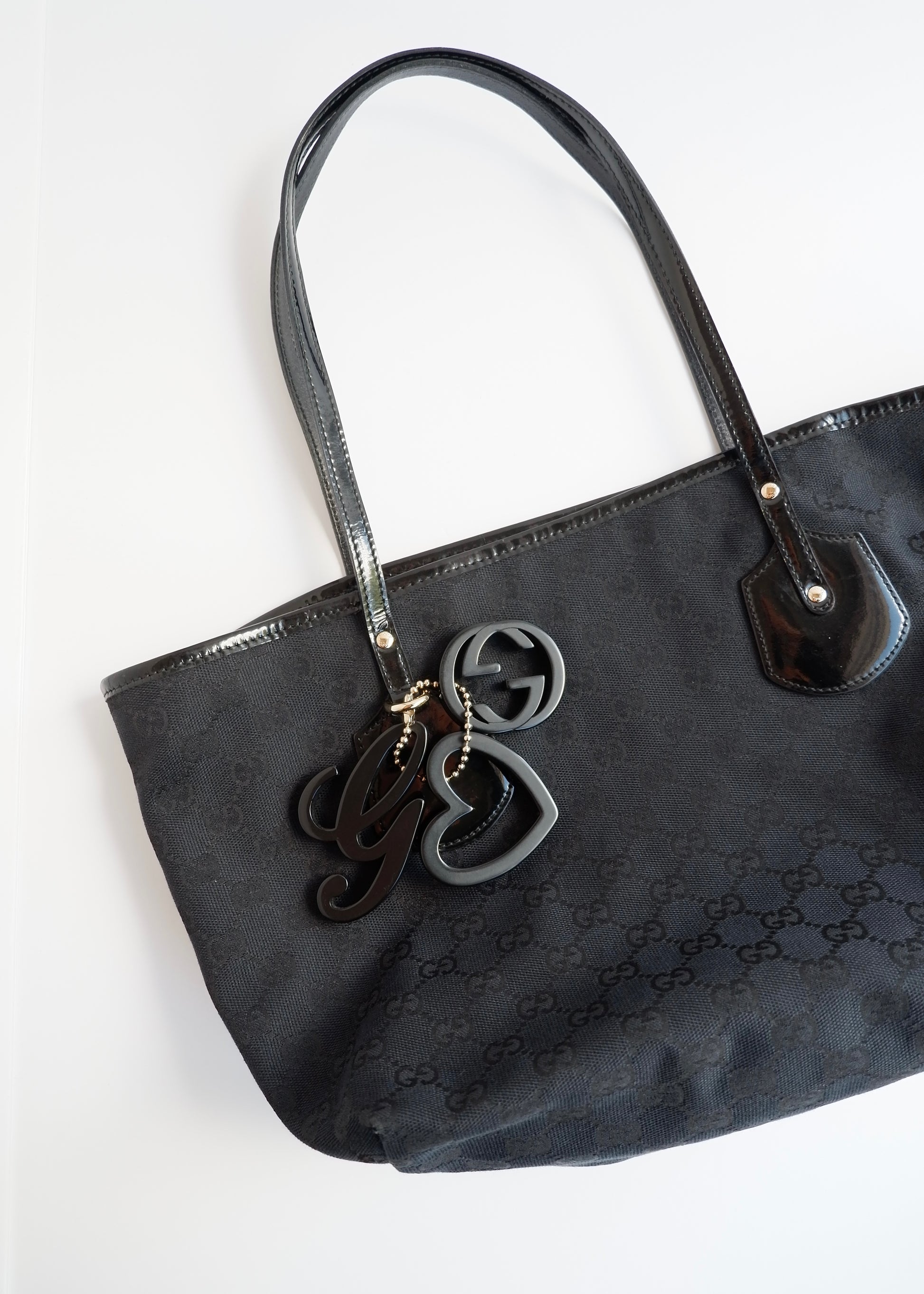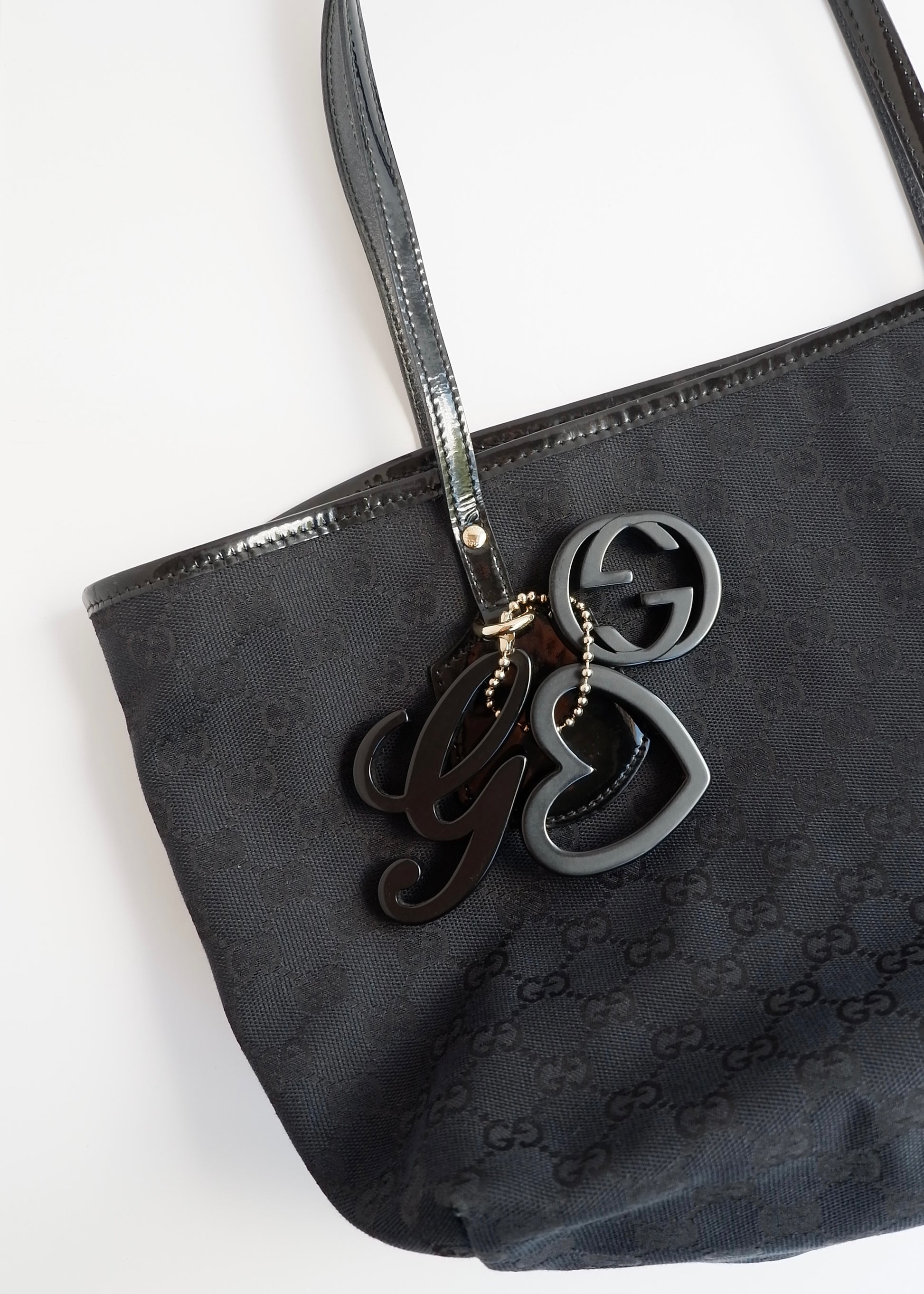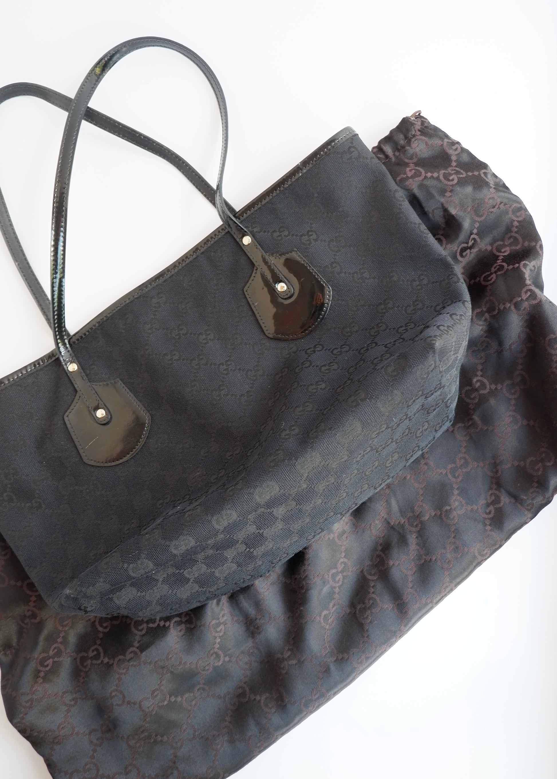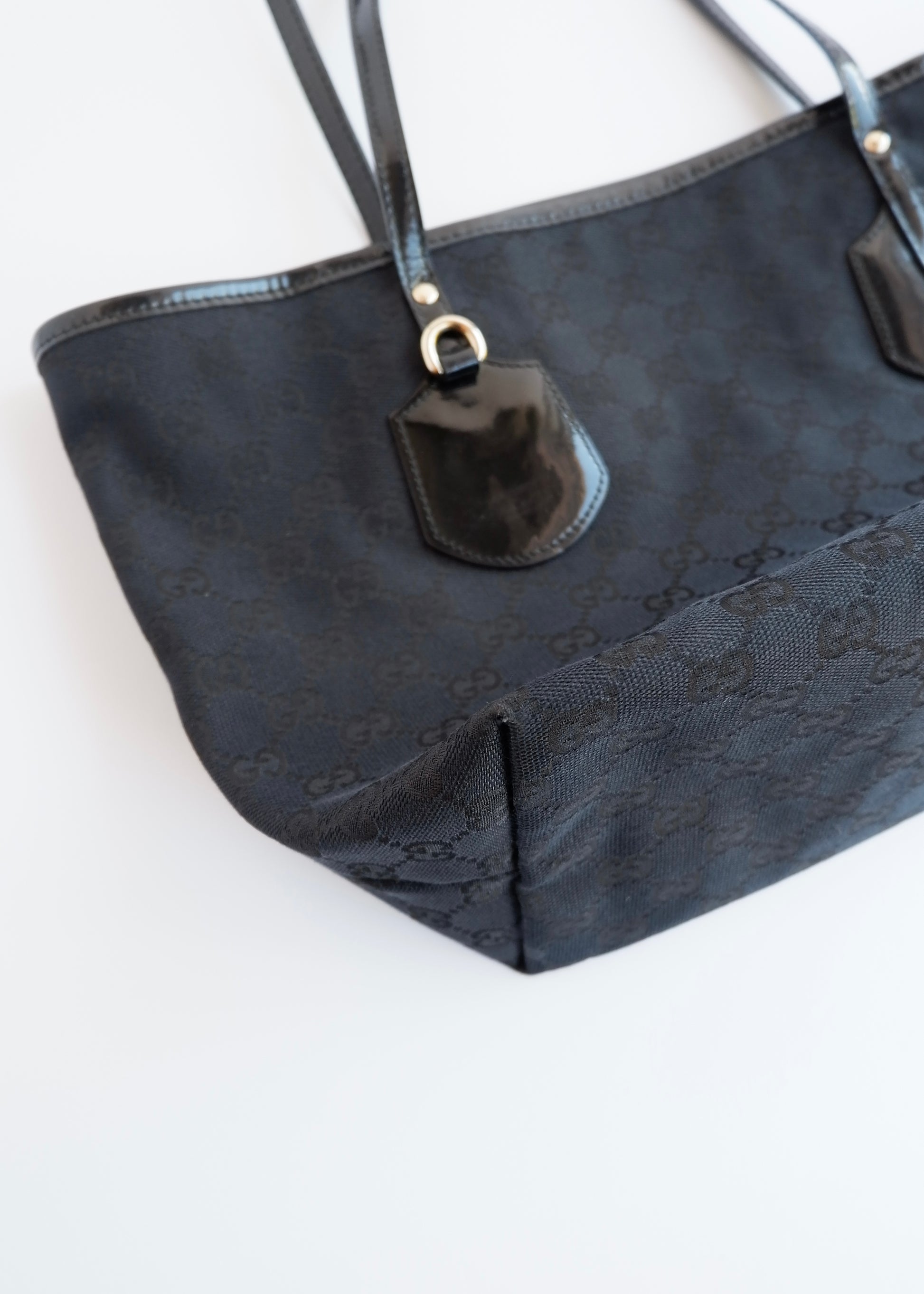 Authentic Preowned Gucci Black GG Canvas/Patent Leather Tote Bag