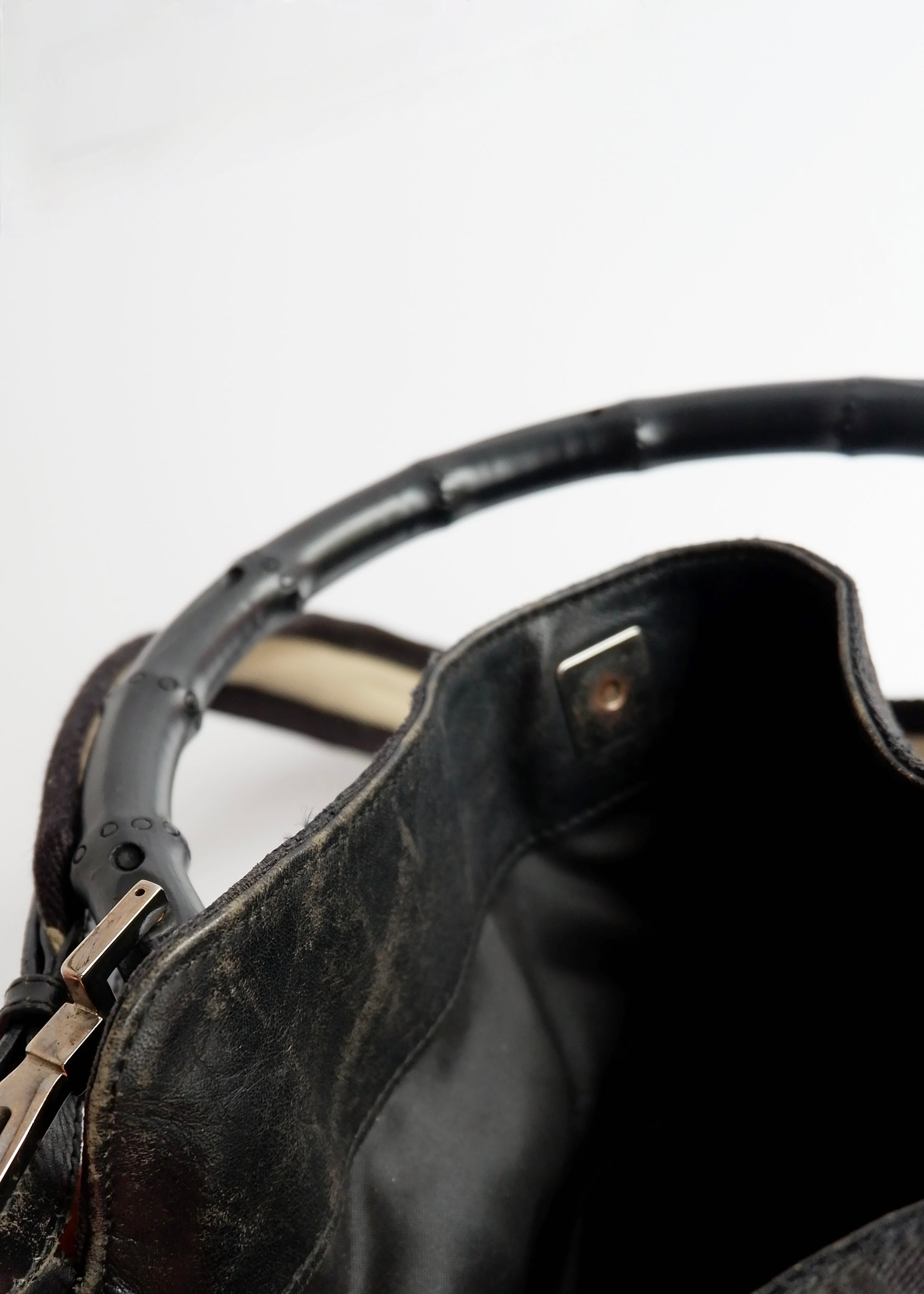 Condition: 8/10 - General signs of wear and age. There are faint scuffs and scratches to the exterior leather details on the bag. Faded/marked hardware where the bag's straps connected to the bag (see photos). Clean interior with some scratches to the top interior leather detail of the bag (see photos)