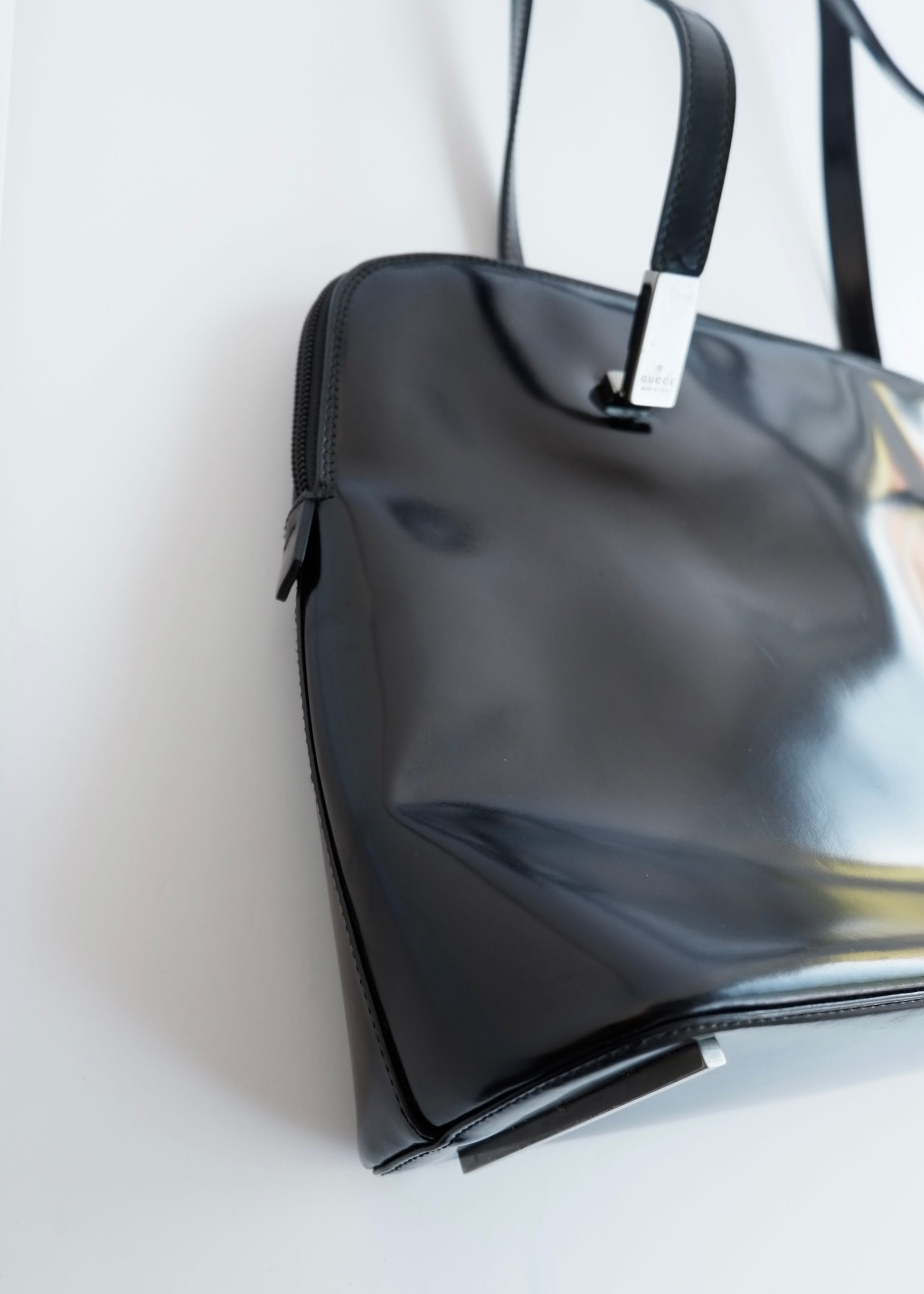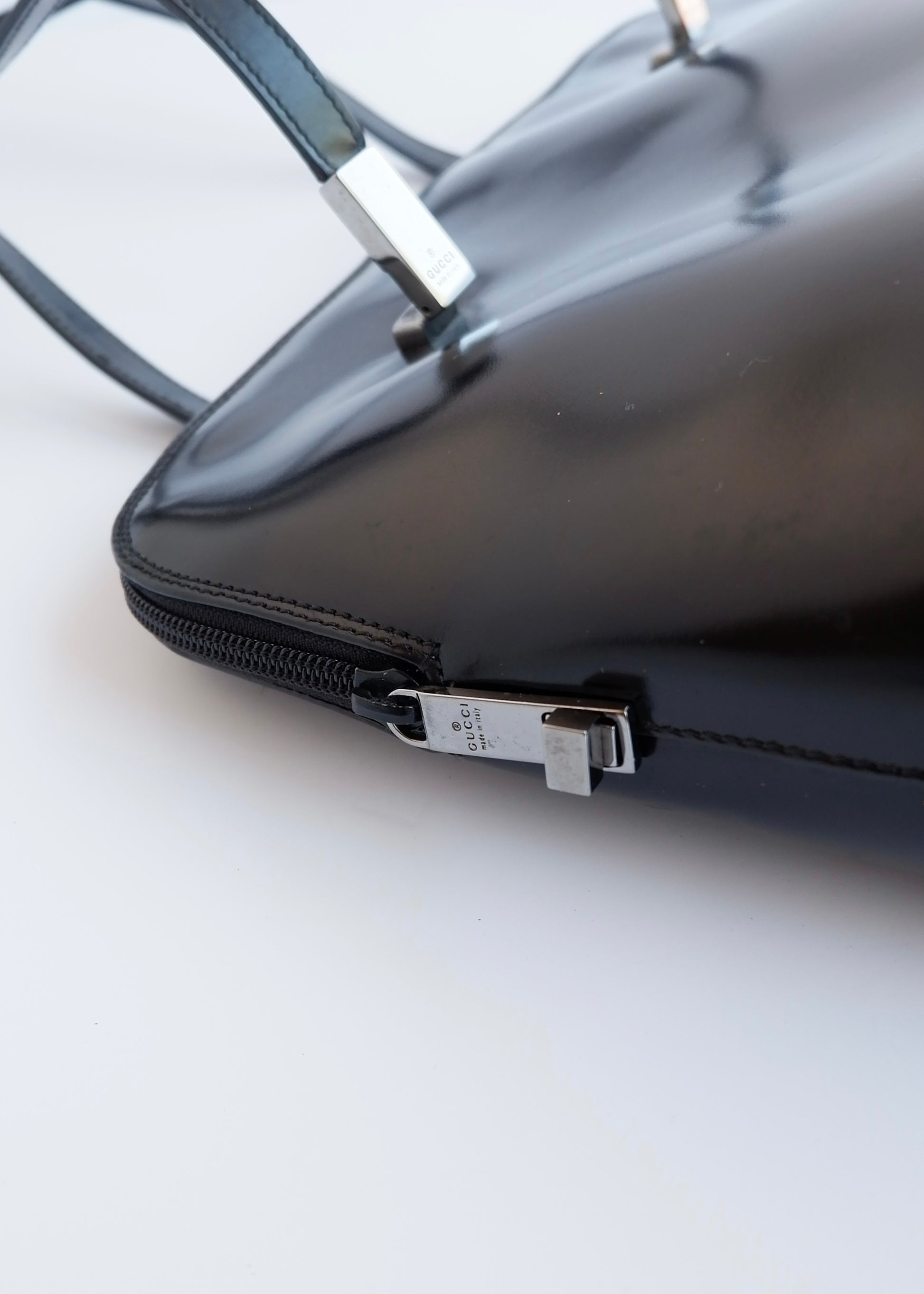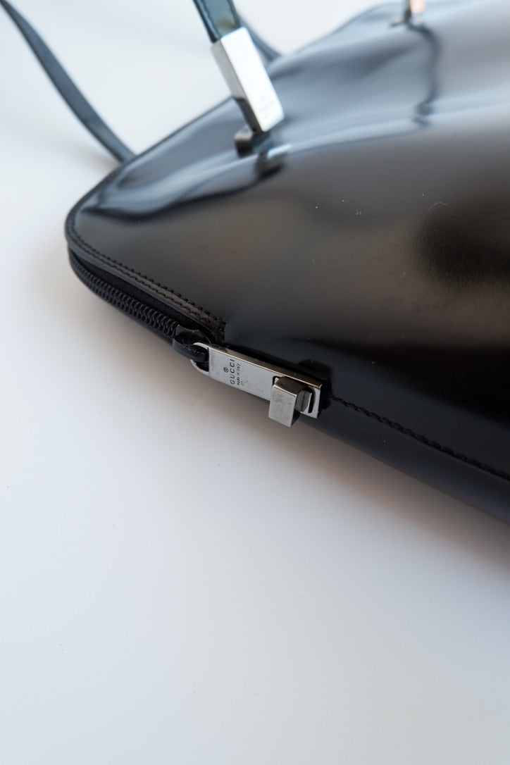Authentic Preowned Gucci Black Patent Leather Long Strap Shoulder Bag