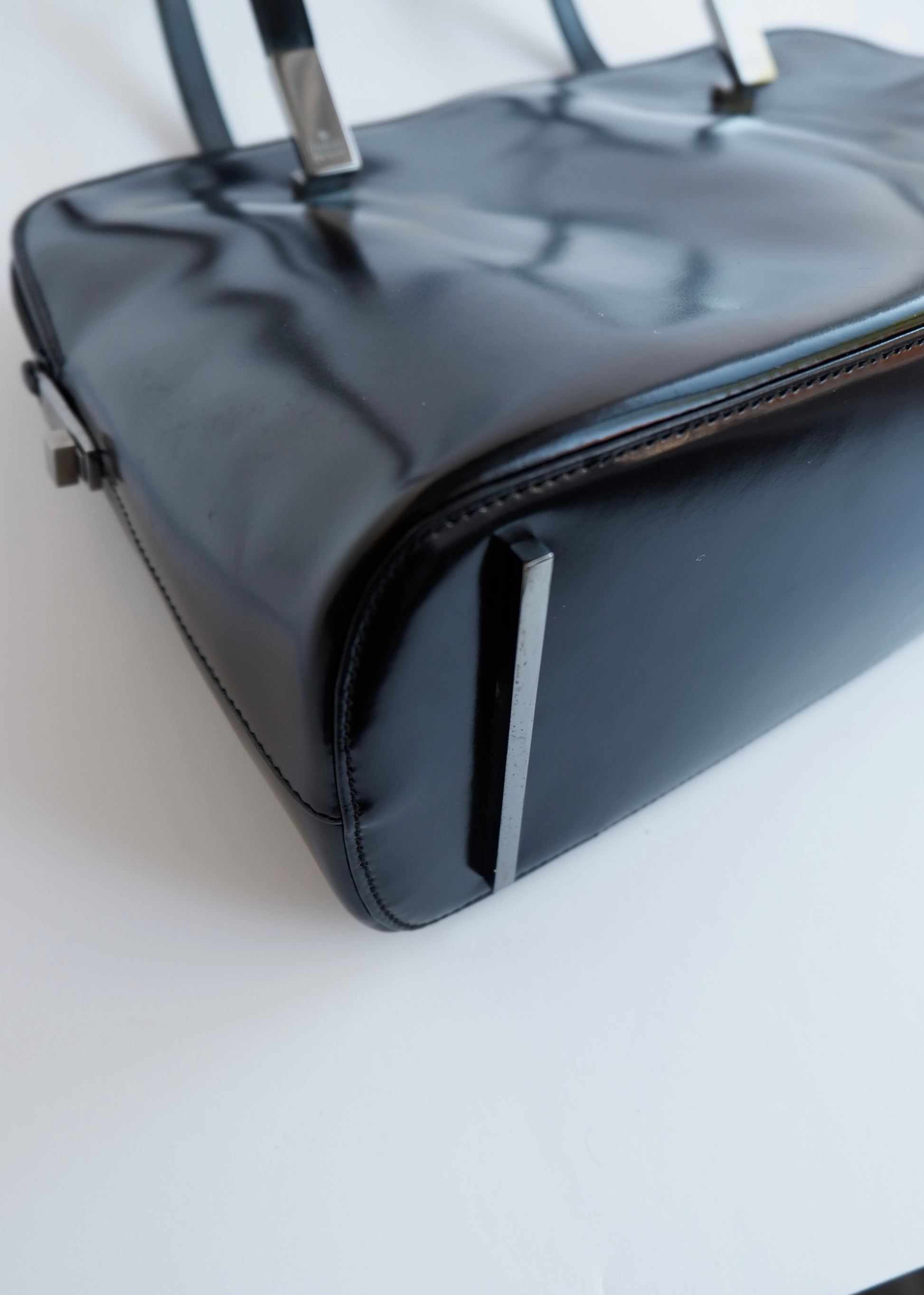 Condition: 8/10 Good Condition - General signs of wear and age throughout the bag. Faint scratches to the exterior patent leather. Signs of age on the hardware. Clean interior.
